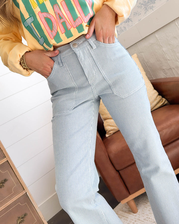 Mica Denim | Marlee High Rise Pinstriped Crop Bootcut Jeans