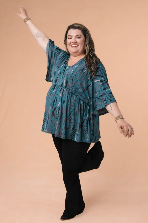 Abstract Dolman Babydoll Top Teal *Final Sale*