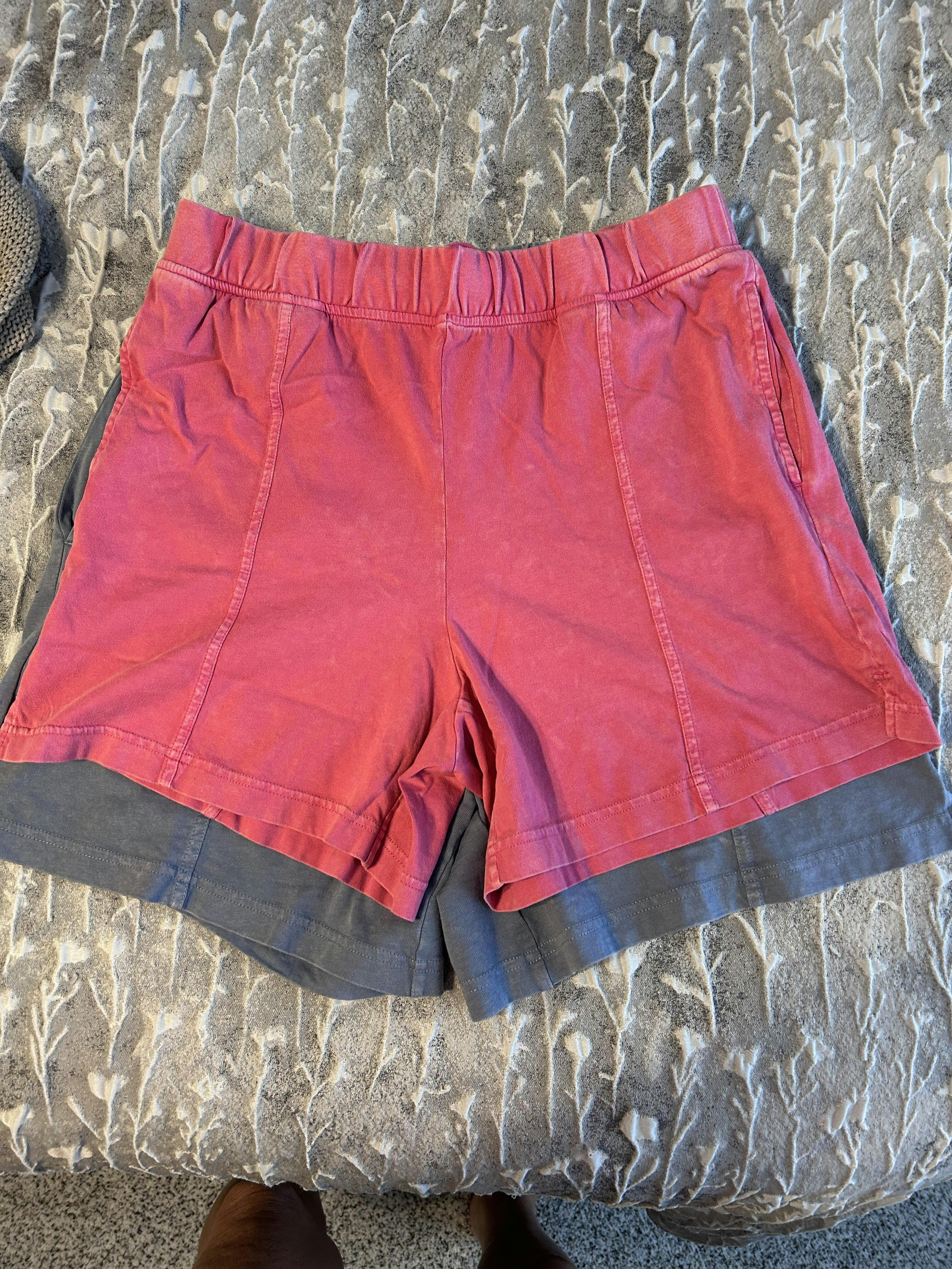 - Bottoms: High-rise shorts with elastic waistband and side pockets