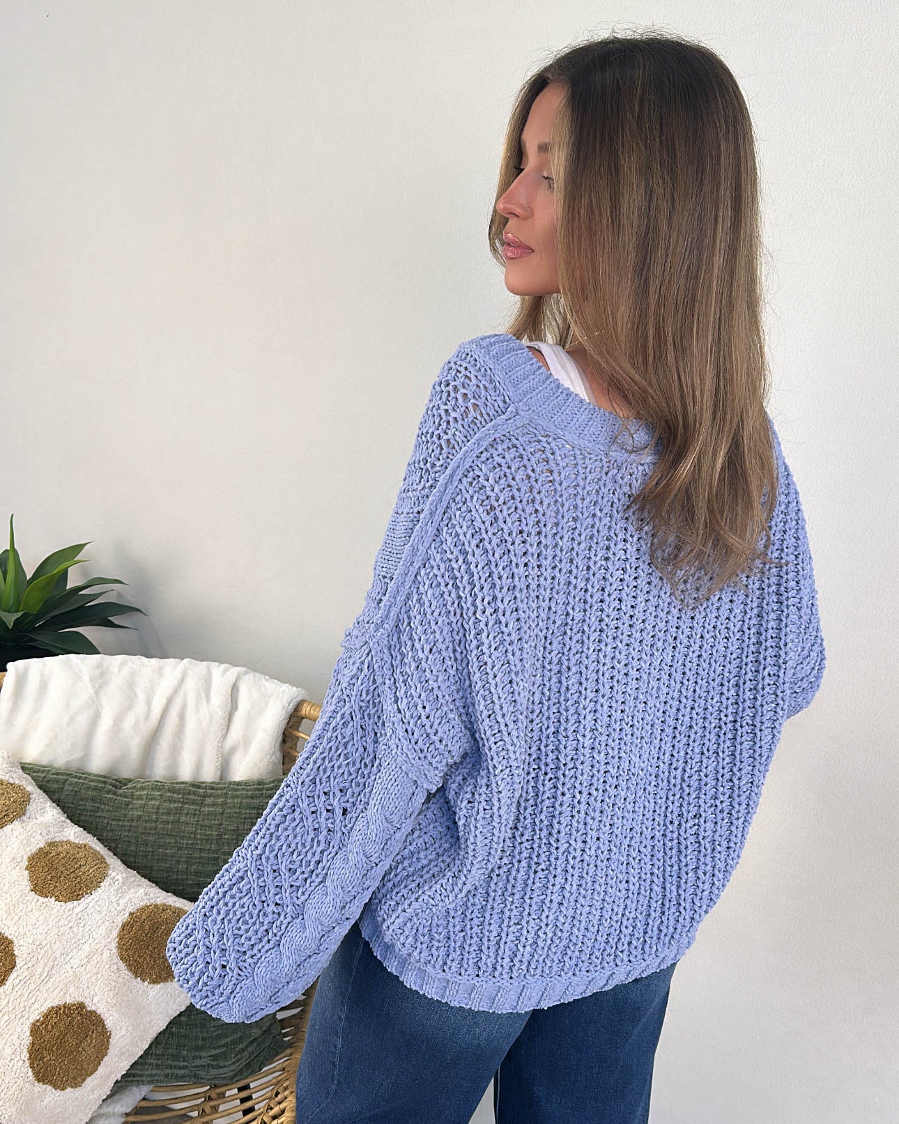 Arctic Plunge Chenille Mixed Knit Sweater