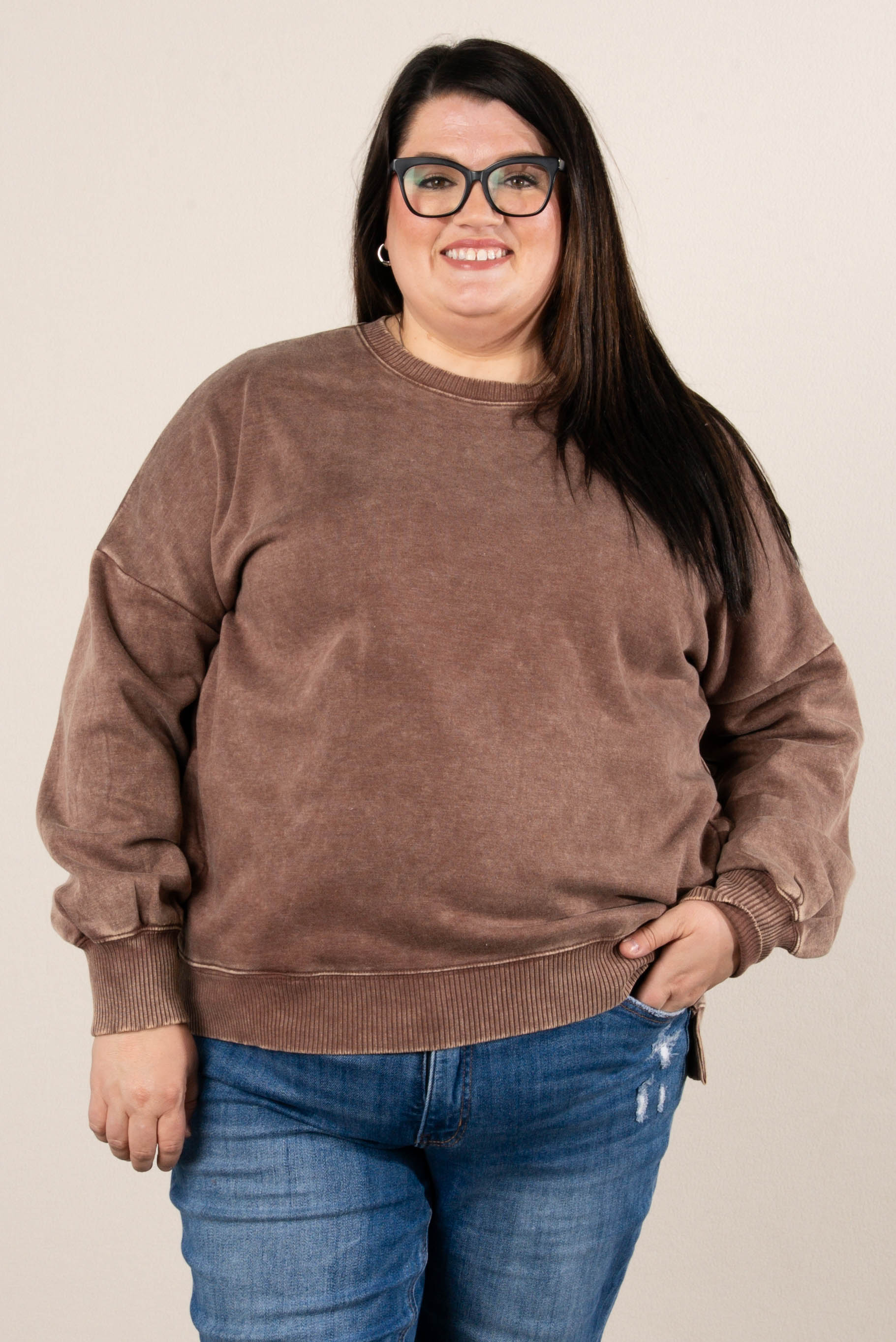 Autumn Days Acid Washed Hi-Lo Pullover