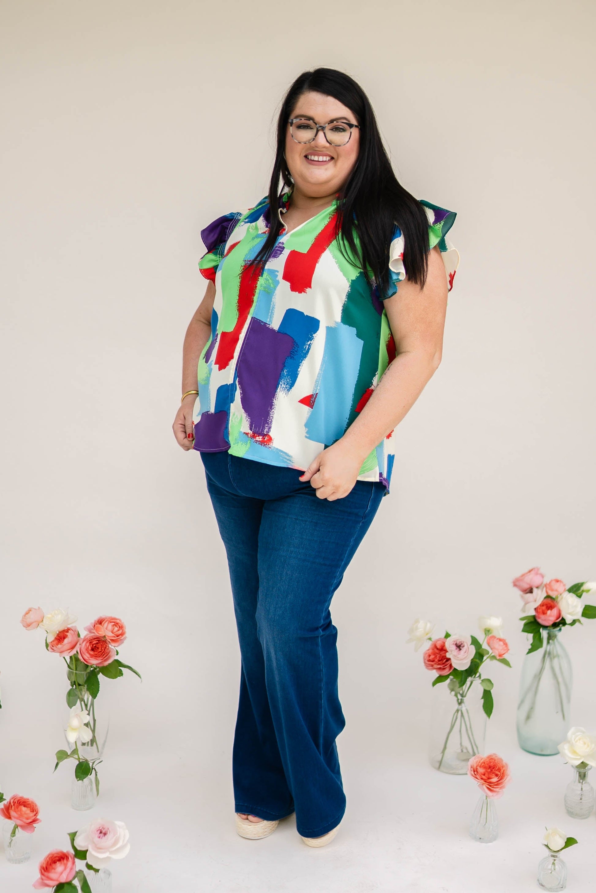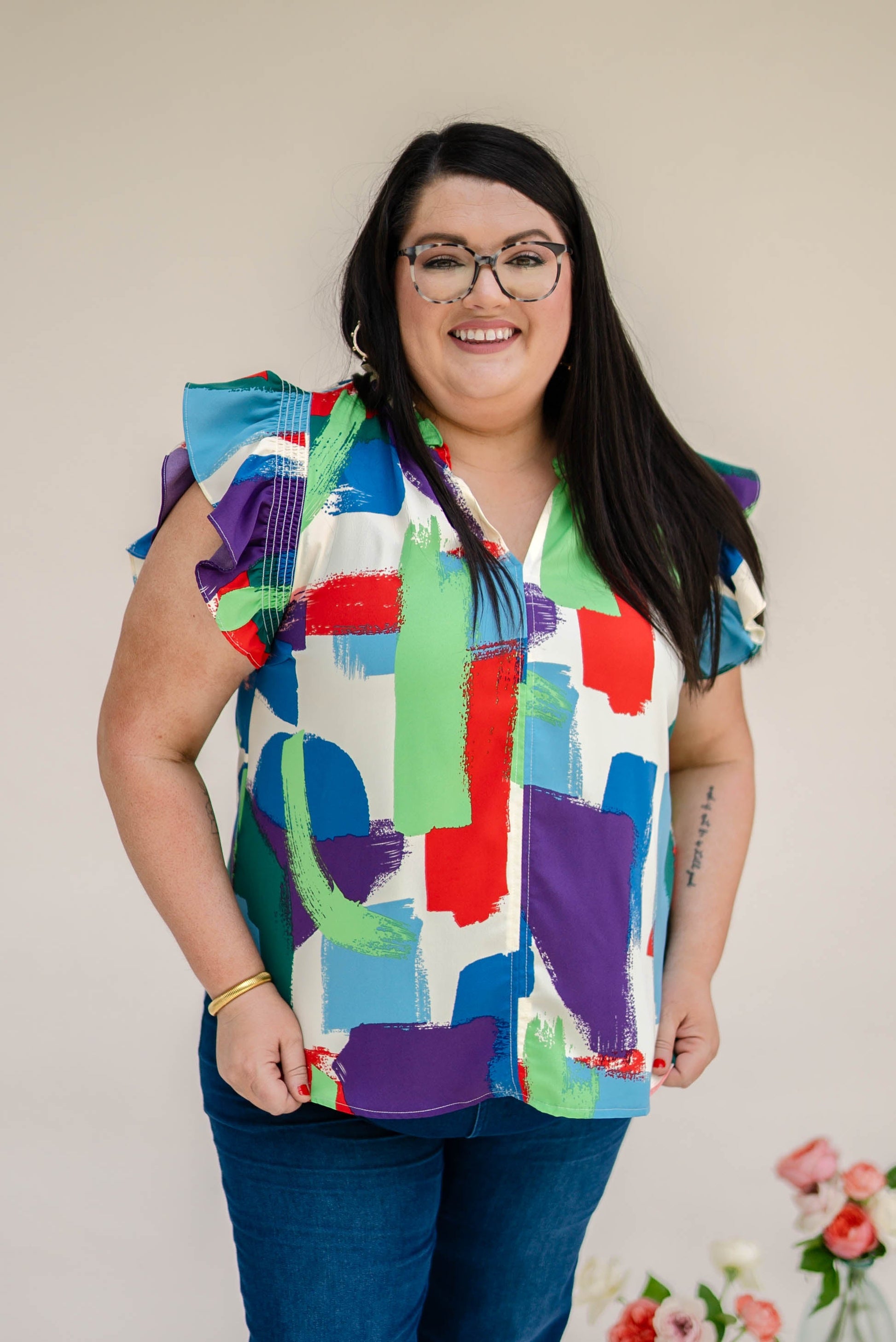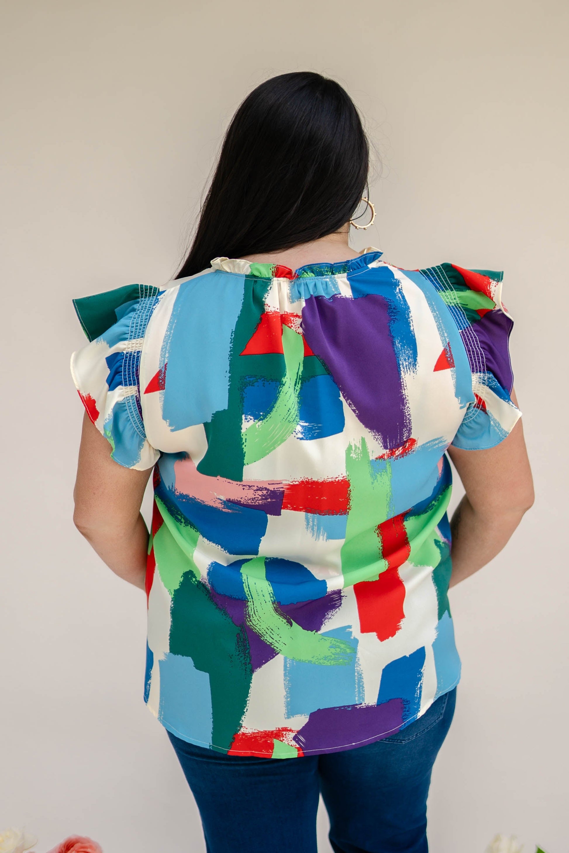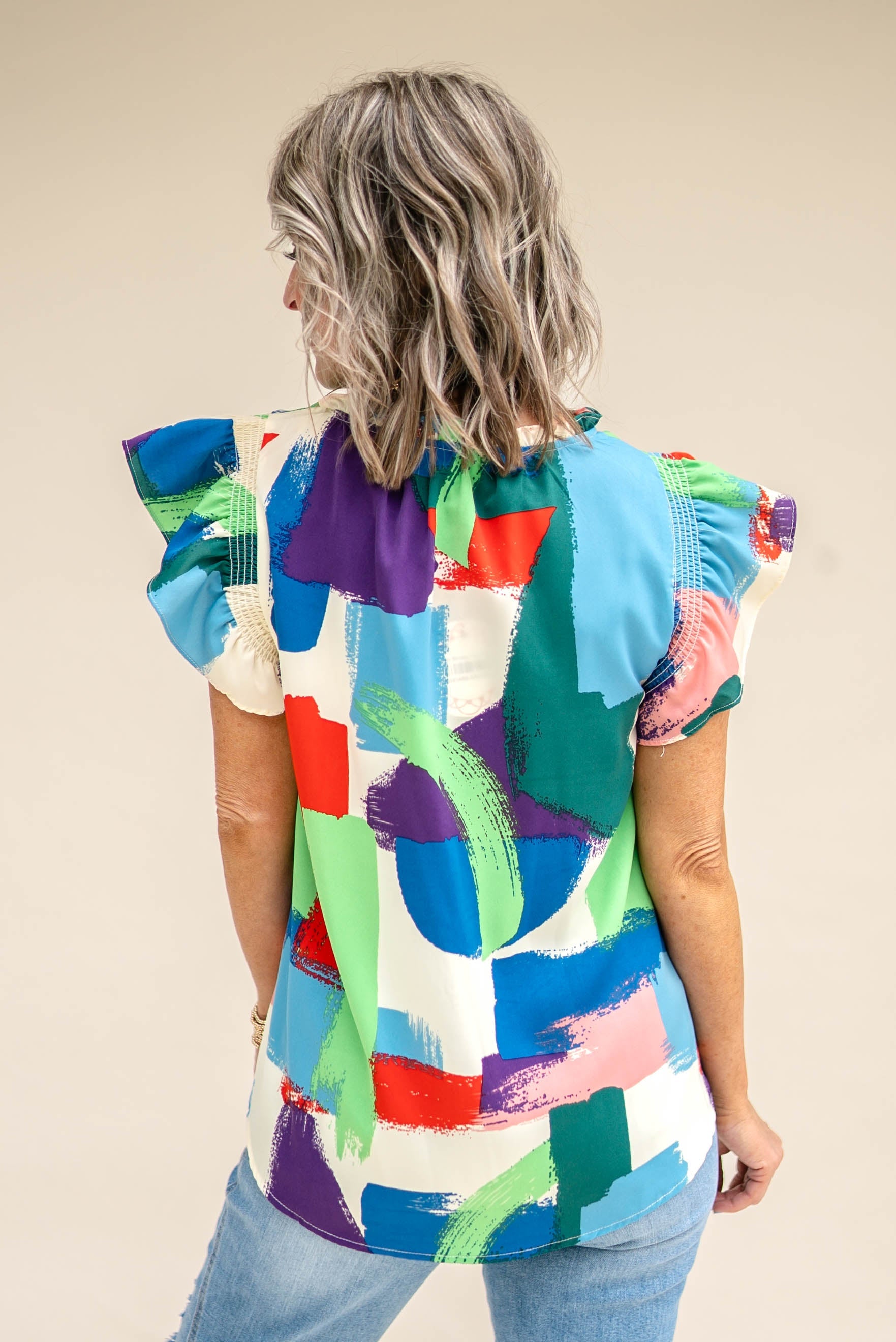 Brush Stroke Tie Neck Blouse *Final Sale*