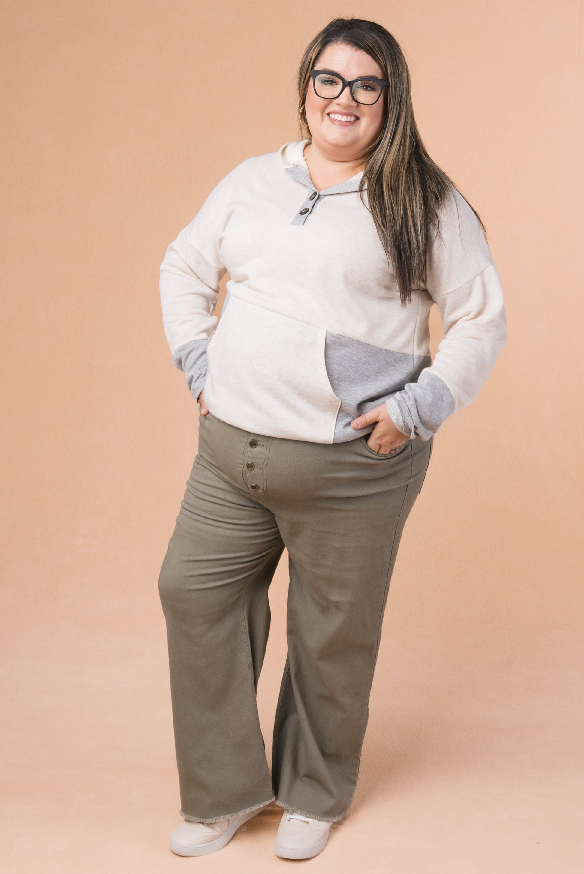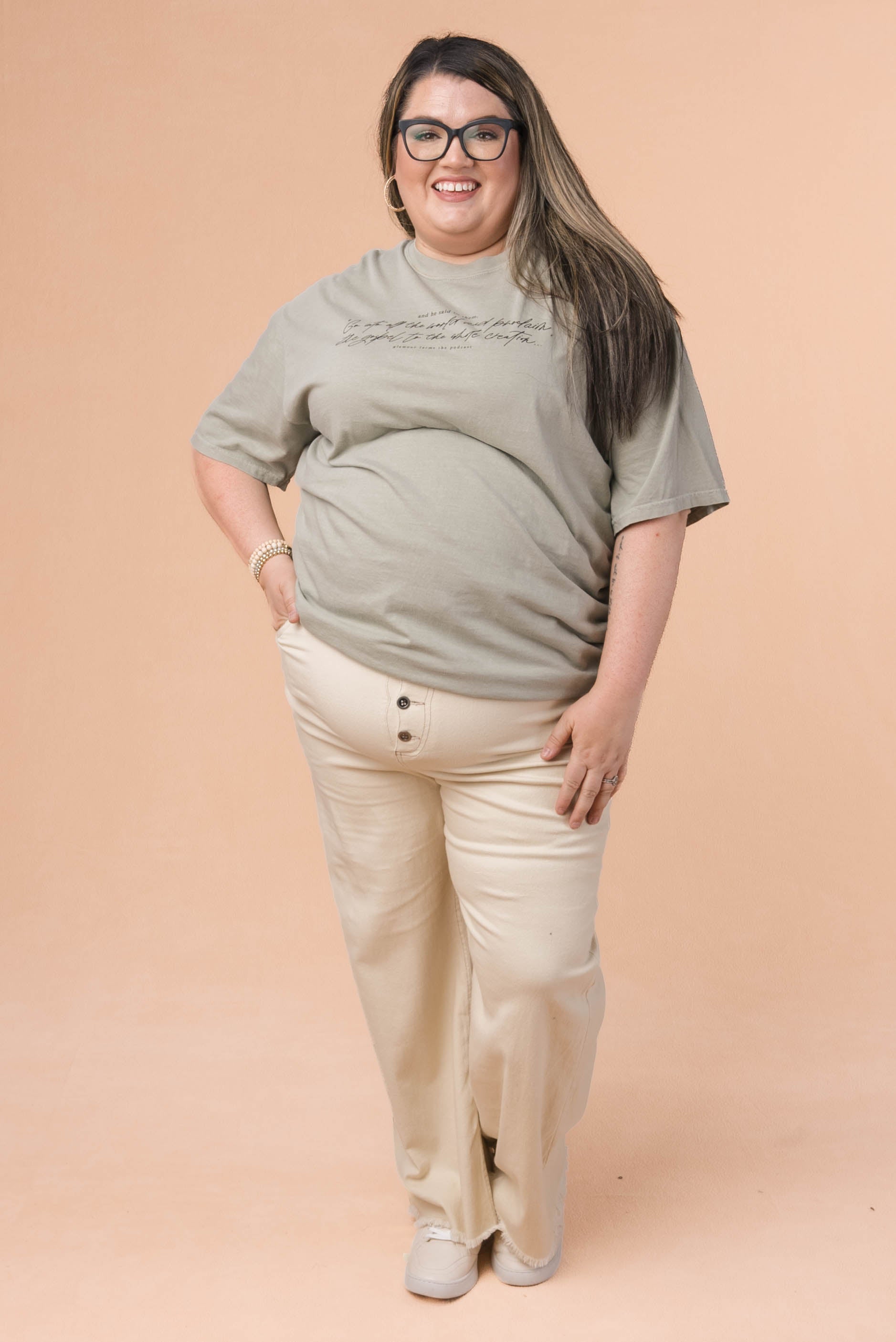 These pants are so comfortable! Lightweight for warmer days and plenty of stretch. I probably could have sized down. I am a size 14 and plenty of mama belly and still think a Large would be just fine