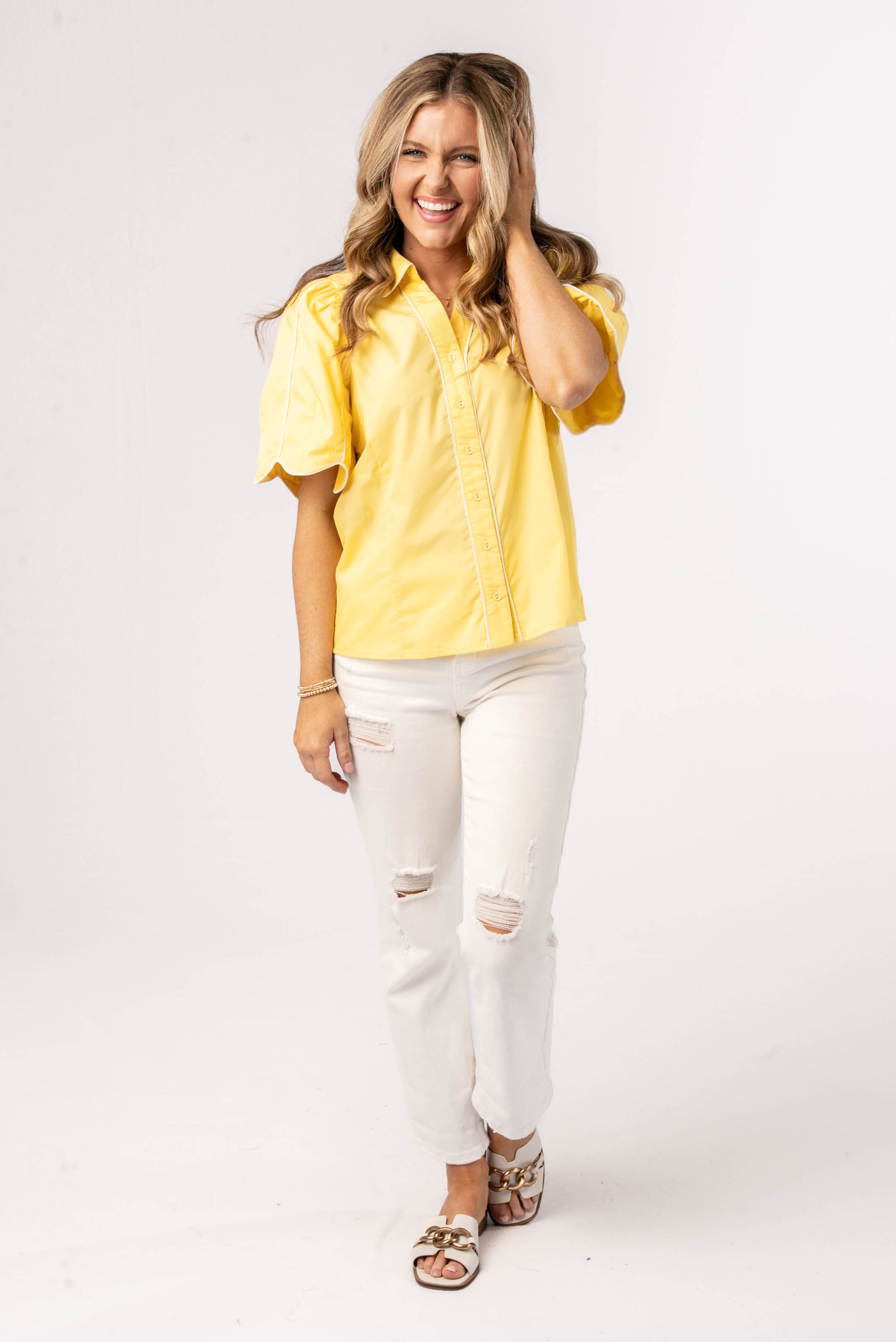 Contrast Piping Tulip Sleeve Shirt *Final Sale*