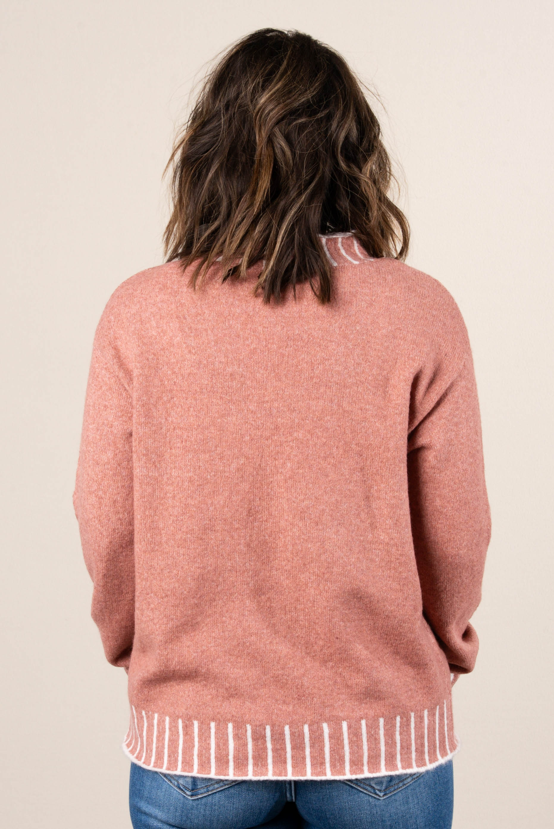 Dovie Contrast Stitch Mock Neck Sweater