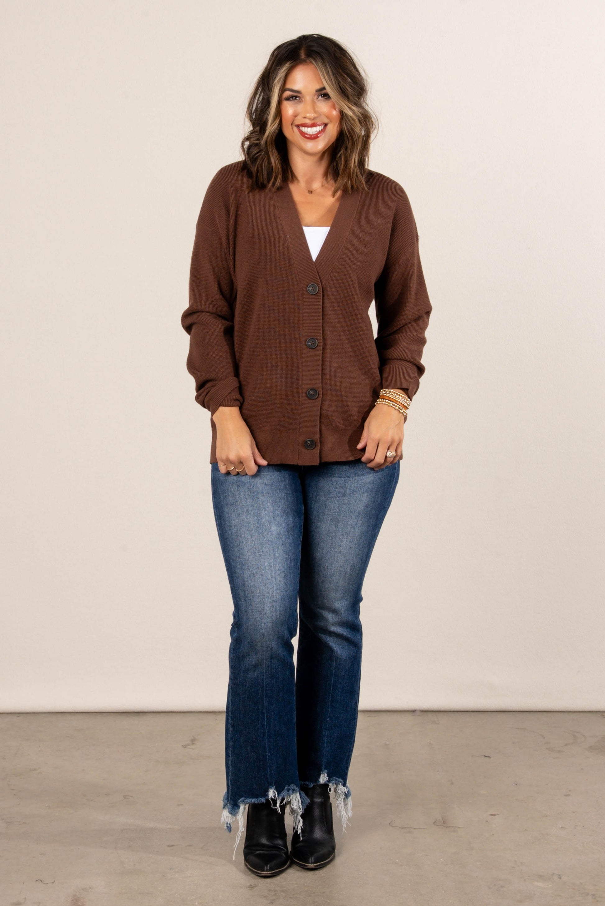 Falling Leaves Mini Waffle Knit Sweater Cardigan