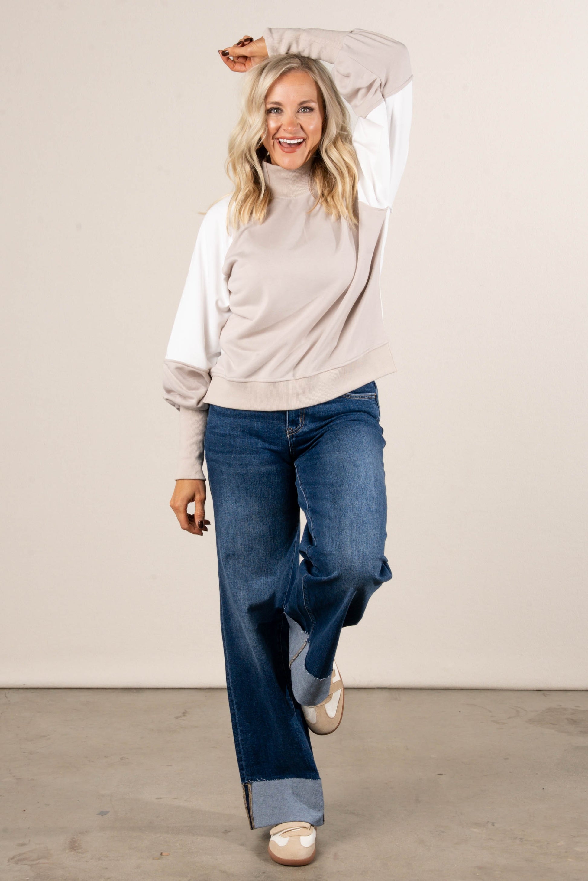 Game Time Color Block Mock Neck Sweatshirt