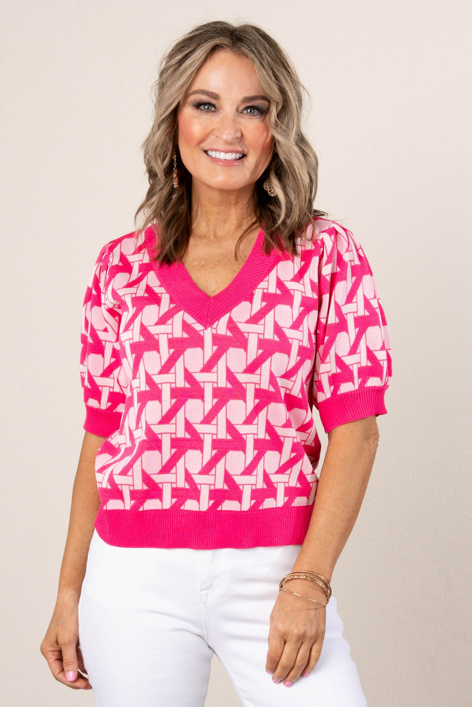Geo Knit Puff Sleeve Sweater *Final Sale*
