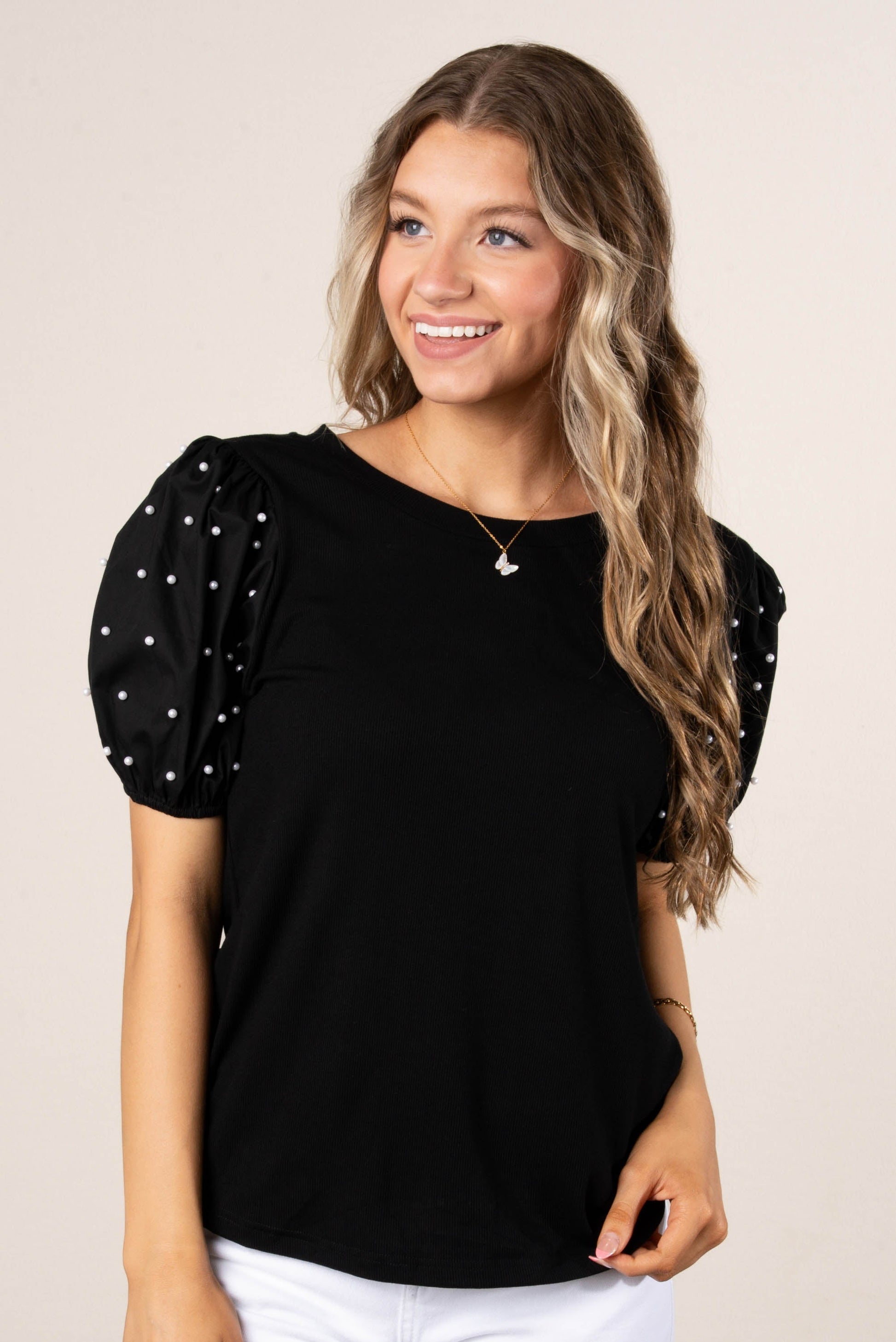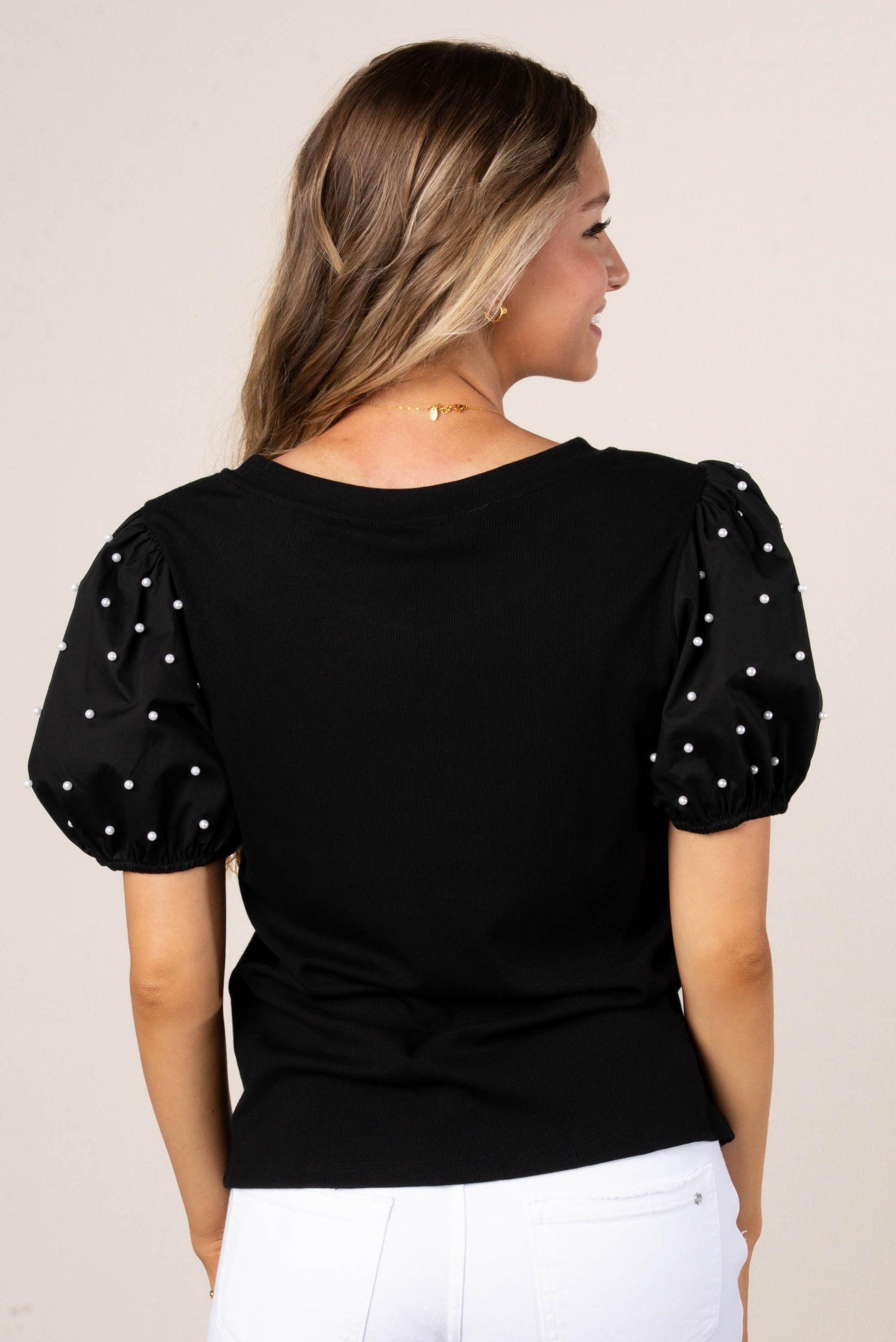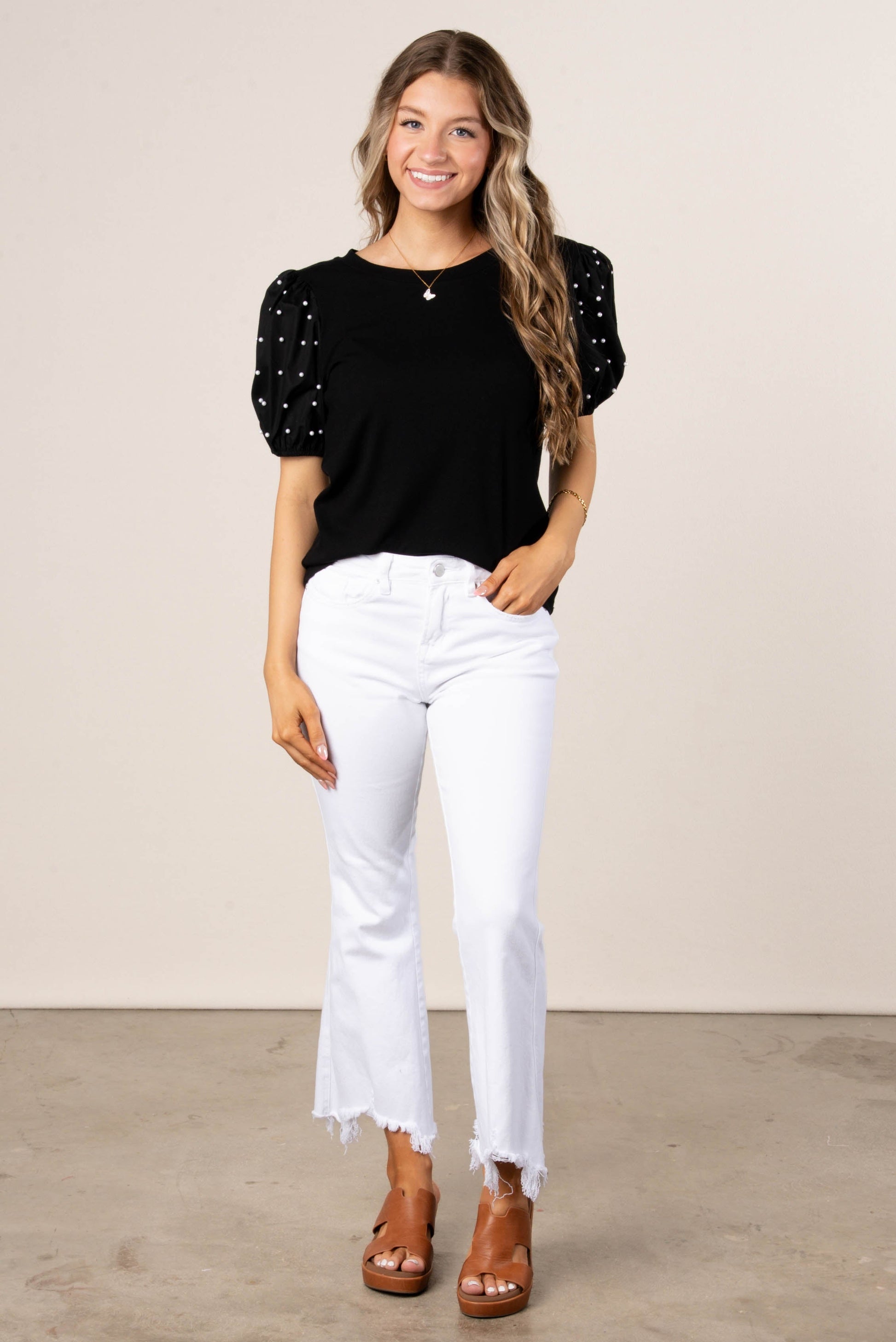 Georgia Mae Pearl Embellished Sleeve Top *Final Sale*