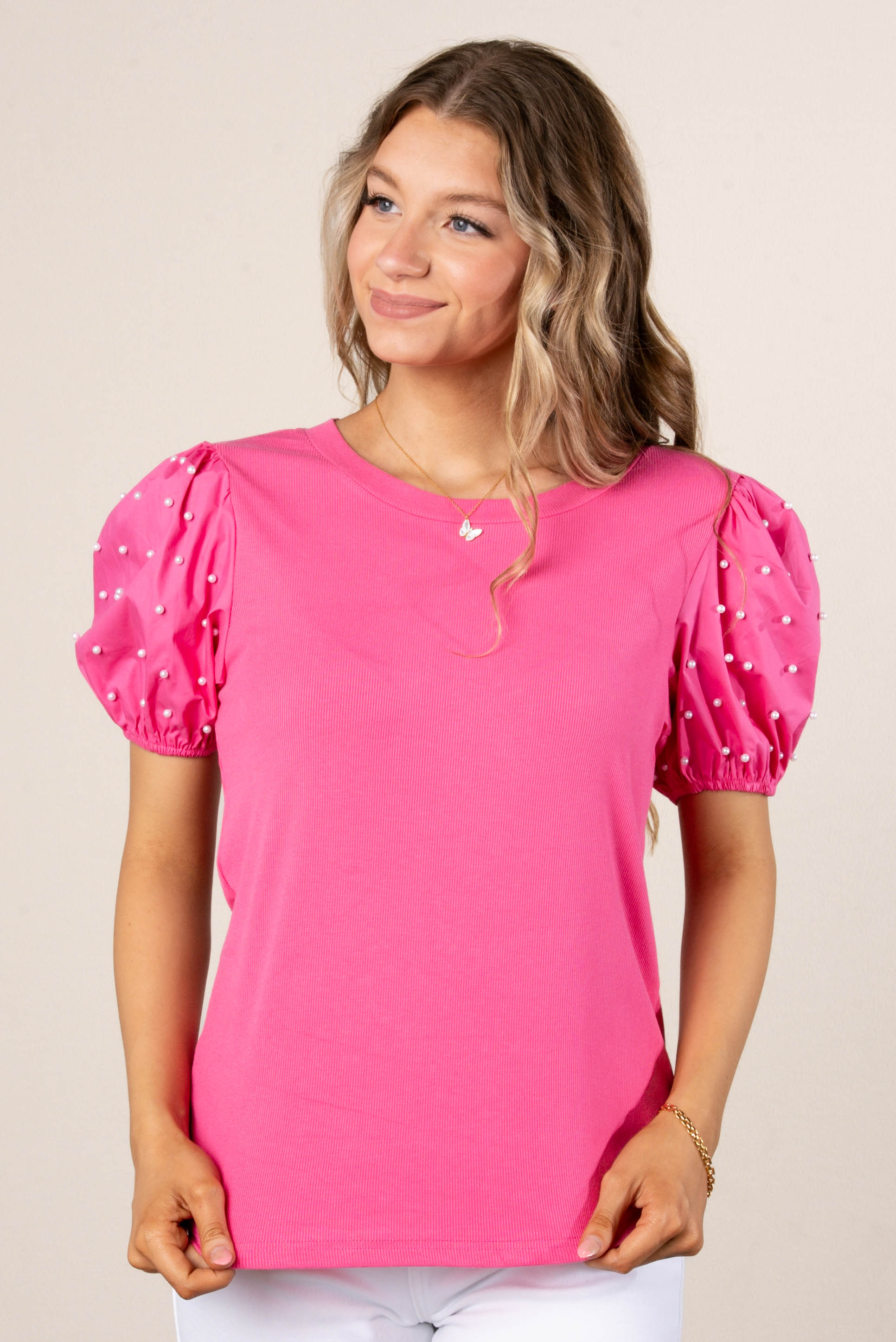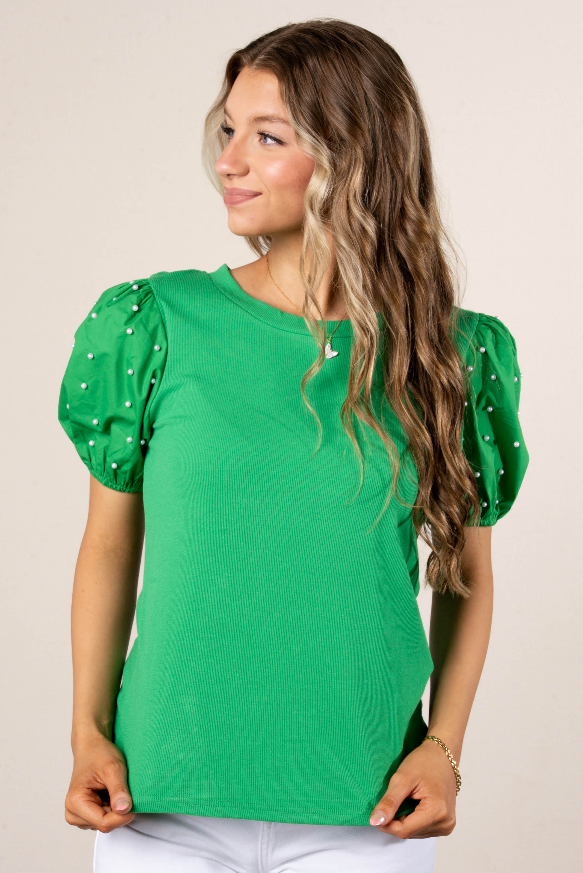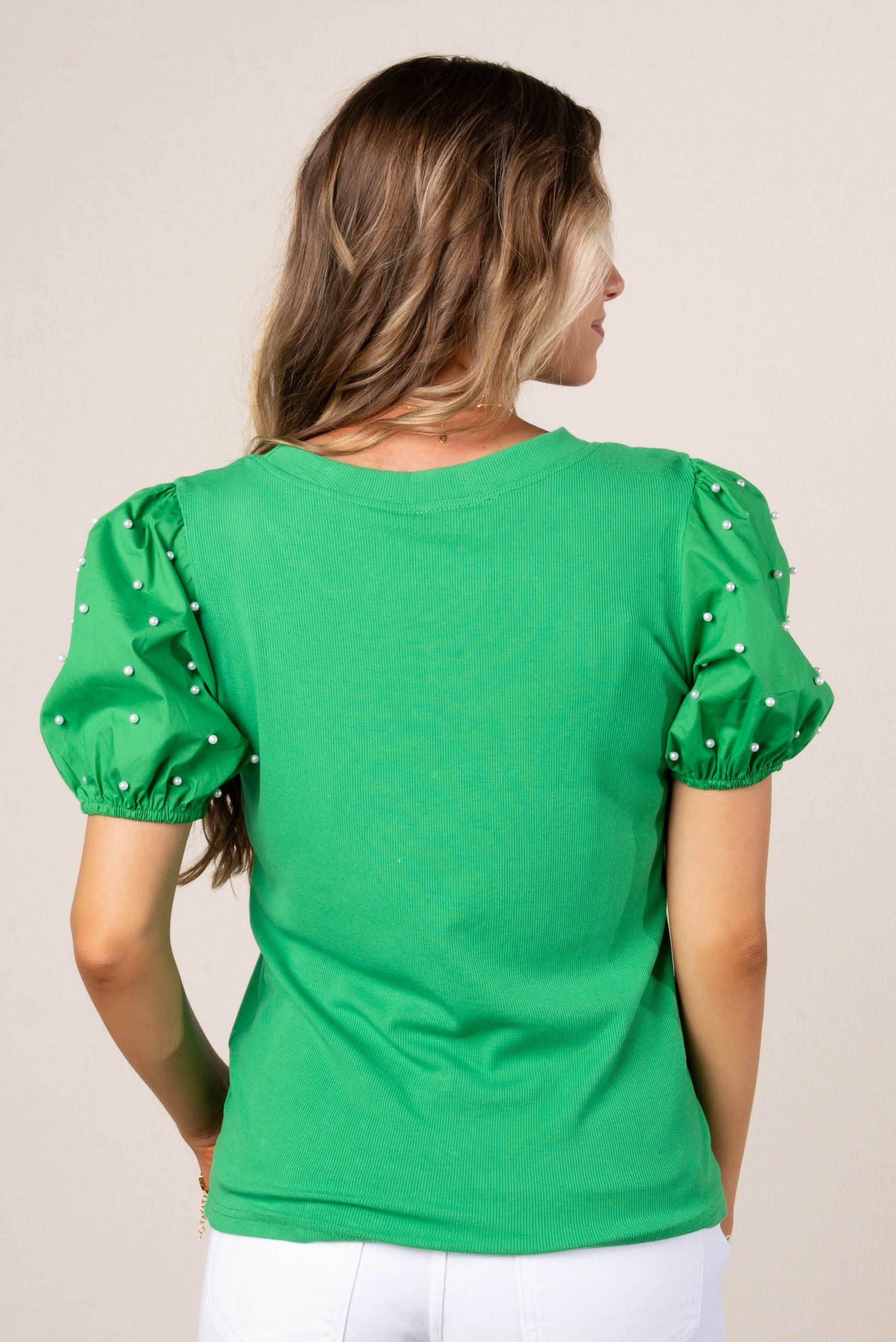 Georgia Mae Pearl Embellished Sleeve Top *Final Sale*