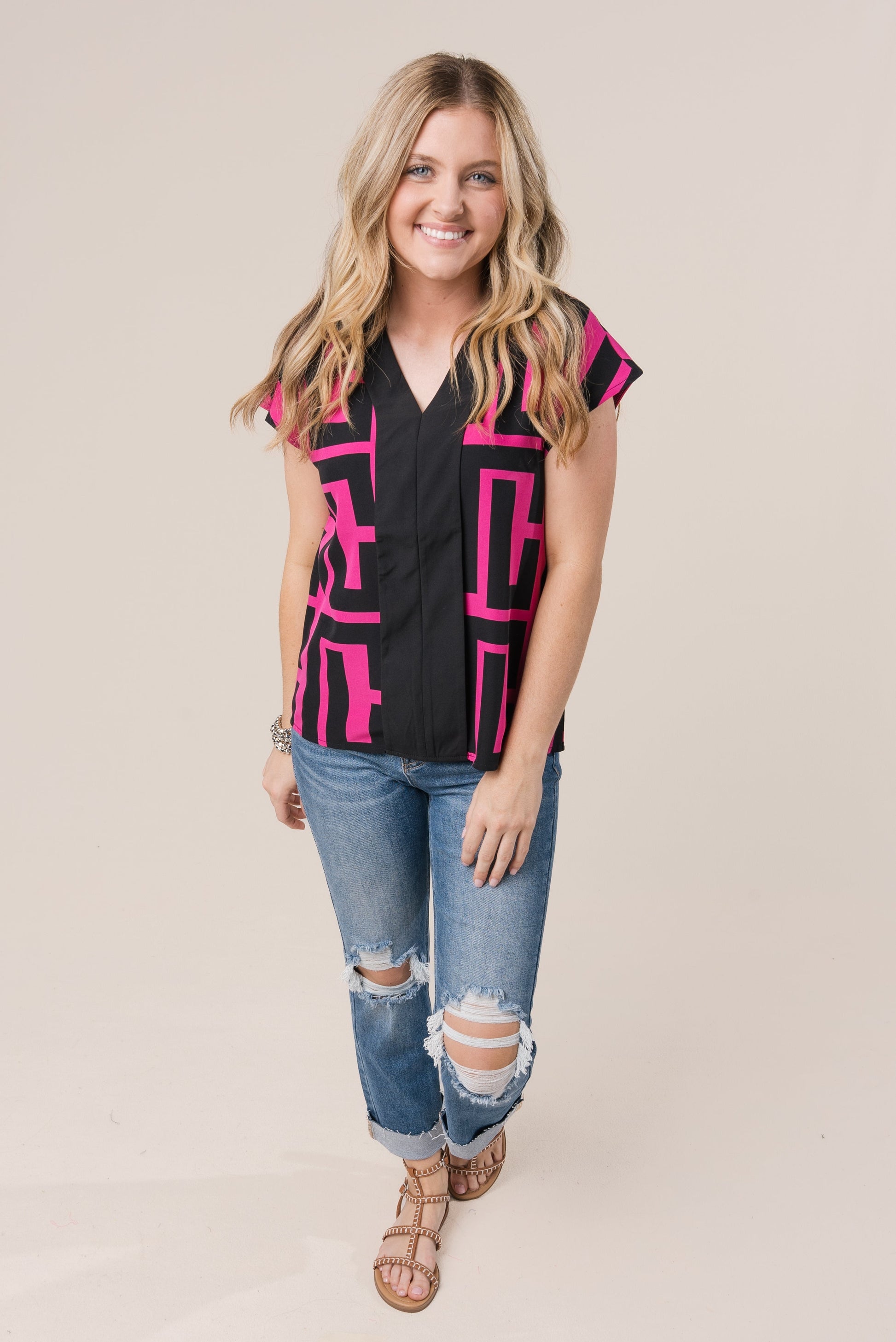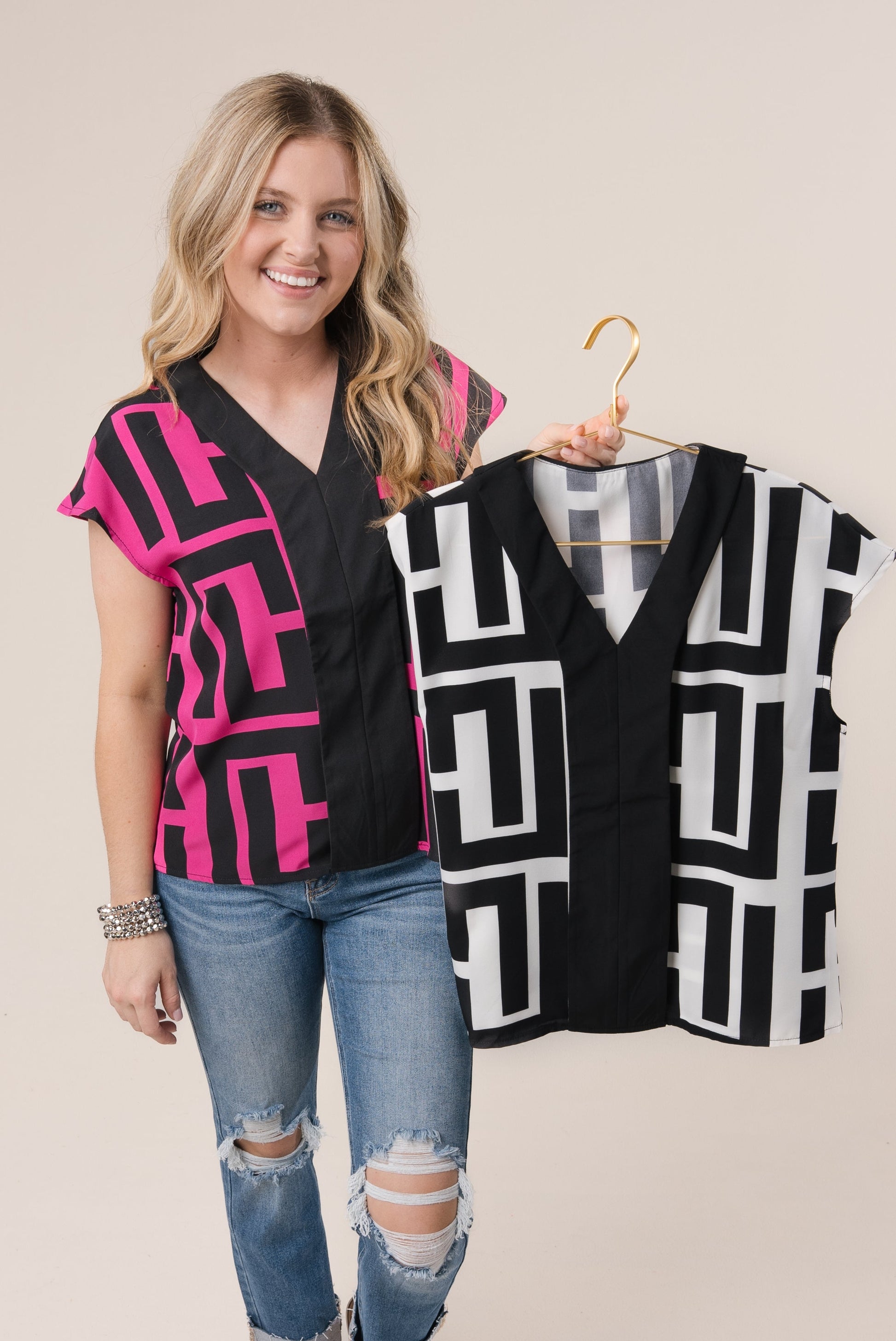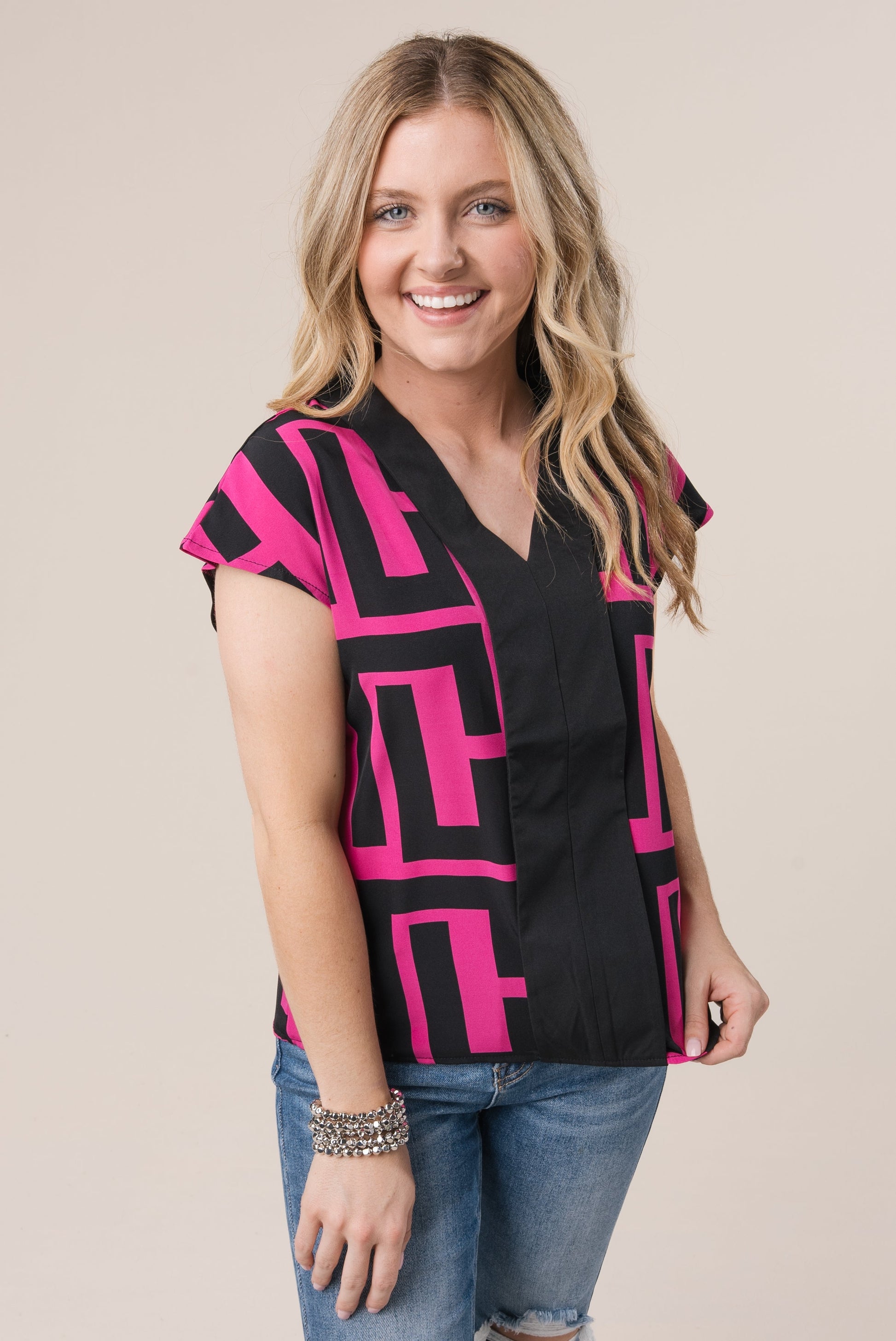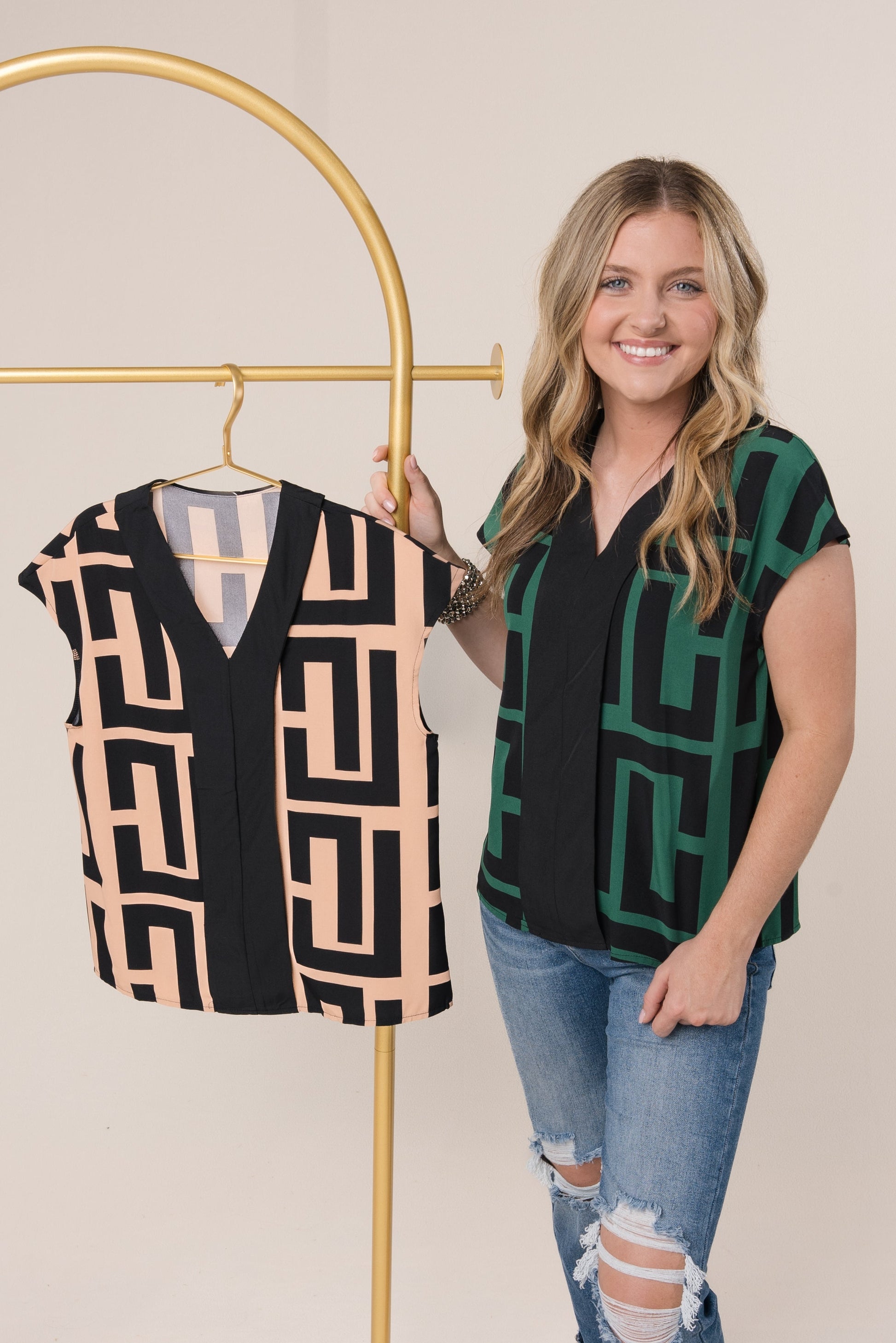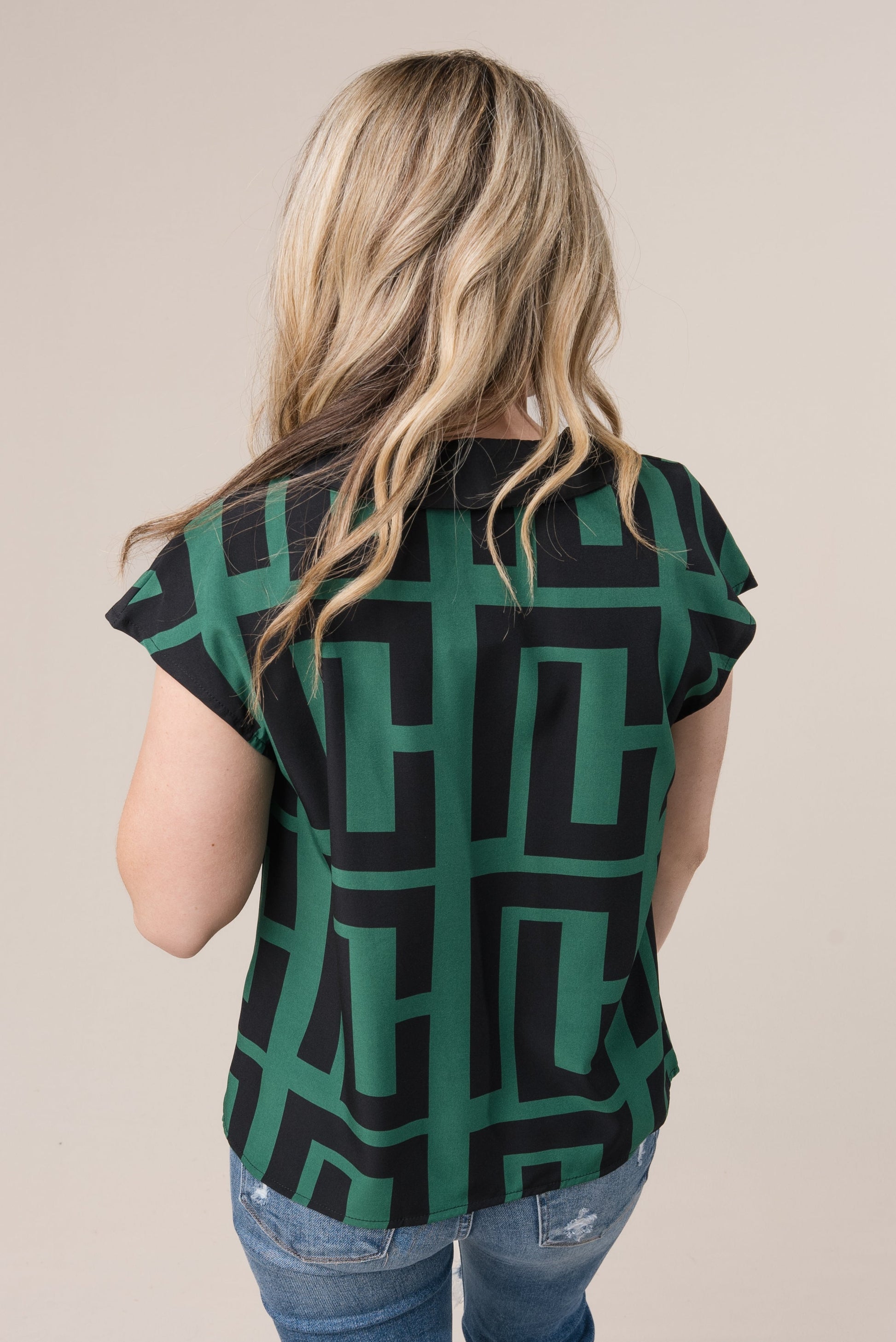 Greek Key Cap Sleeve Blouse *Final Sale*