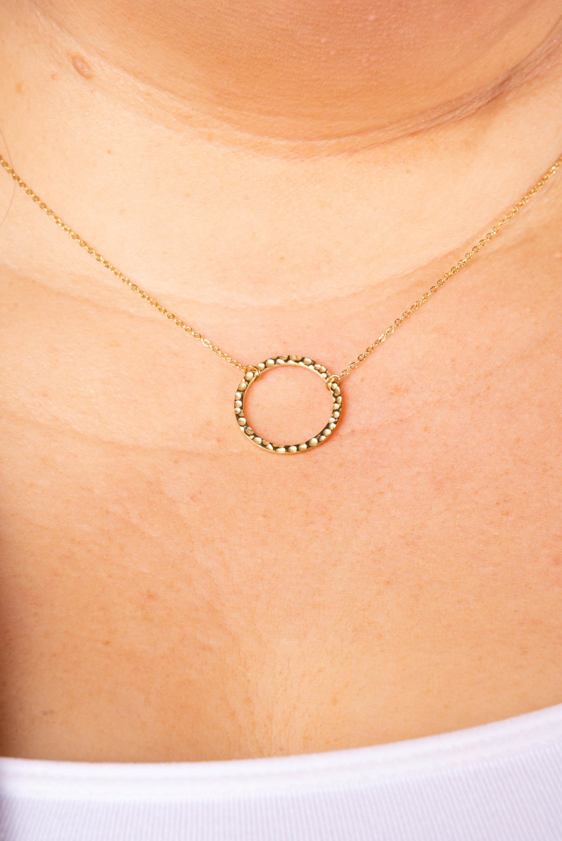 Grace your neckline with timeless simplicity and spiritual depth with the In His Presence Necklace by Dear Heart. This elegant piece features a delicate gold circle pendant — a symbol of eternal love and divine connection. Its minimal yet meaningful design serves as a beautiful daily reminder to rest in His presence and walk in faith.