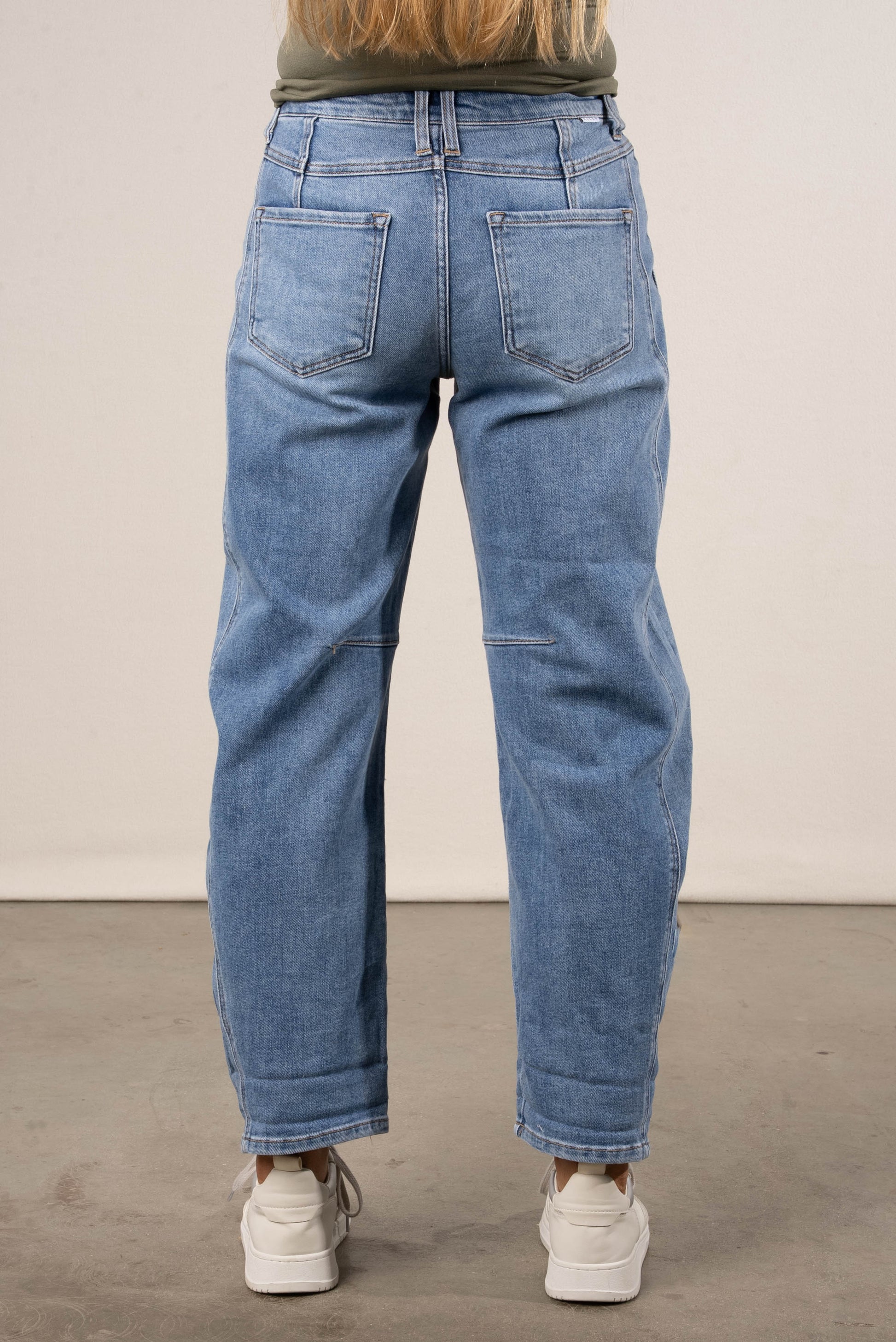 Risen Denim | Juno Mid Rise Rolled Cuff Barrel Jeans