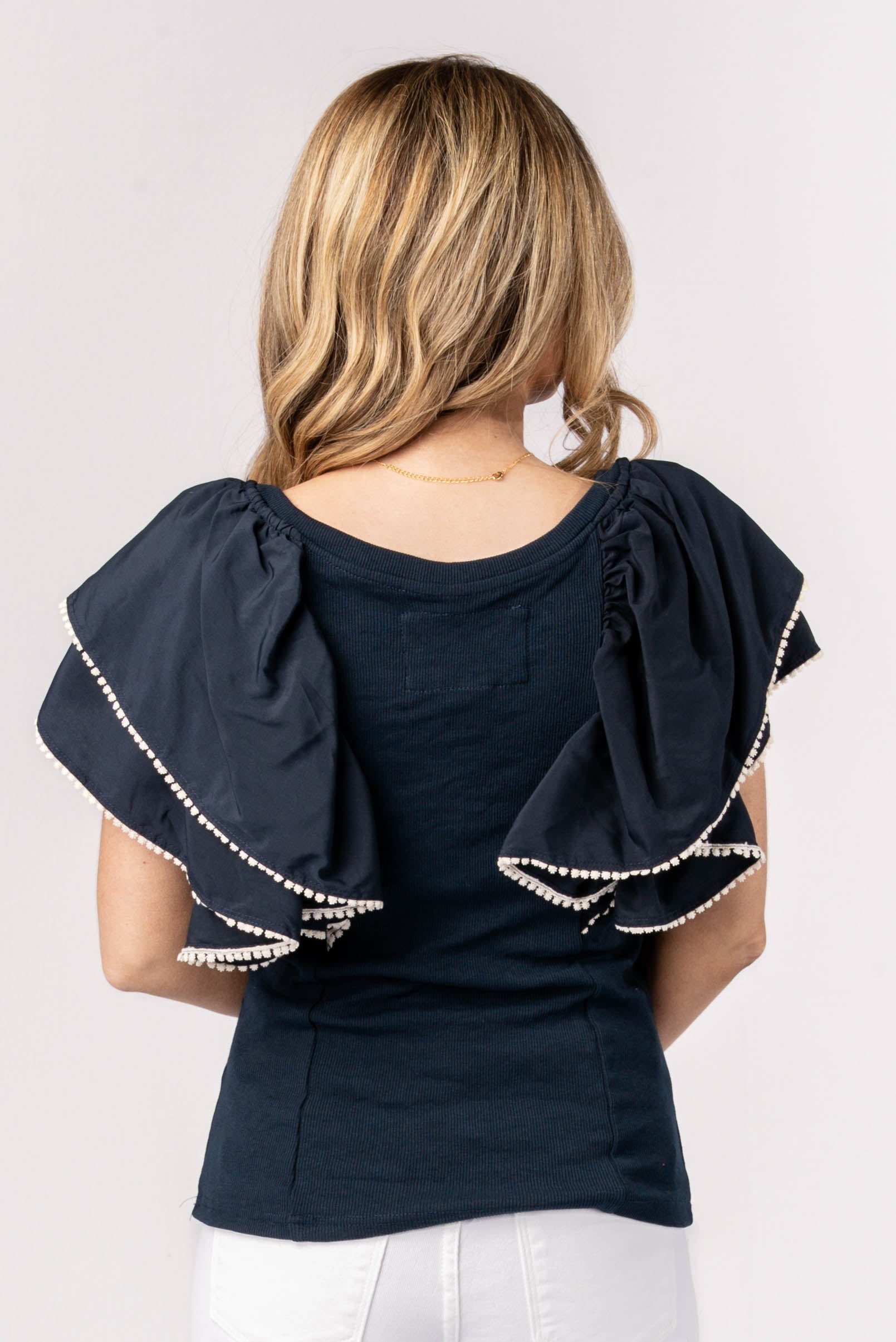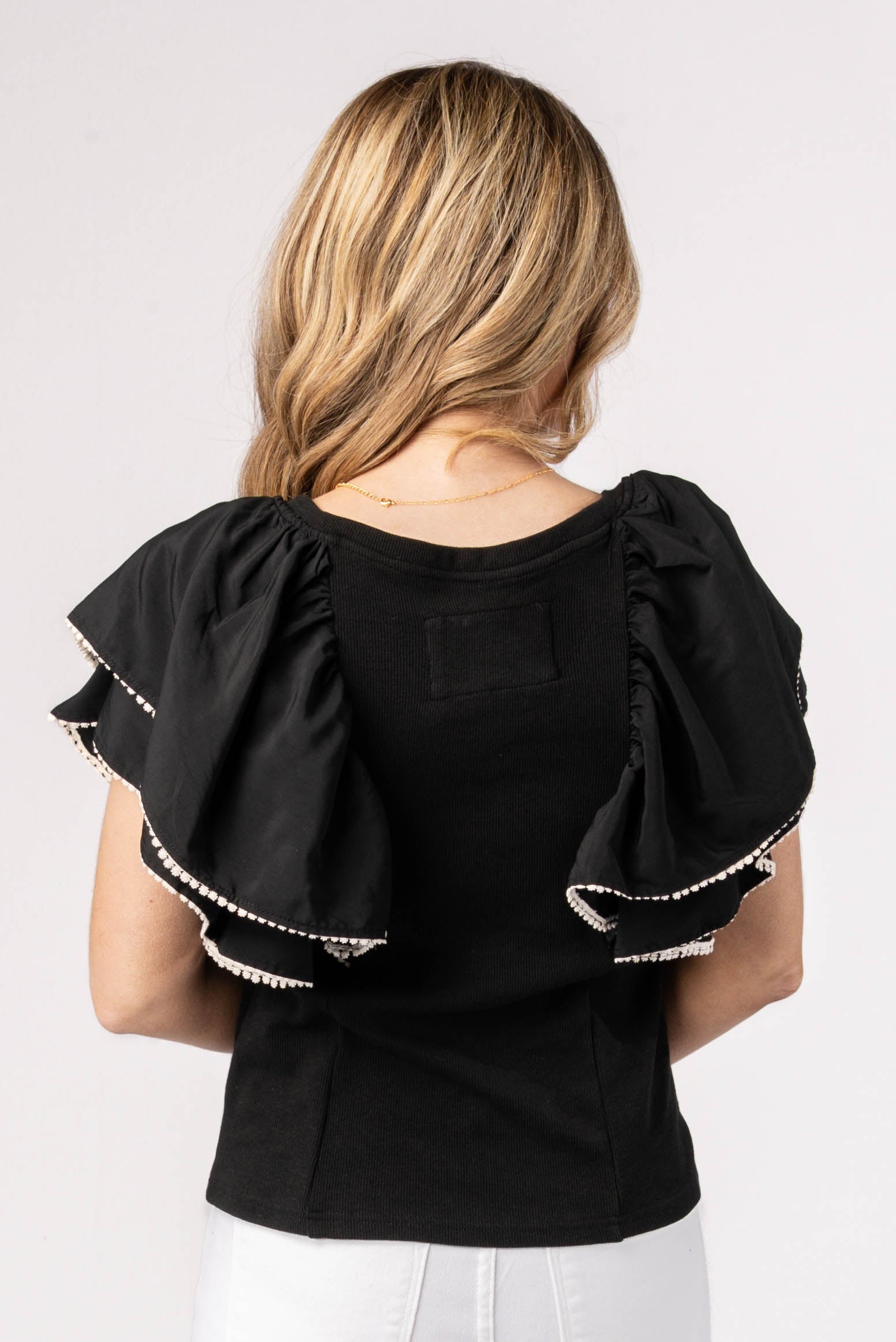 Lace Trimmed Double Ruffle Sleeve Top *Final Sale*