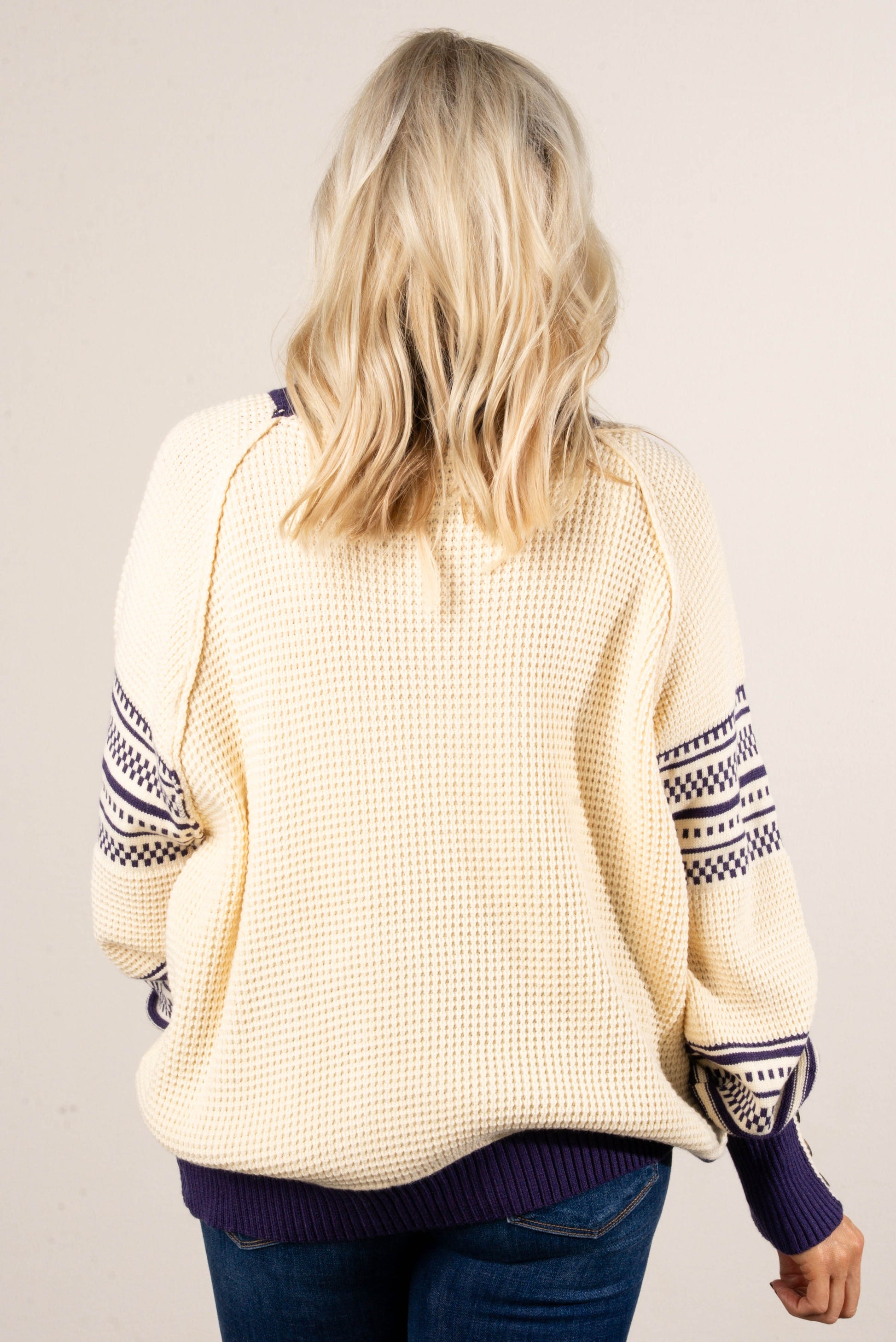 Lambert Cove Mixed Knit Button Cuff Sweater