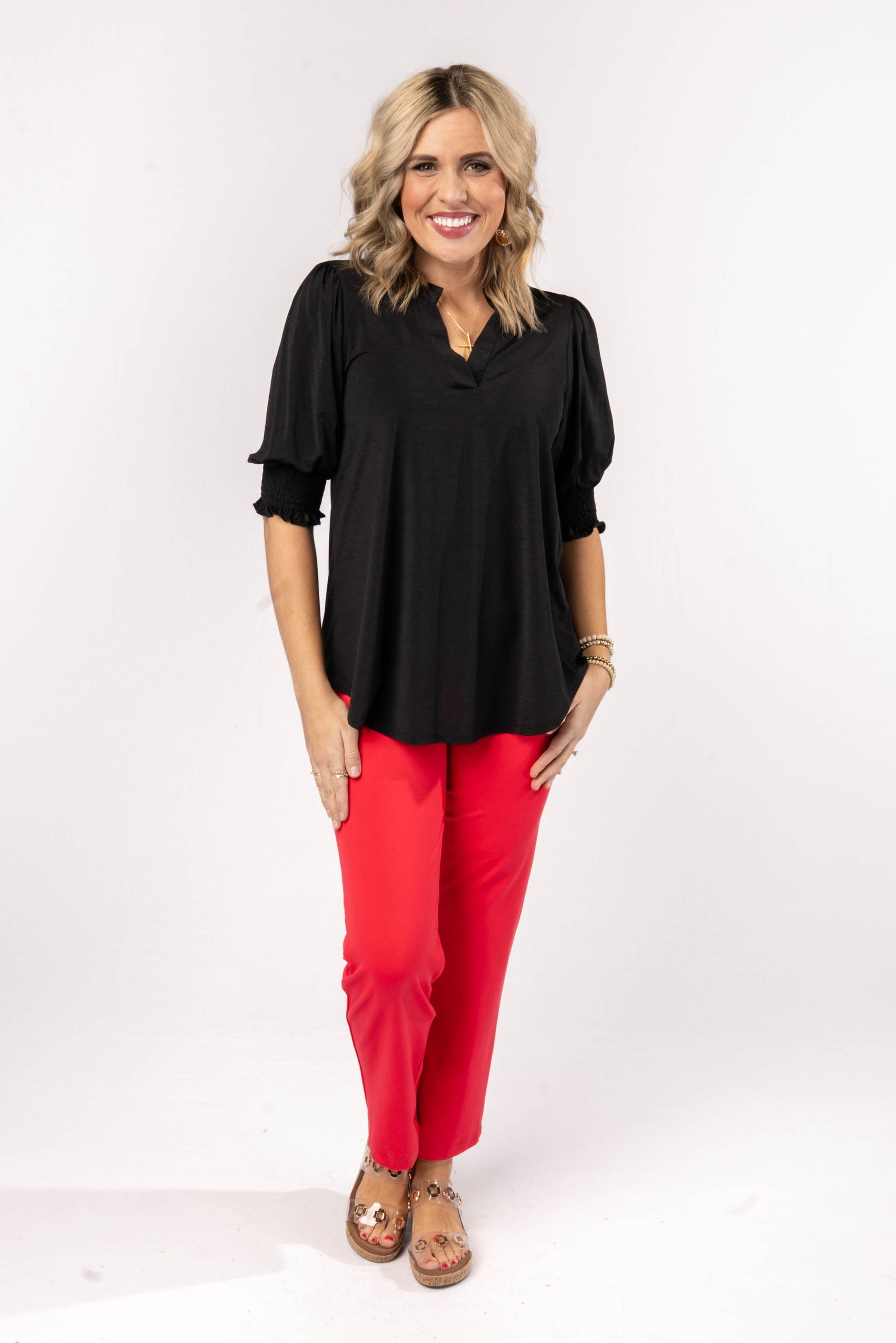 Fabric Content: 66% Rayon, 30% Nylon, 4% Spandex | Has stretch