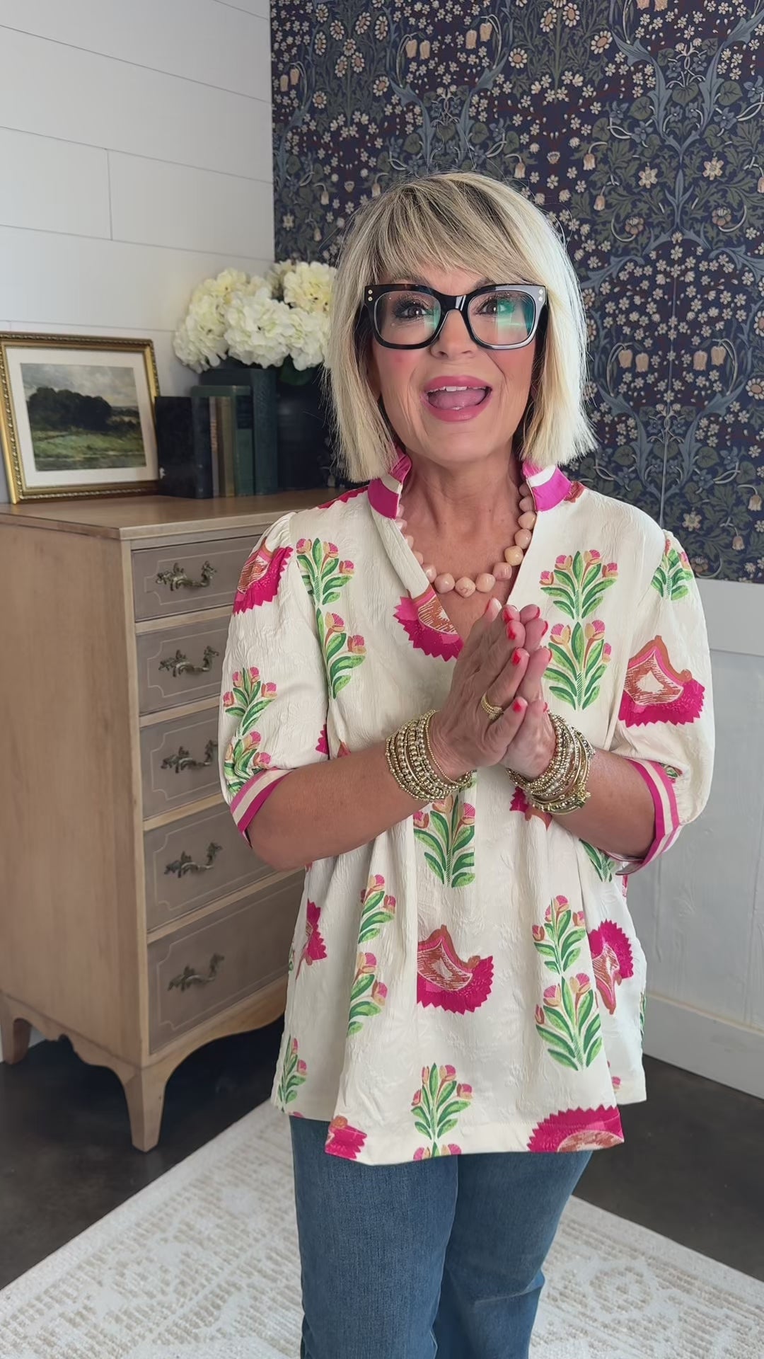 ✨ Painted Petal Floral Frill Neck Top