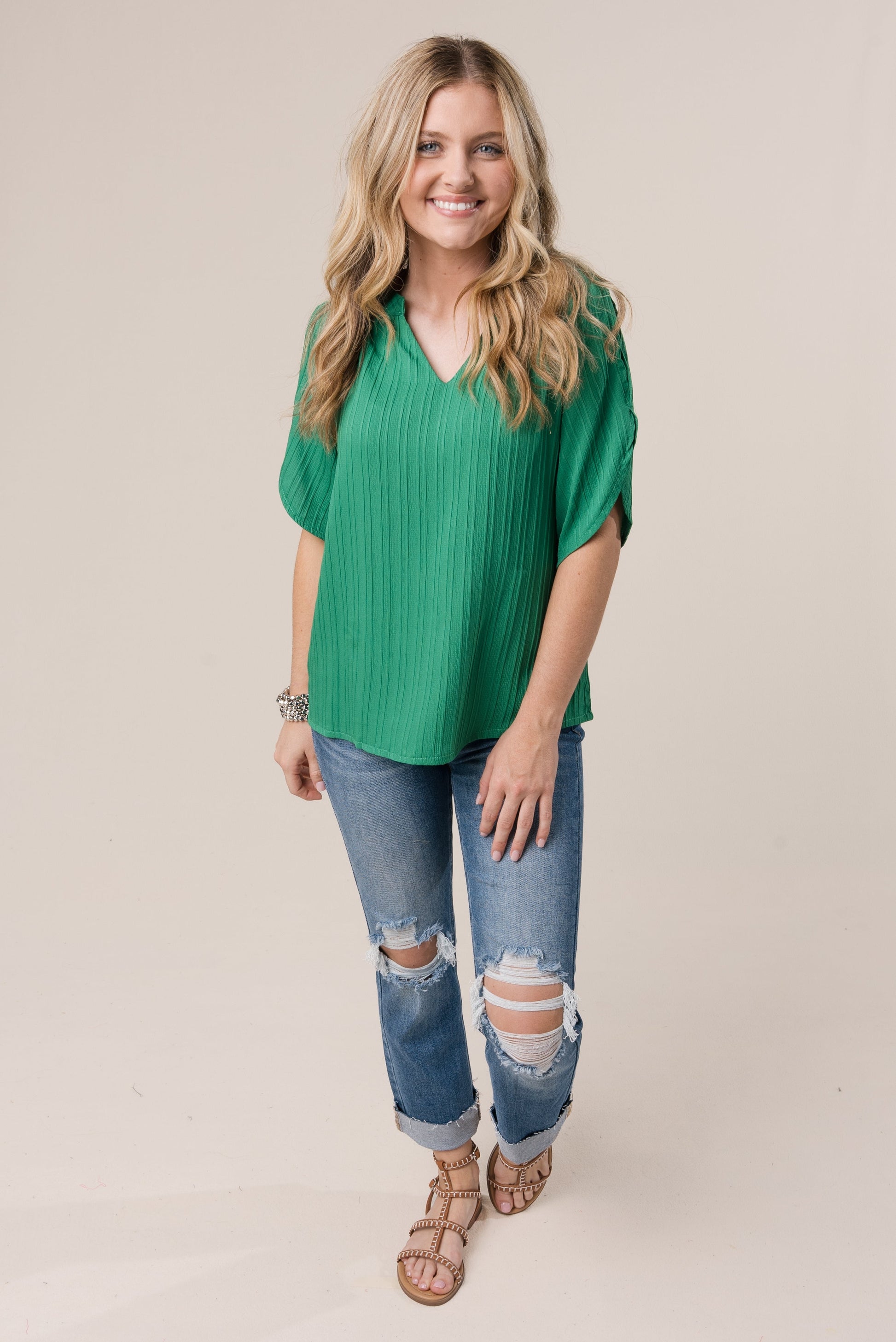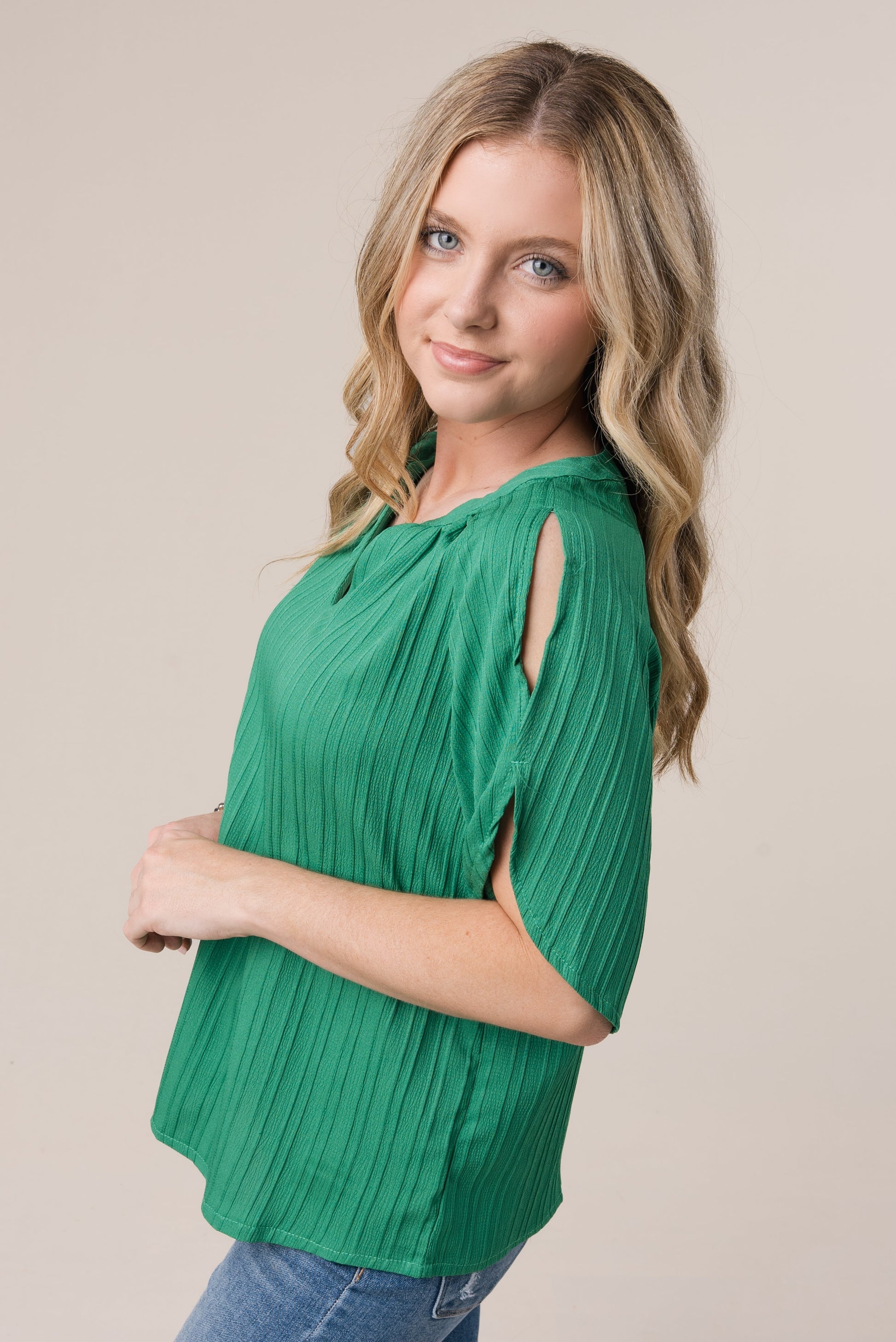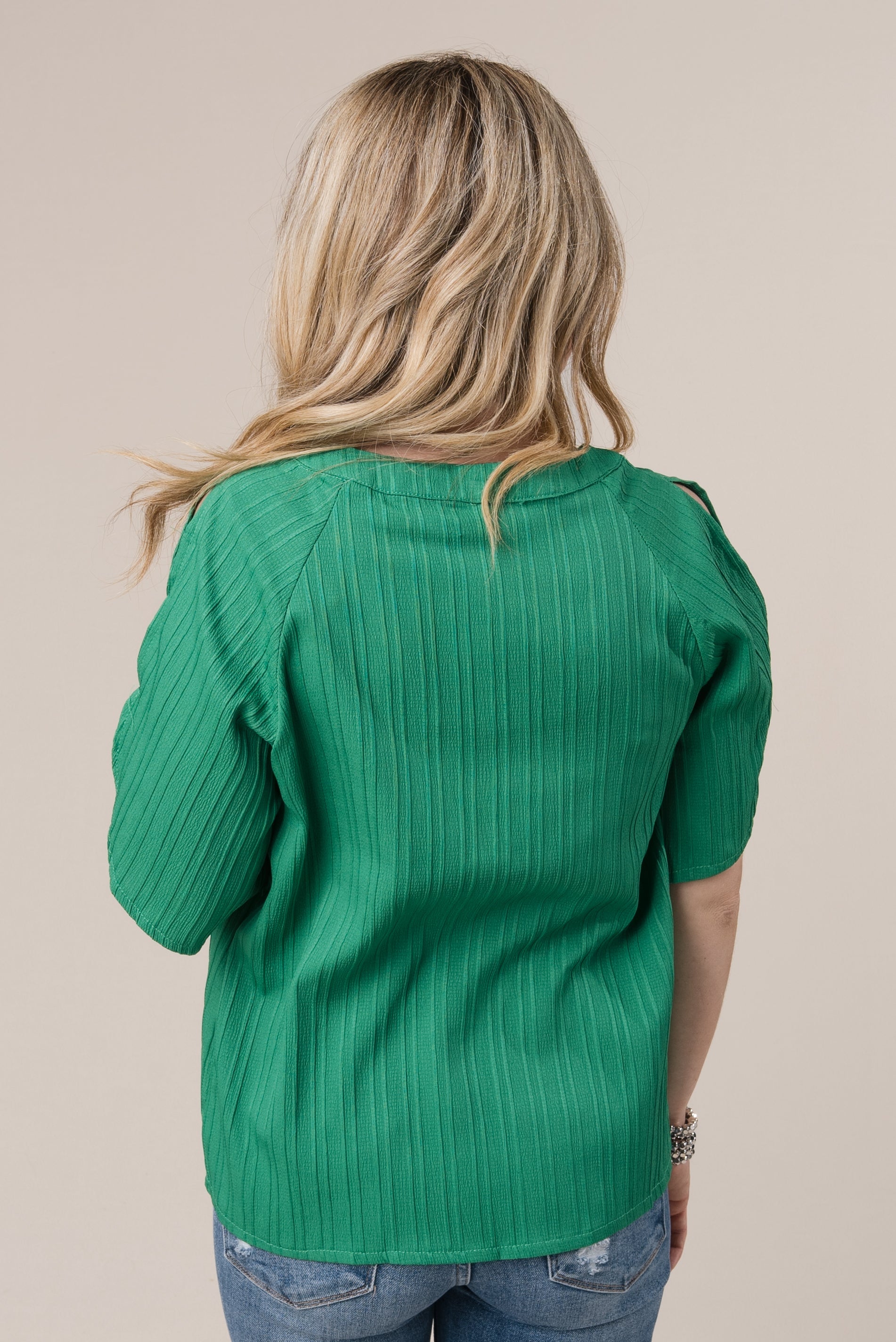 Raised Stripe Cold Shoulder Blouse