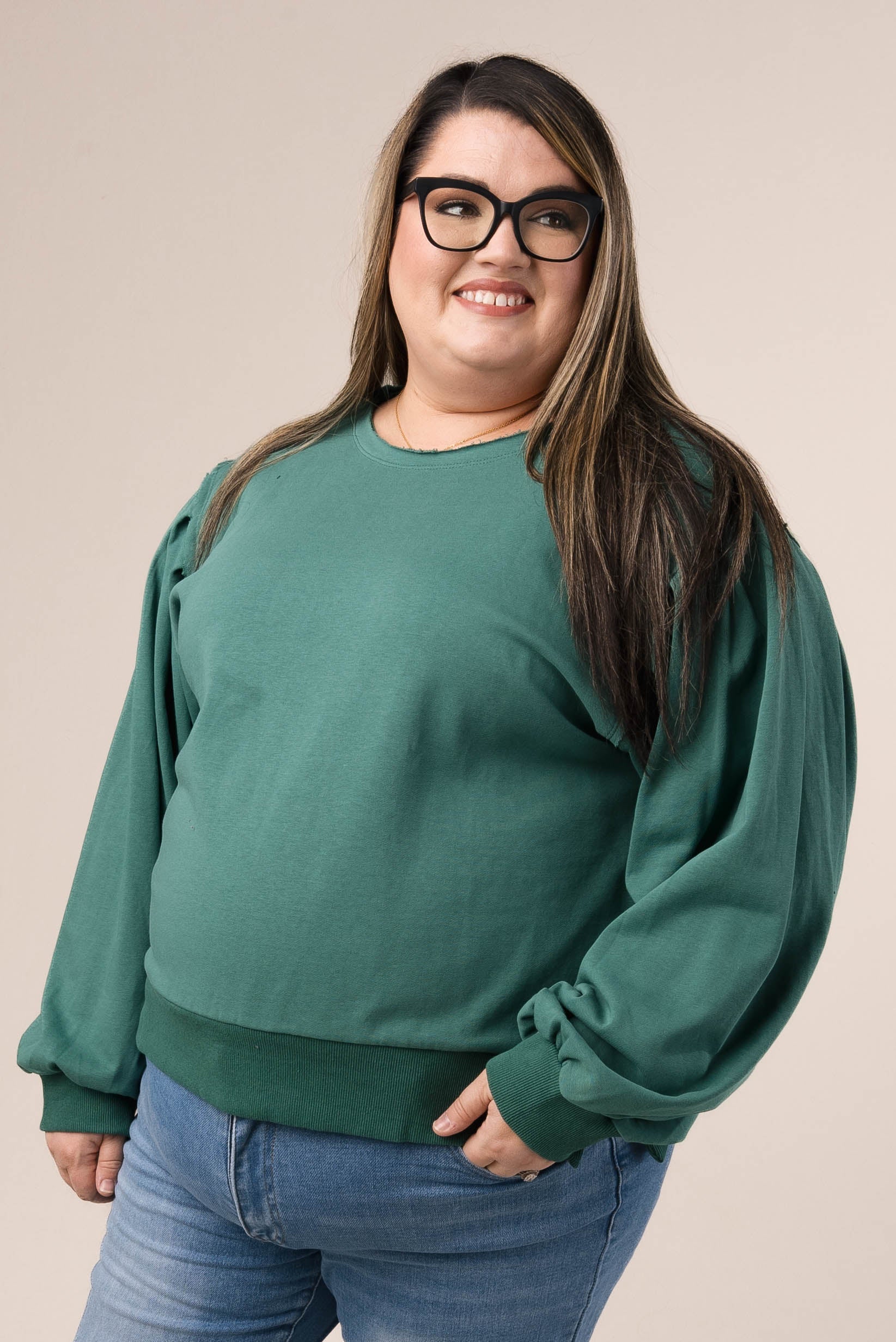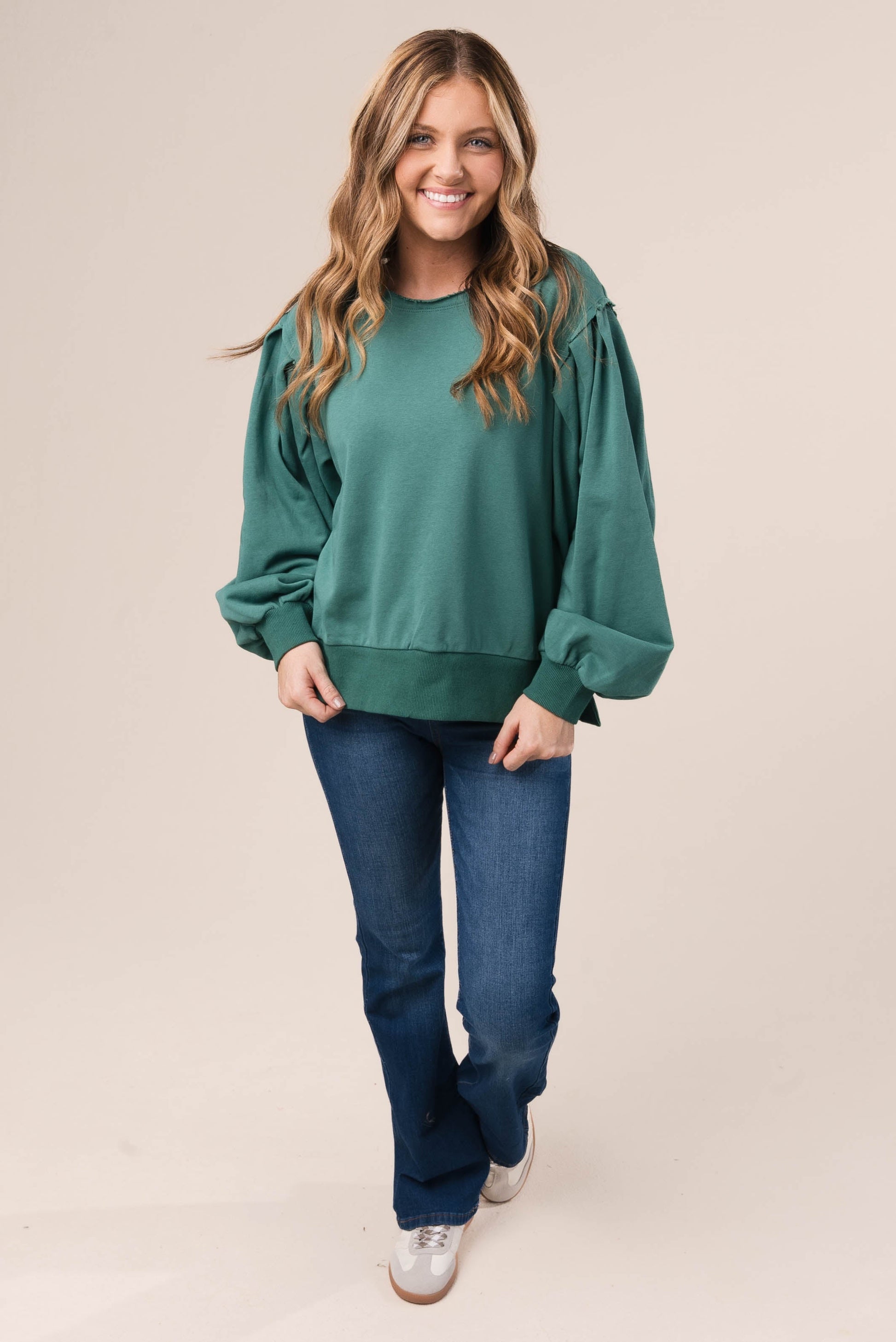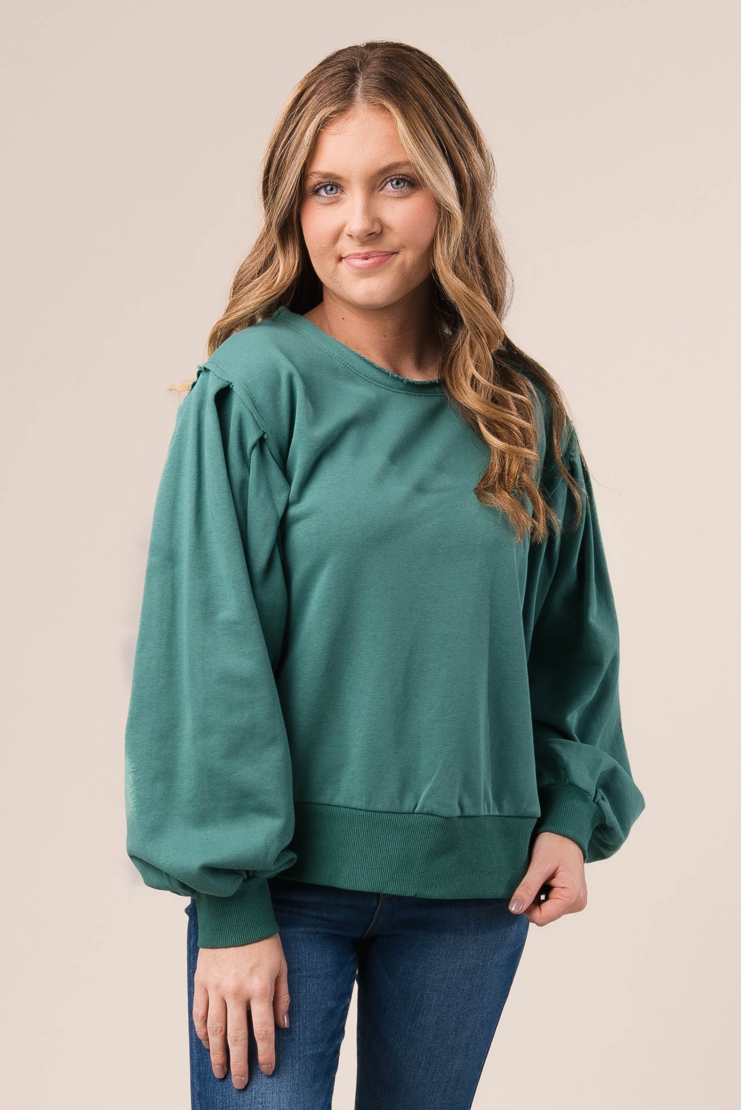 Raw Edge Peasant Sleeve Top *Final Sale*