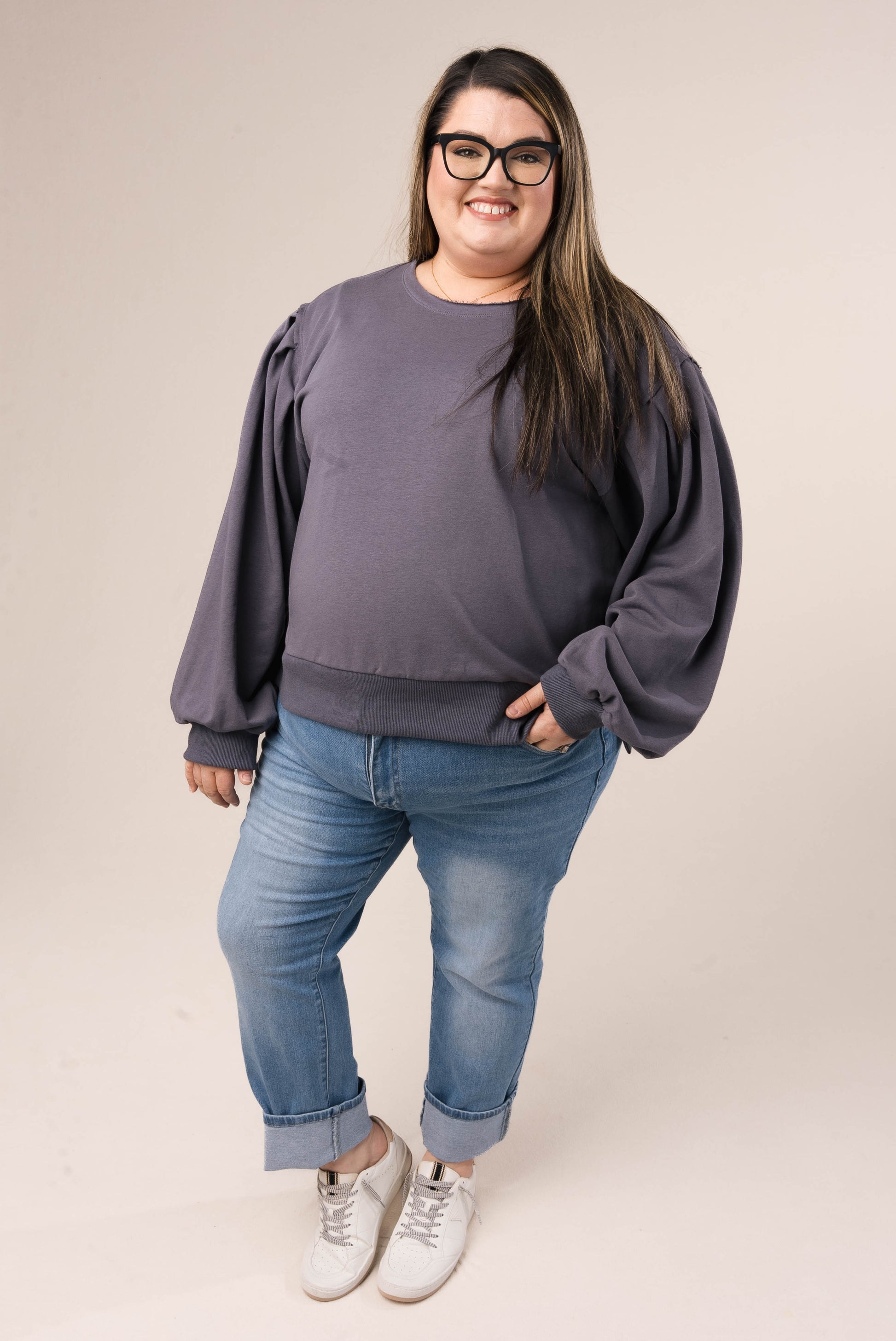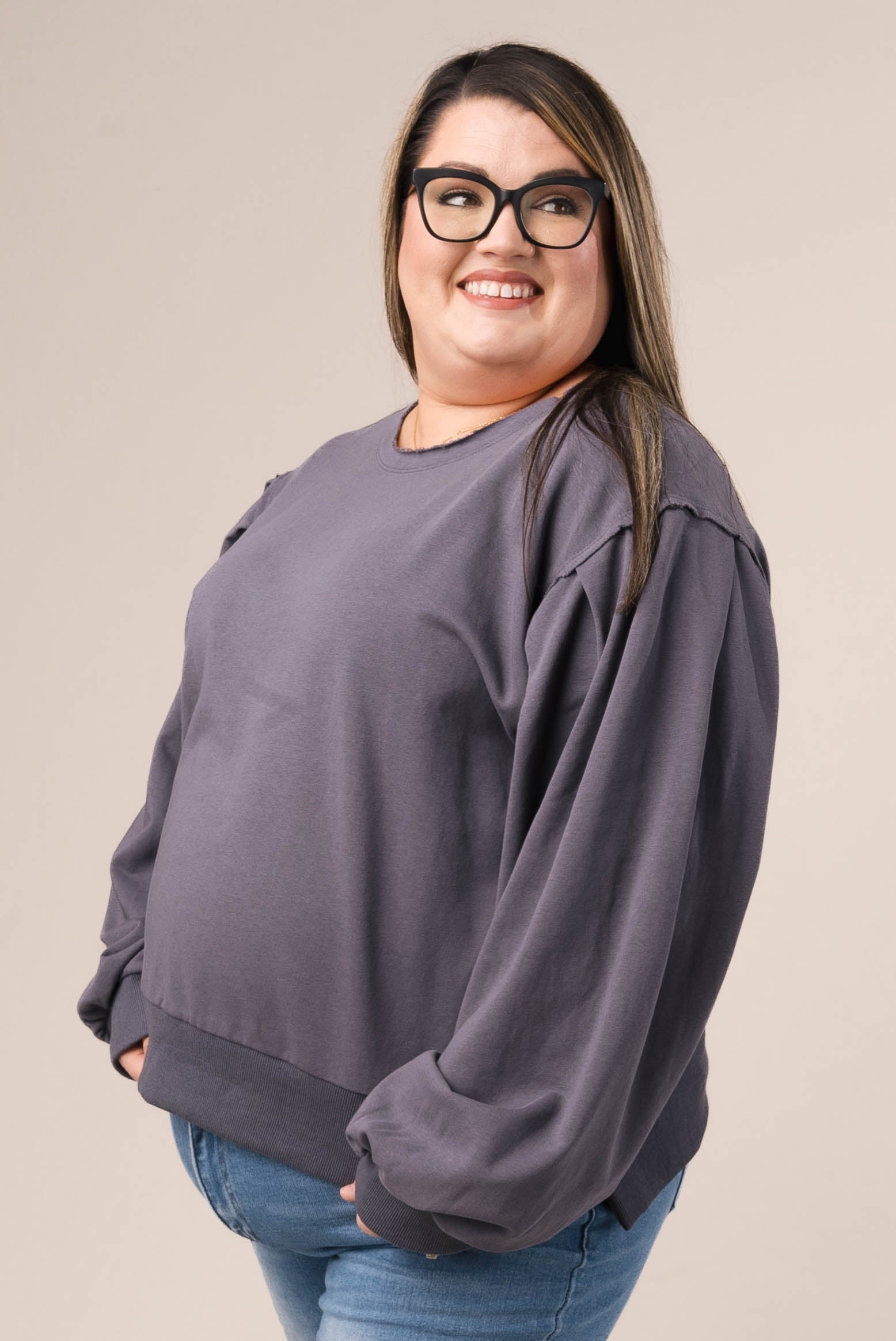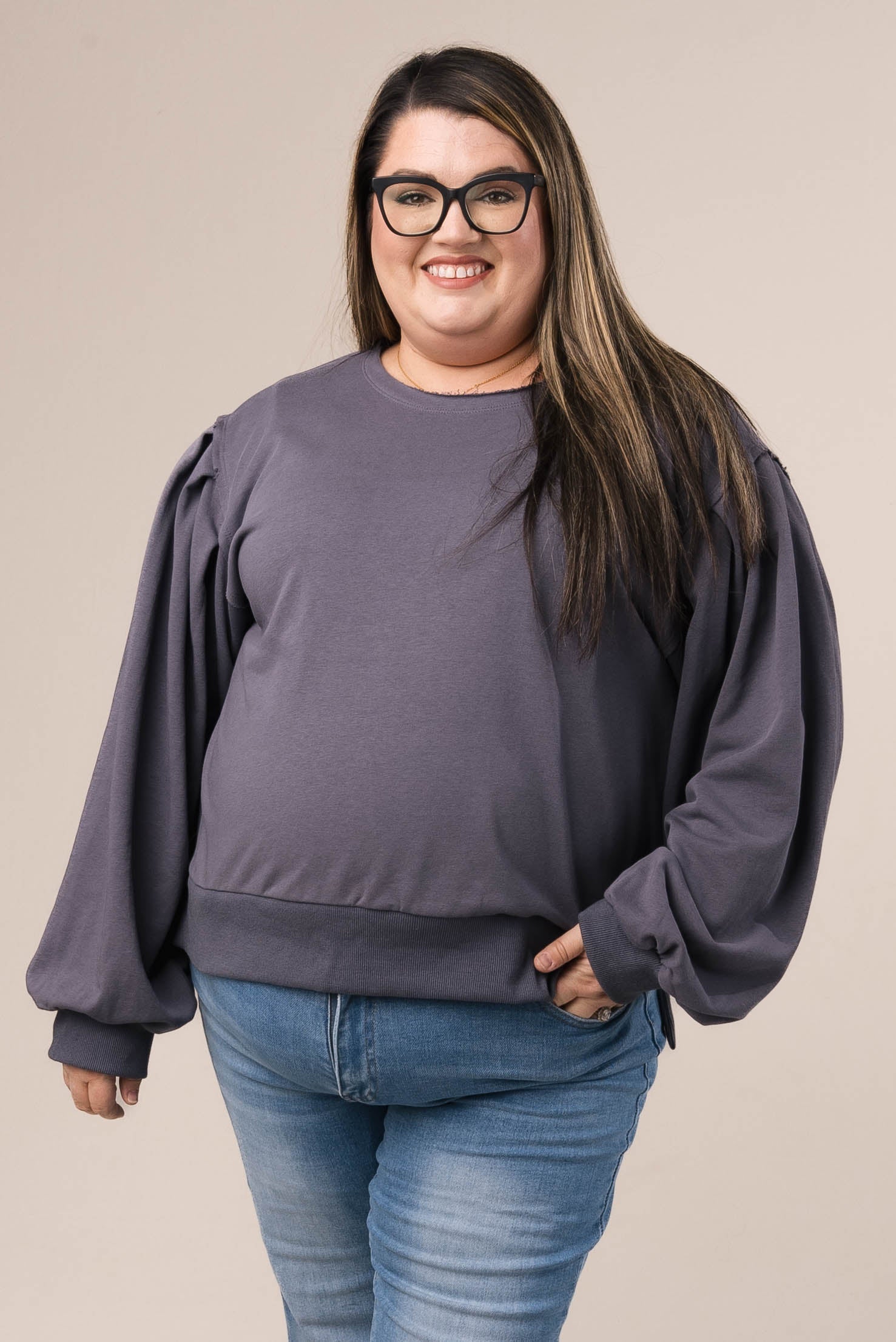 Raw Edge Peasant Sleeve Top *Final Sale*