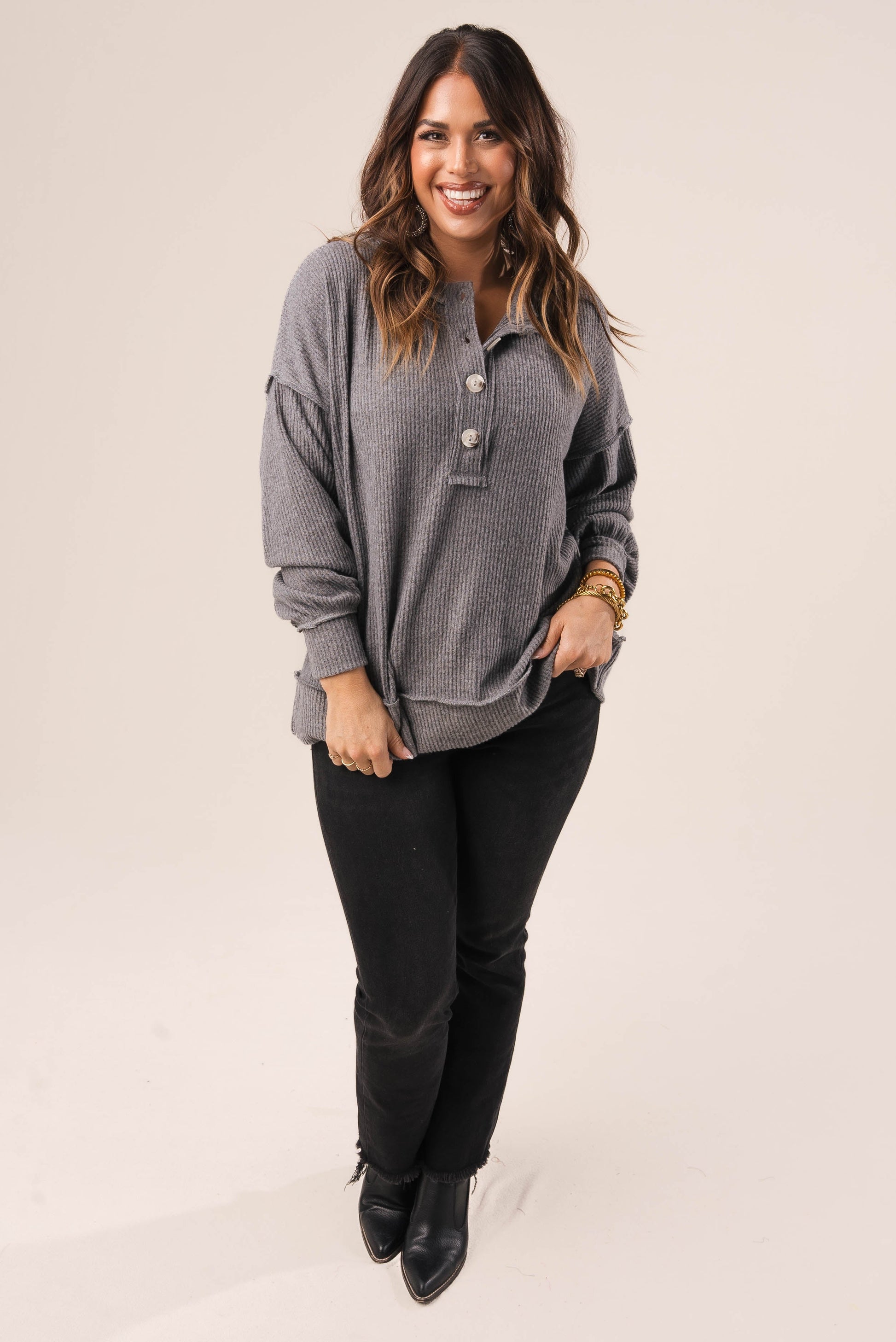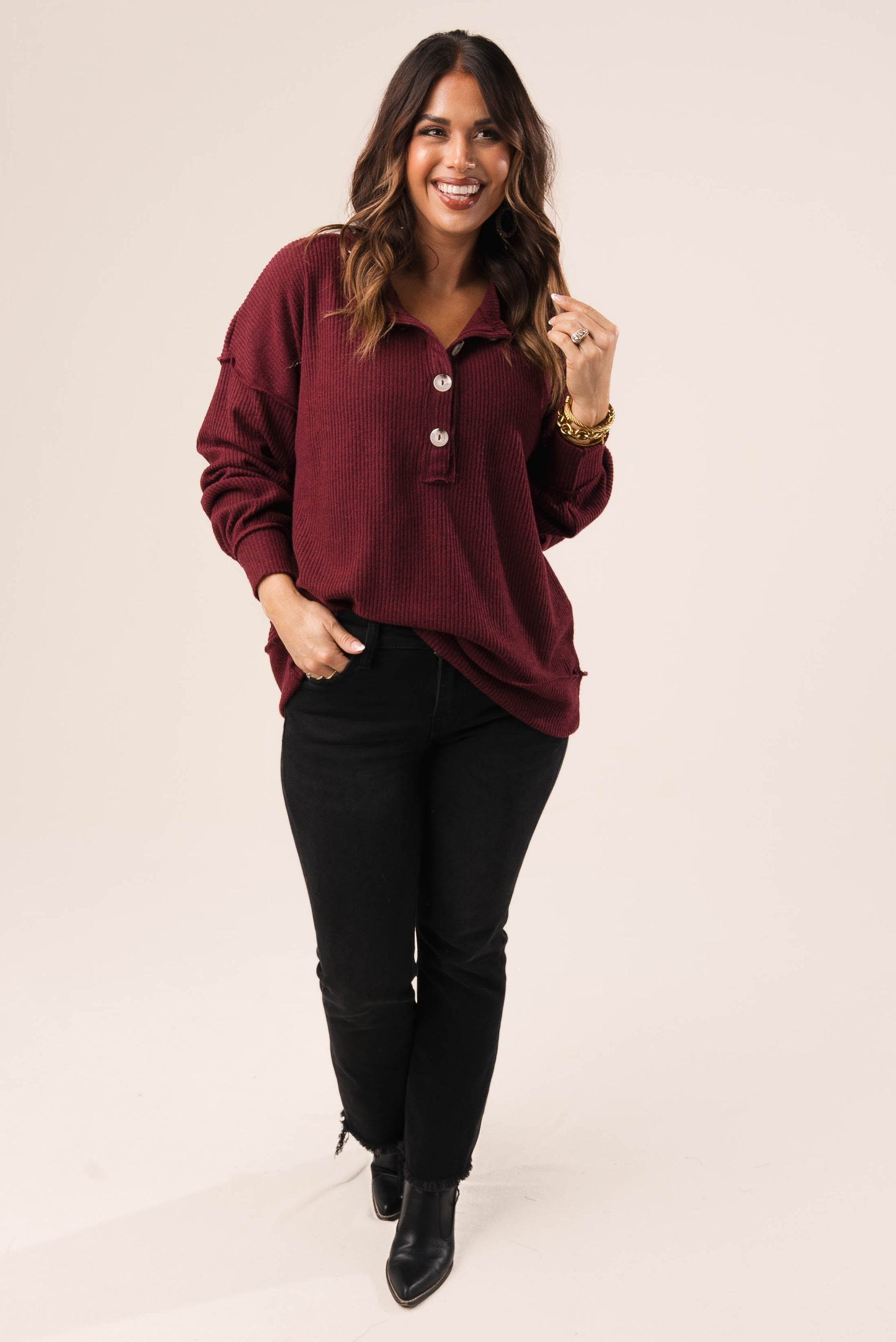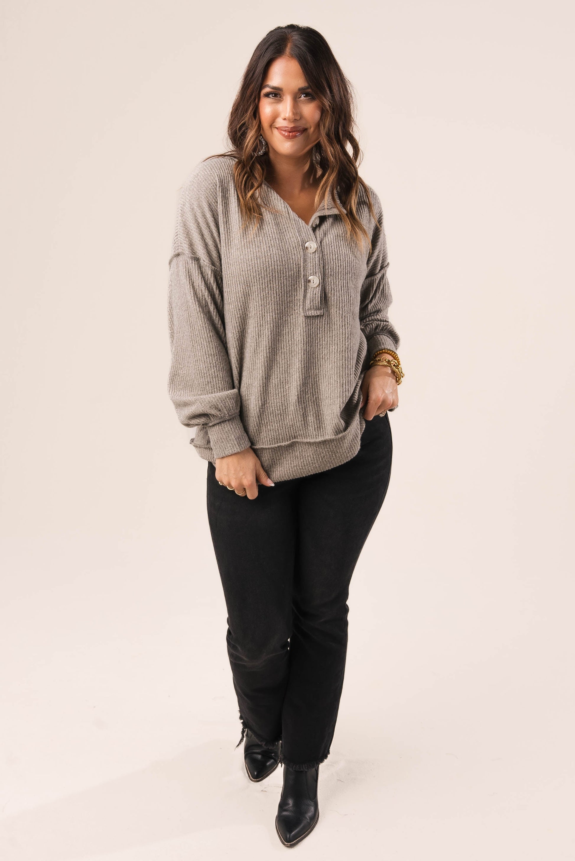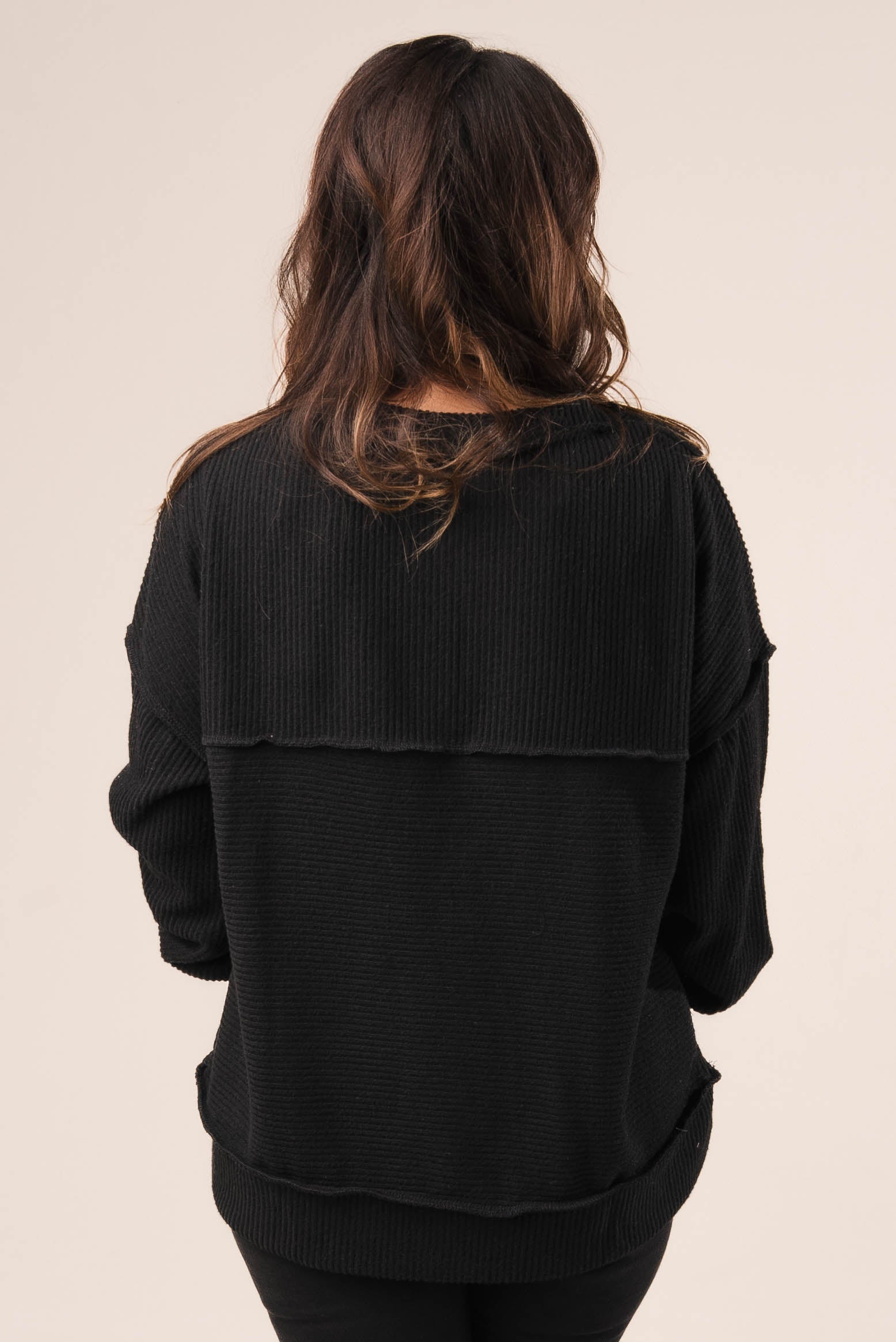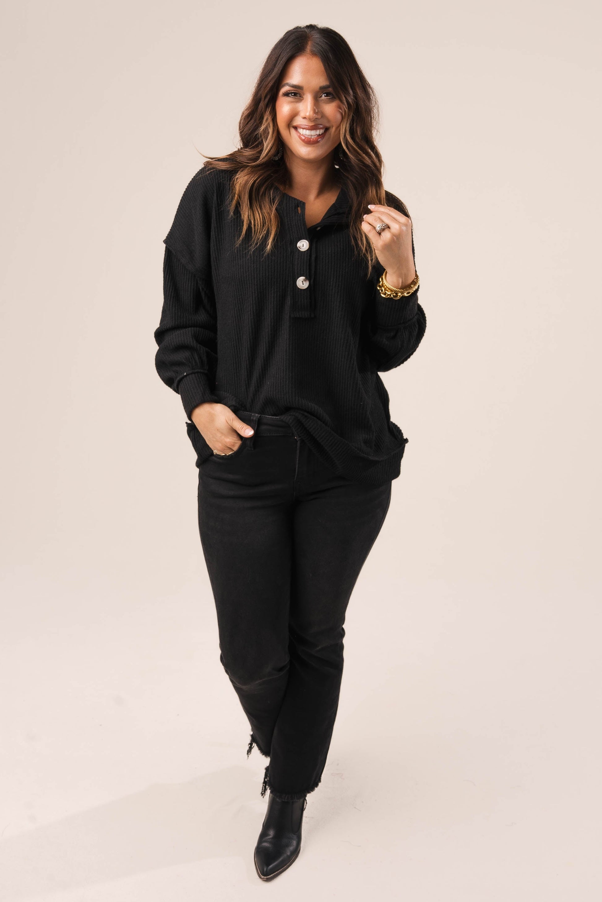 Ribbed Raw Seamed Henley Top *Final Sale*