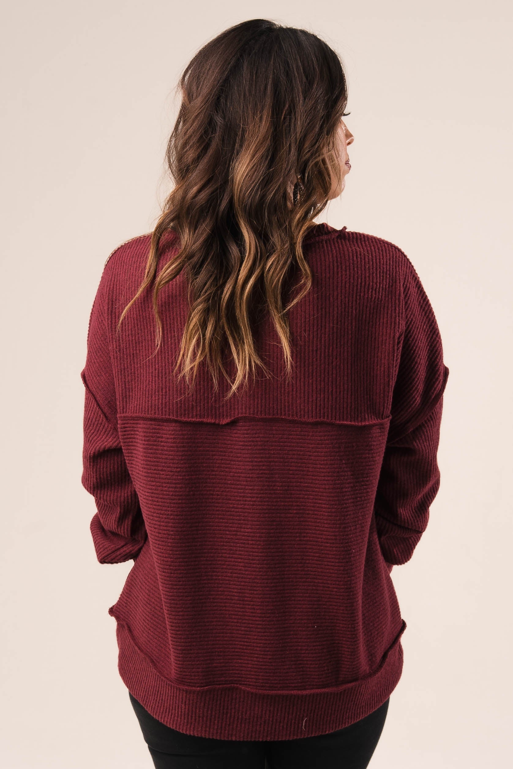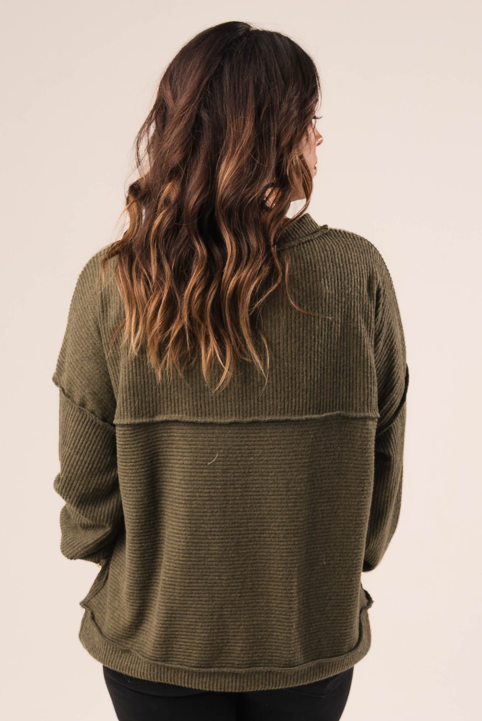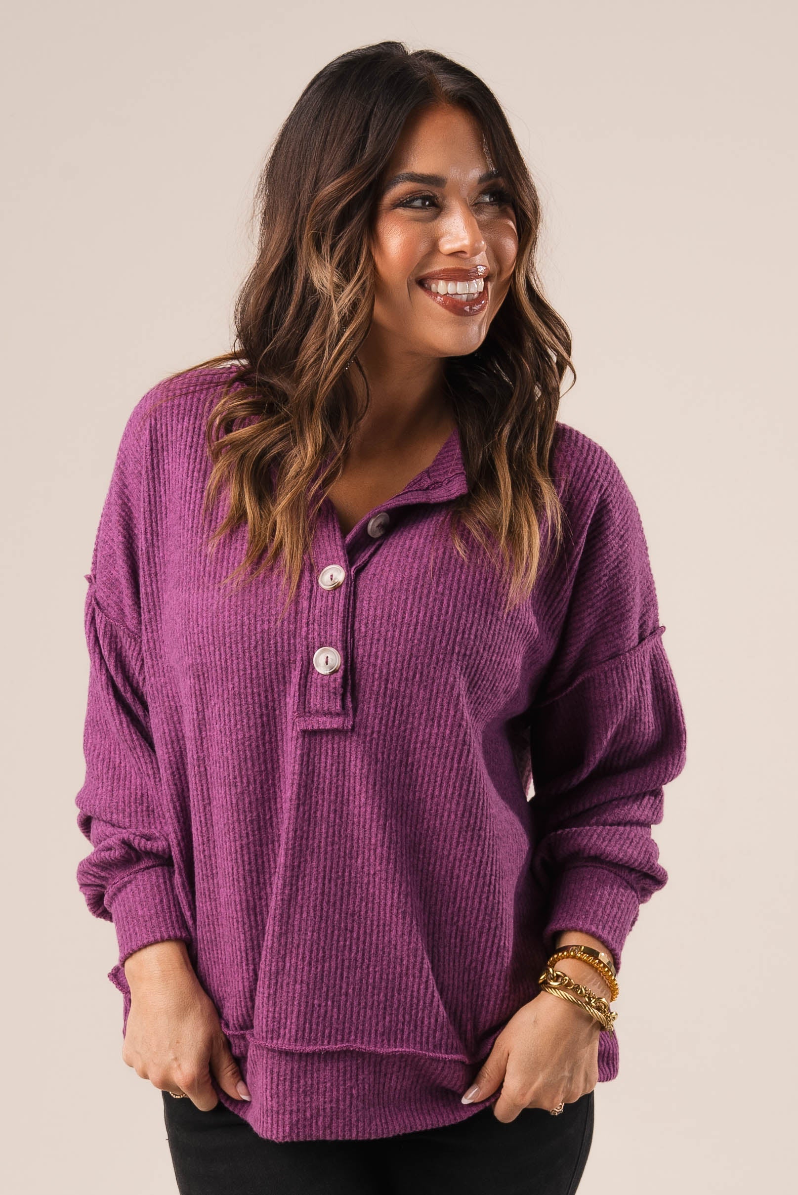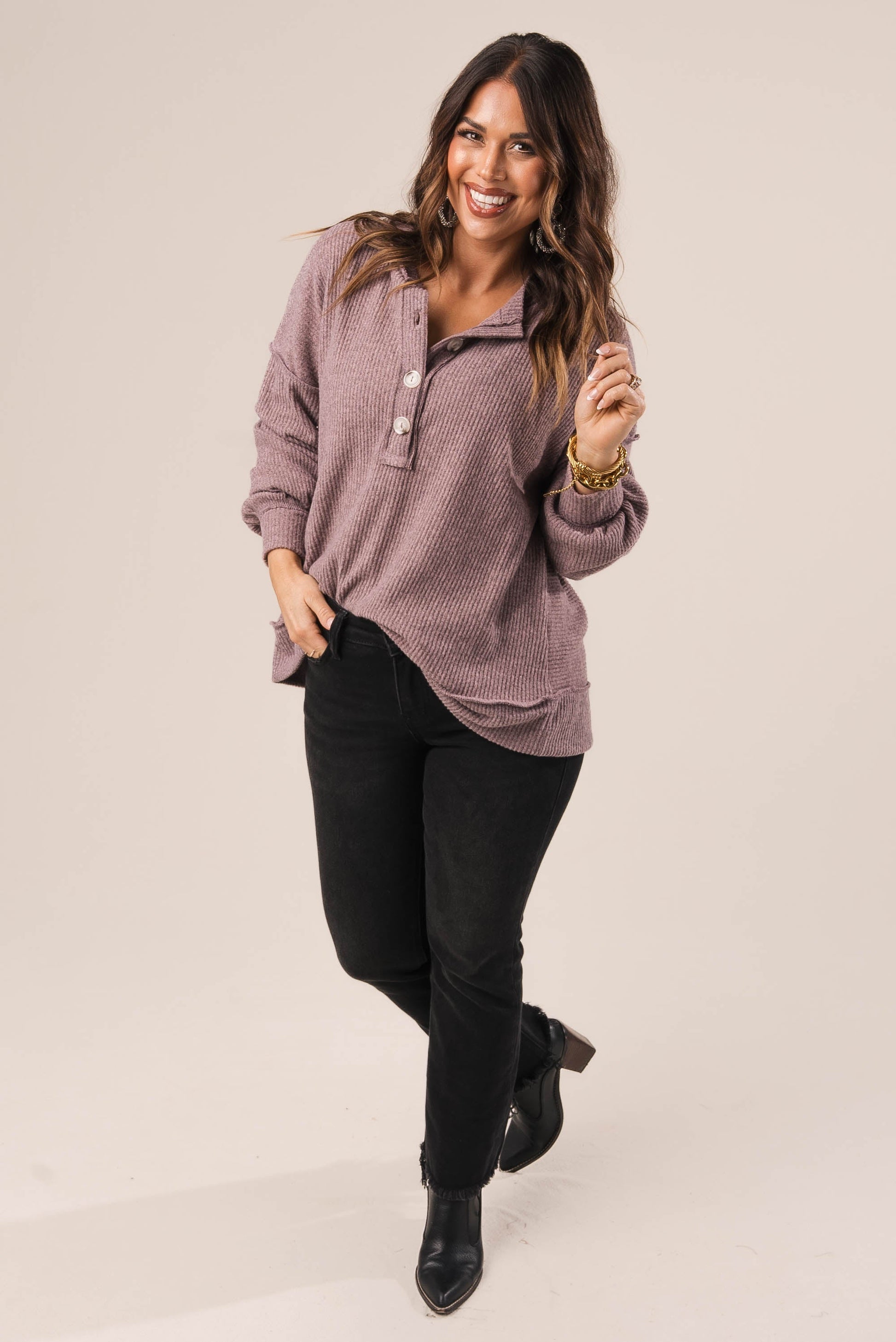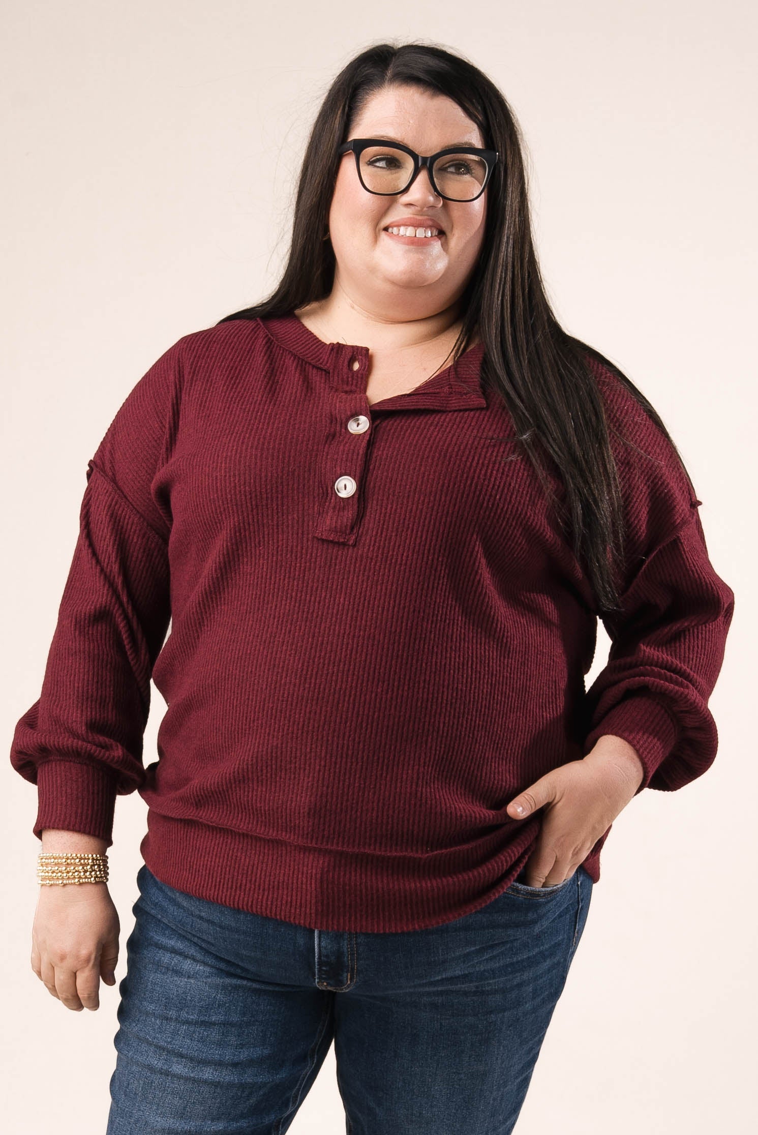 Ribbed Raw Seamed Henley Top *Final Sale*