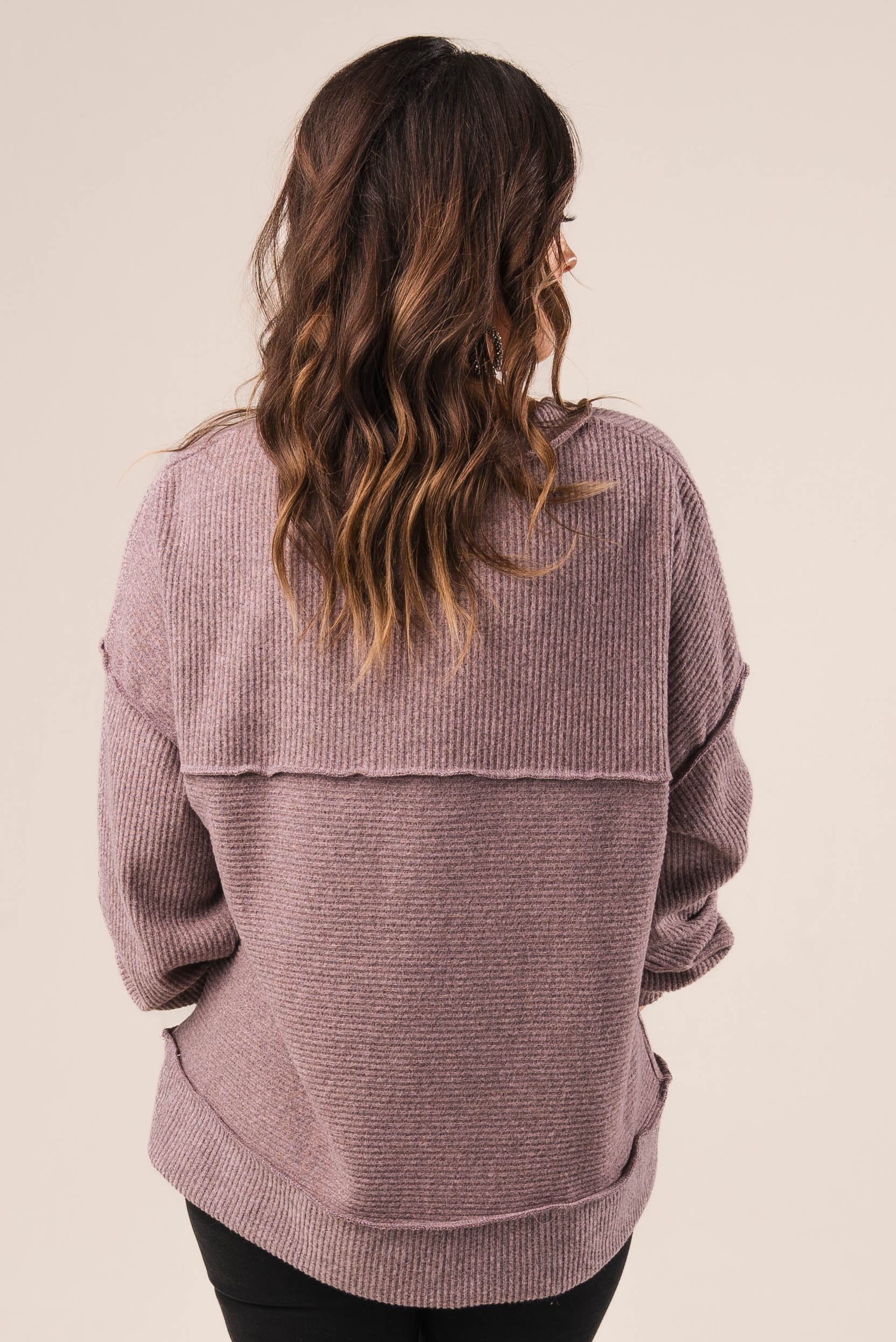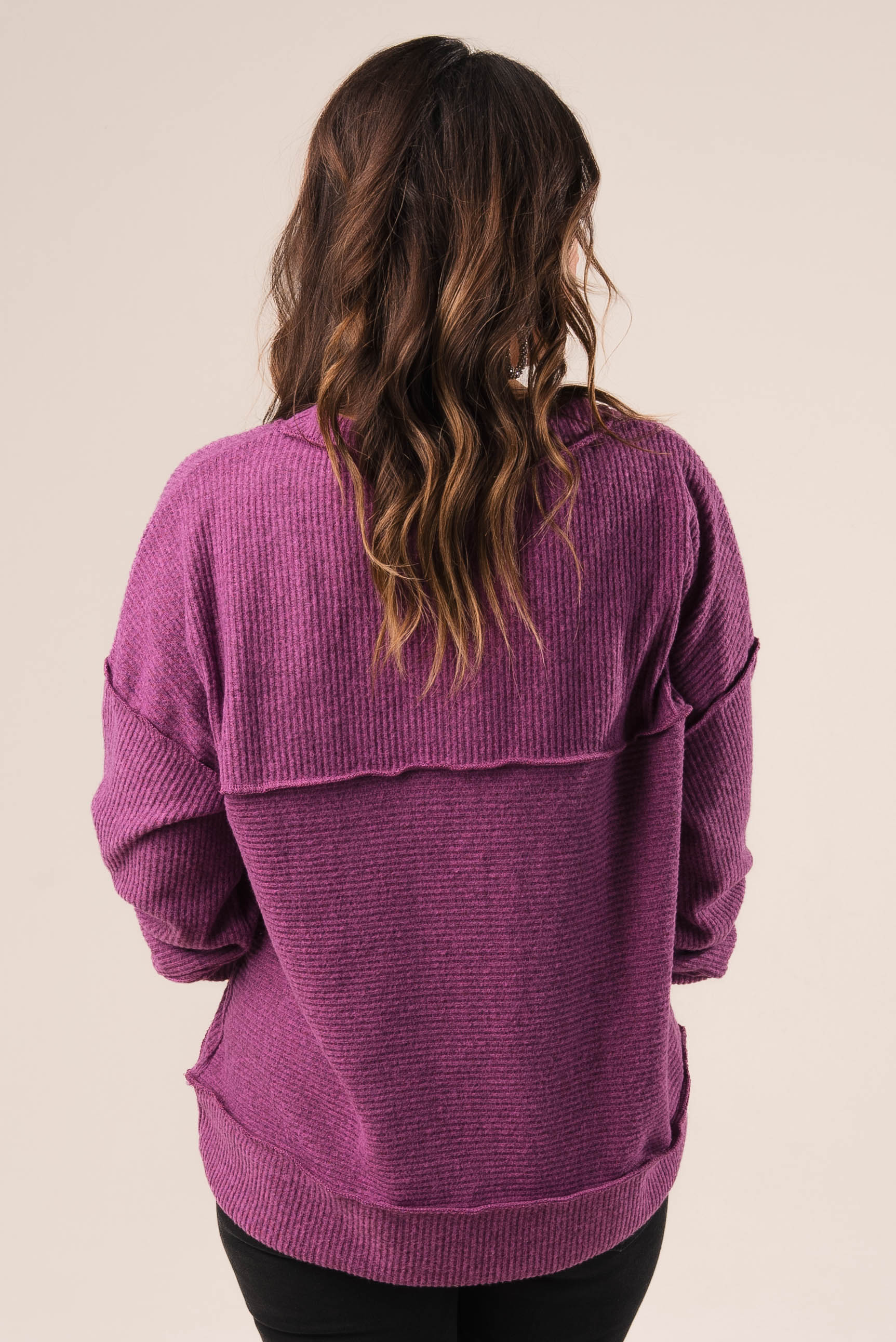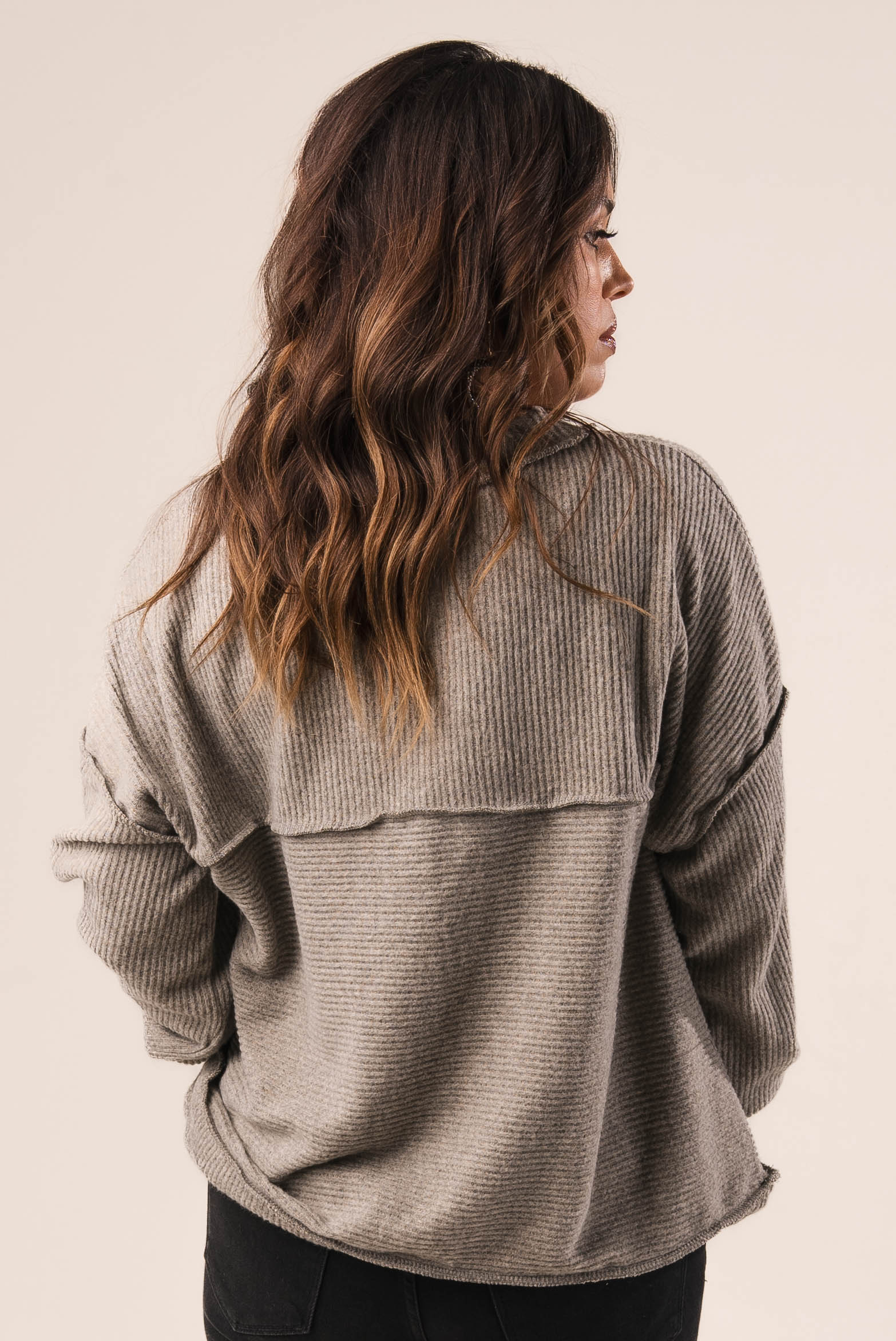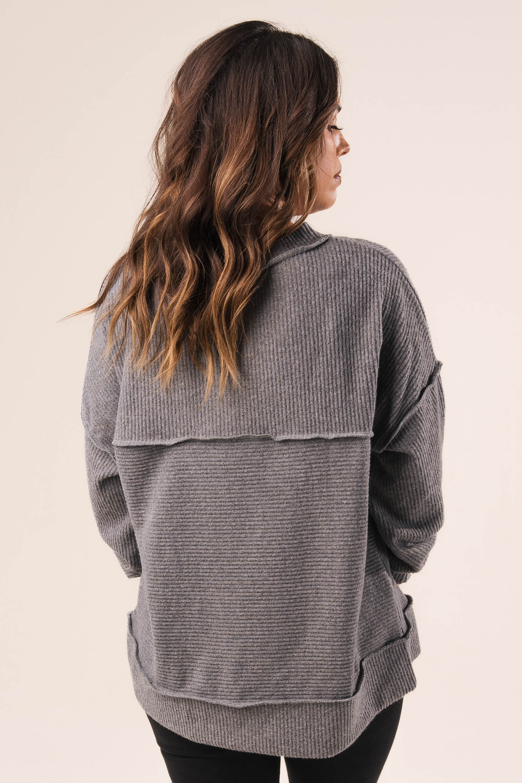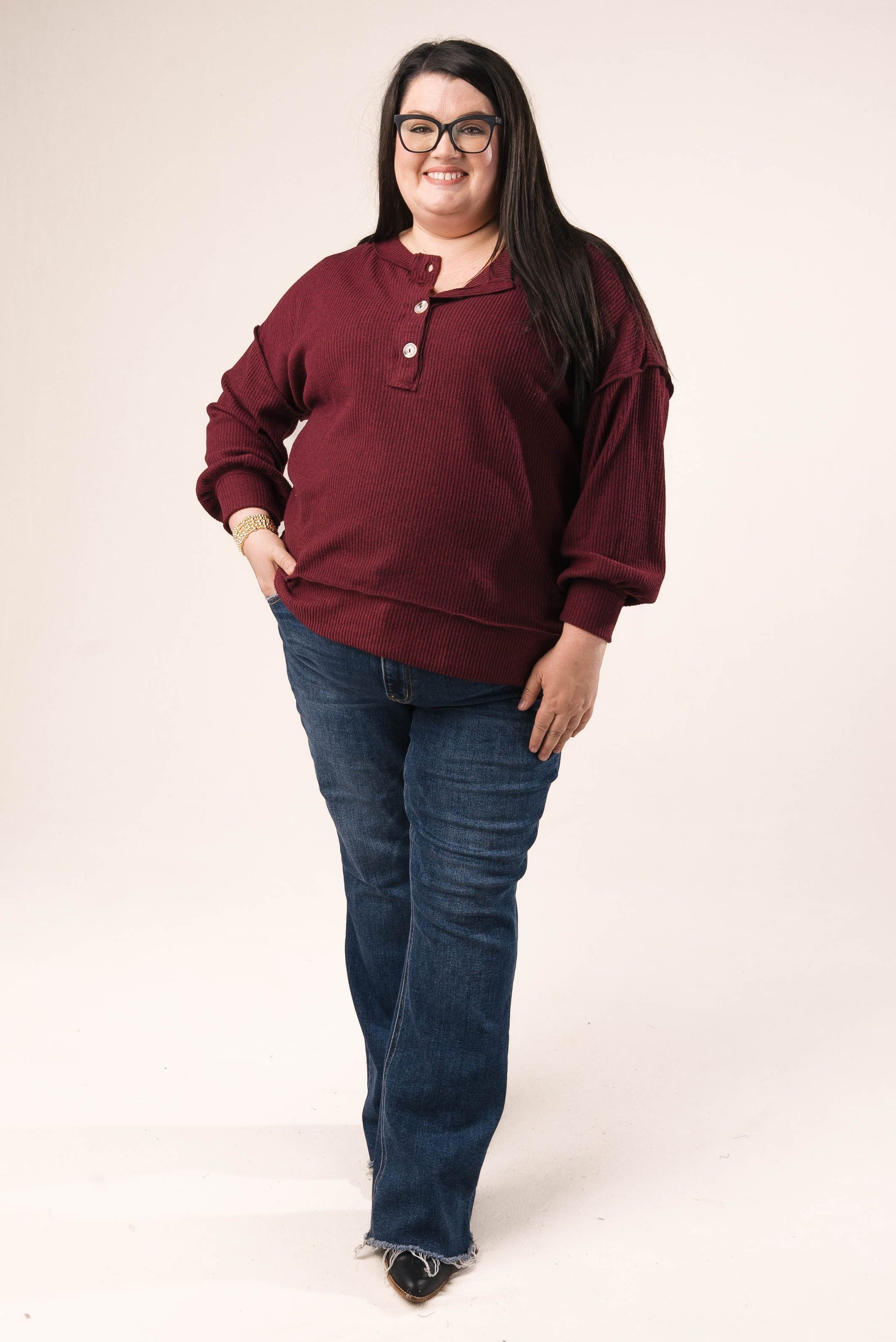 Ribbed Raw Seamed Henley Top *Final Sale*