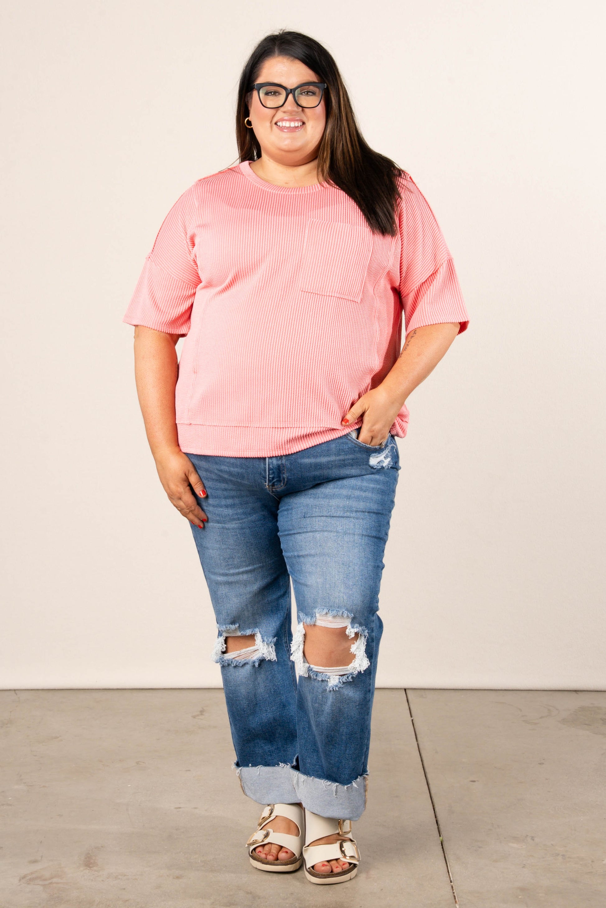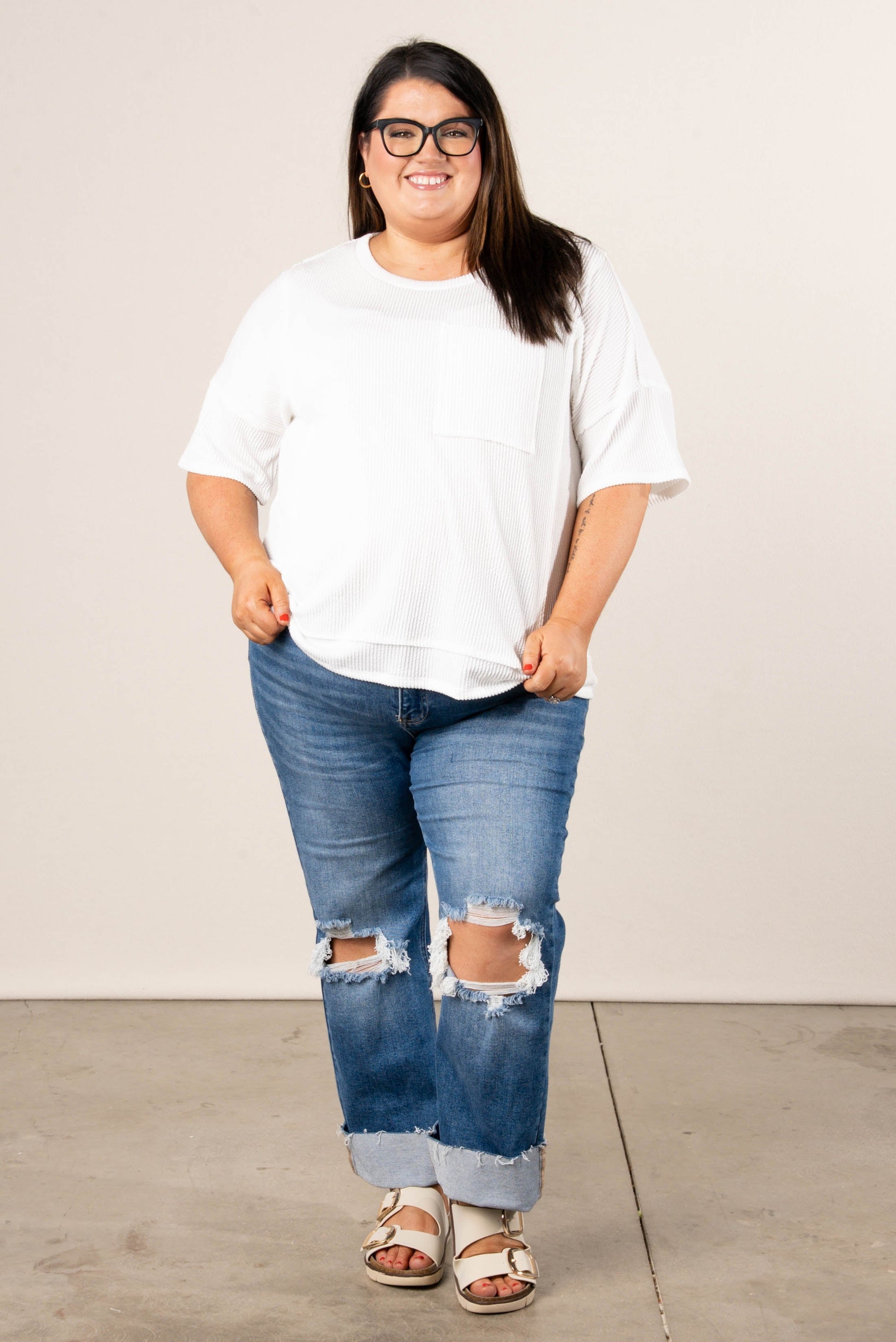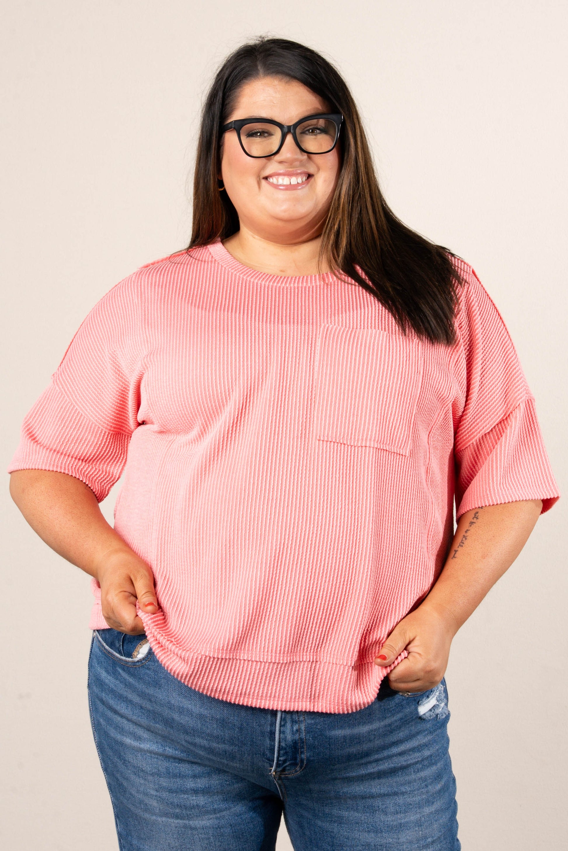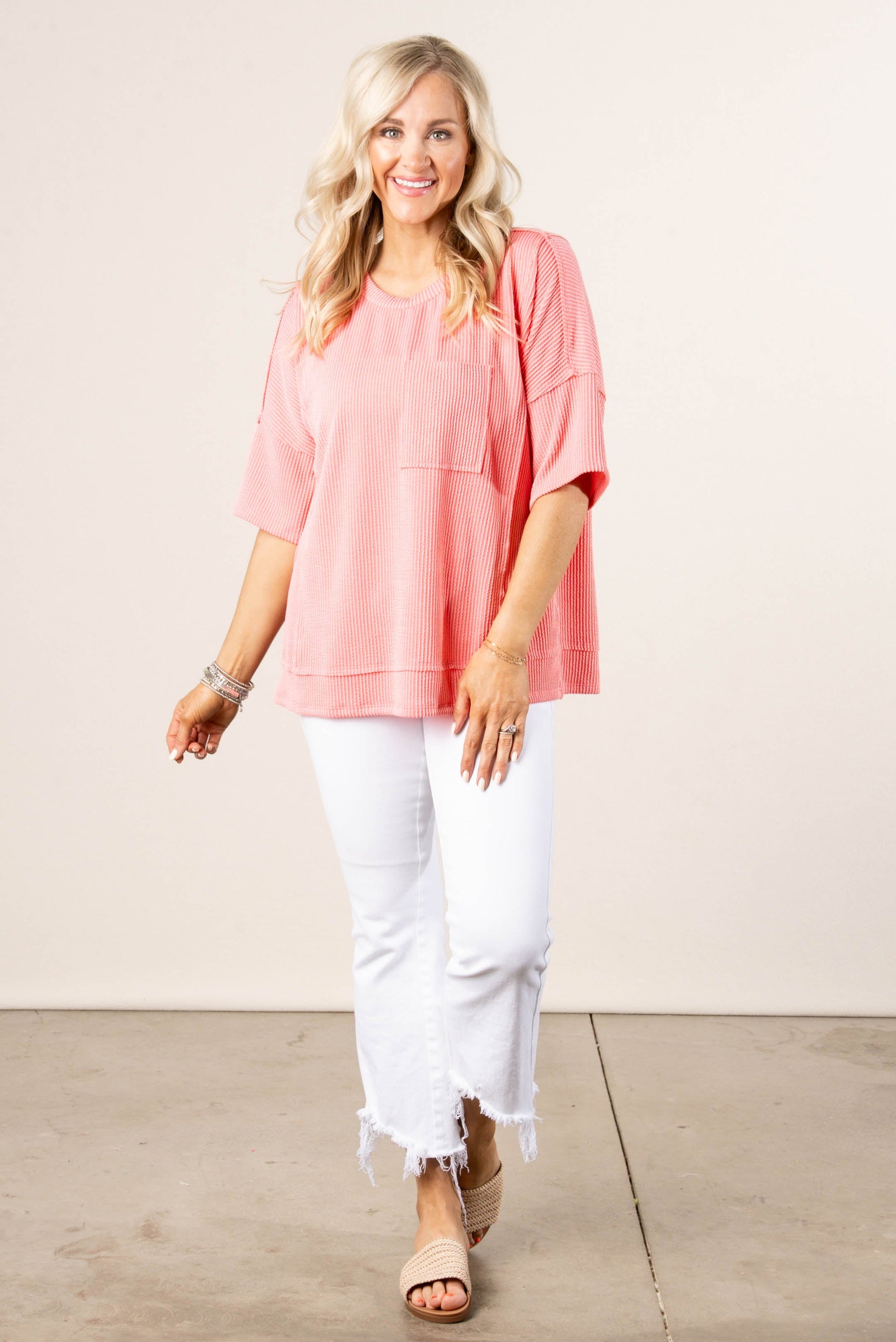 Ribbed Raw Seamed Pocket Top *Final Sale*