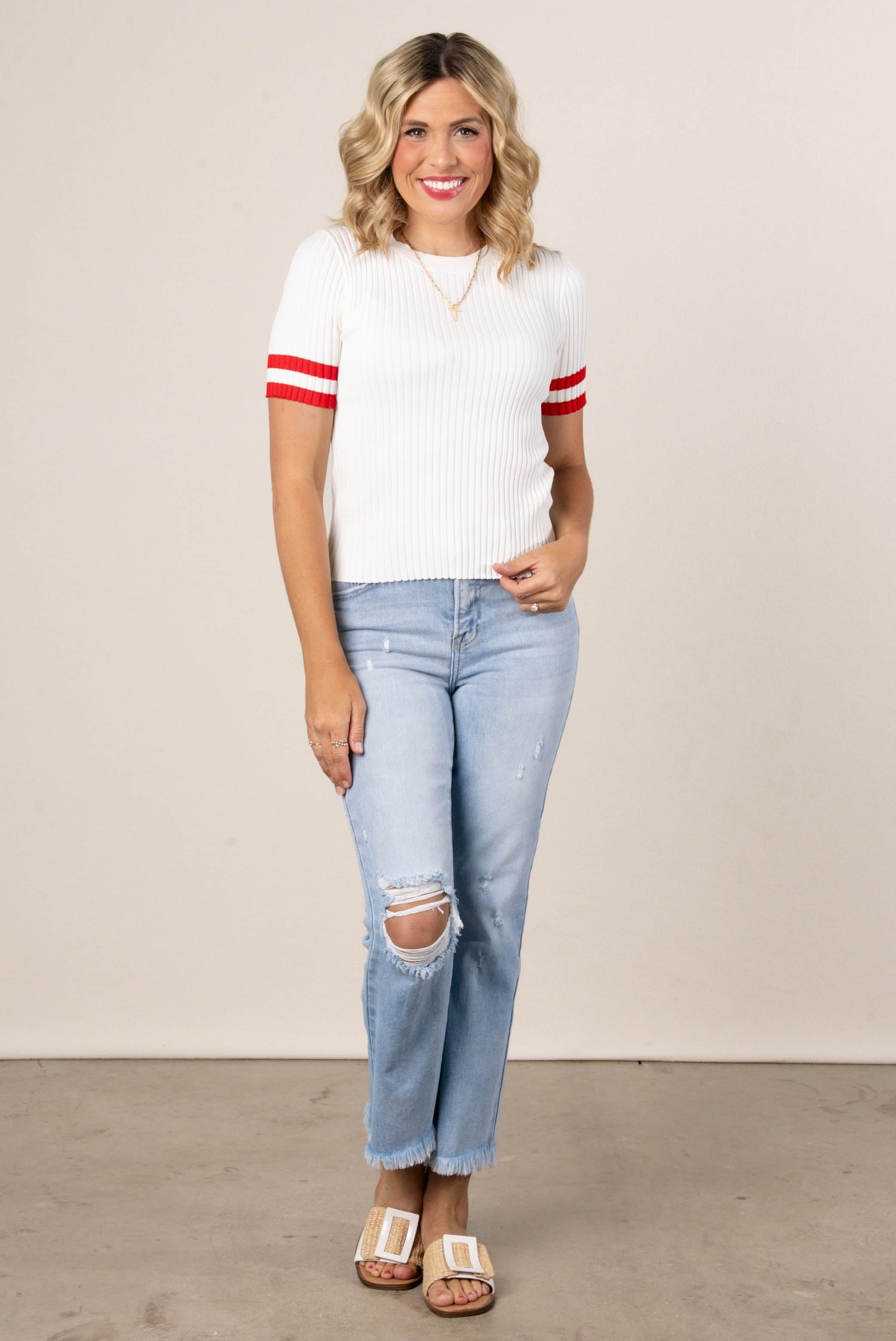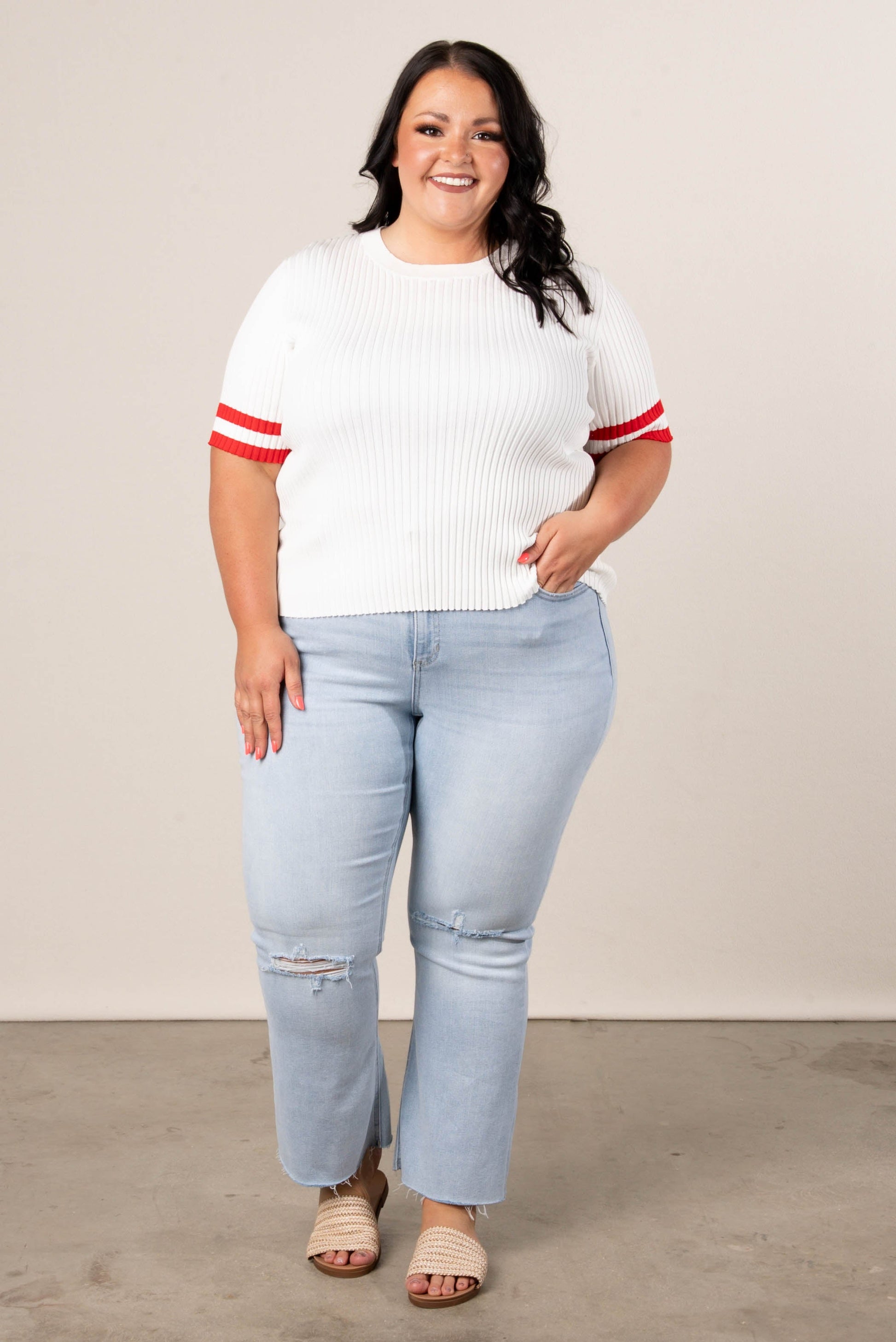 Ribbed Striped Sleeve Sweater *Final Sale*