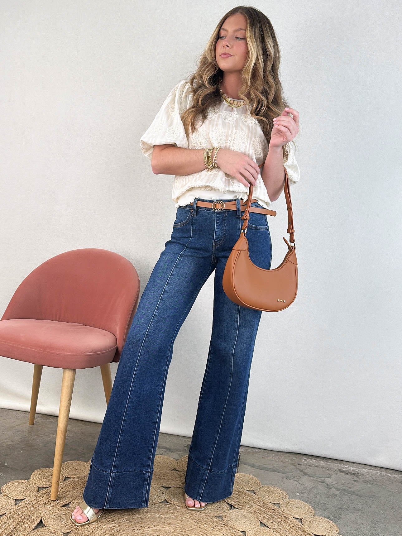 Risen Denim | Brooks Mid Rise Tummy Control Wide Leg Jeans