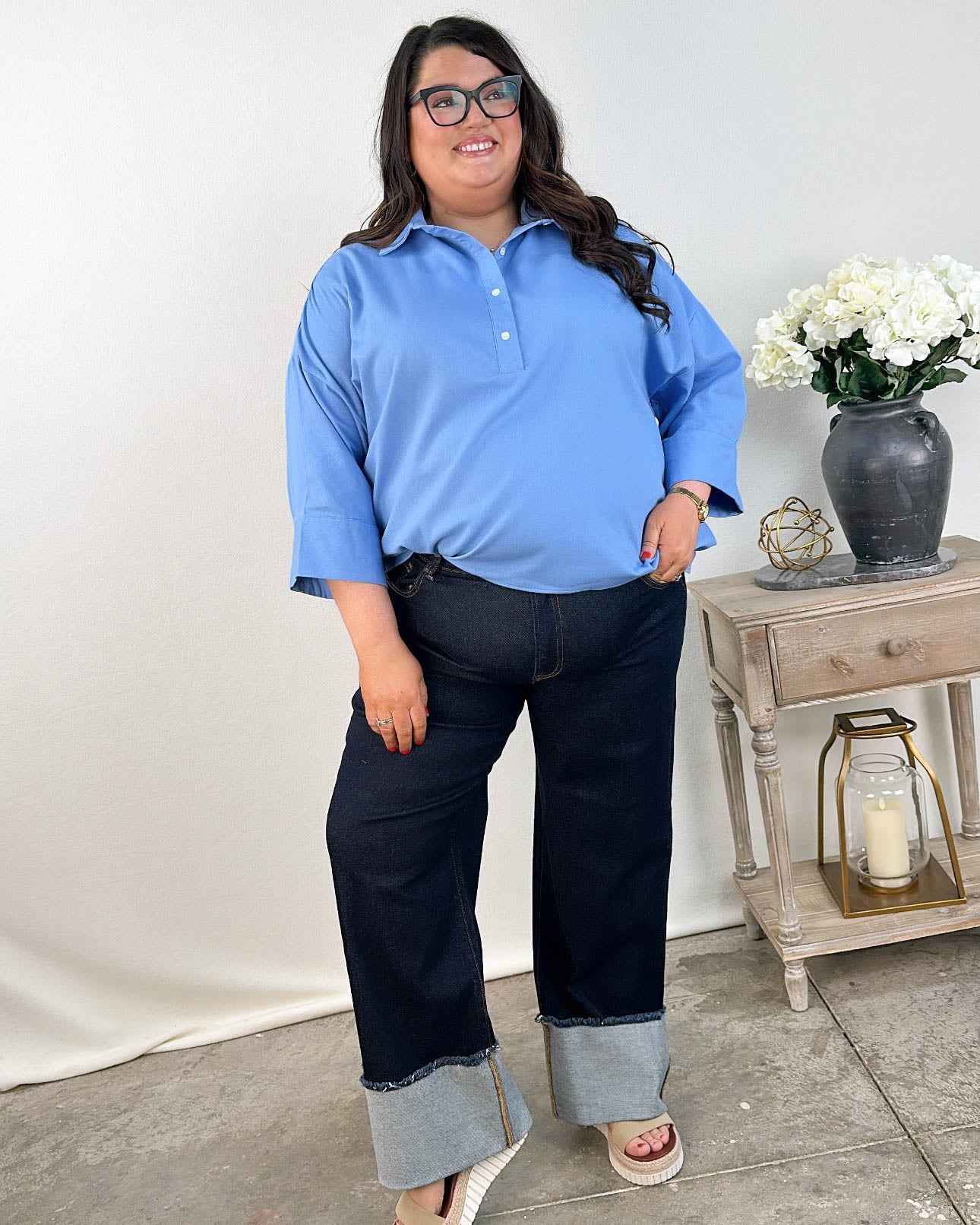 Risen Denim | Teddy Mid Rise Crop Wide Cuffed Jeans