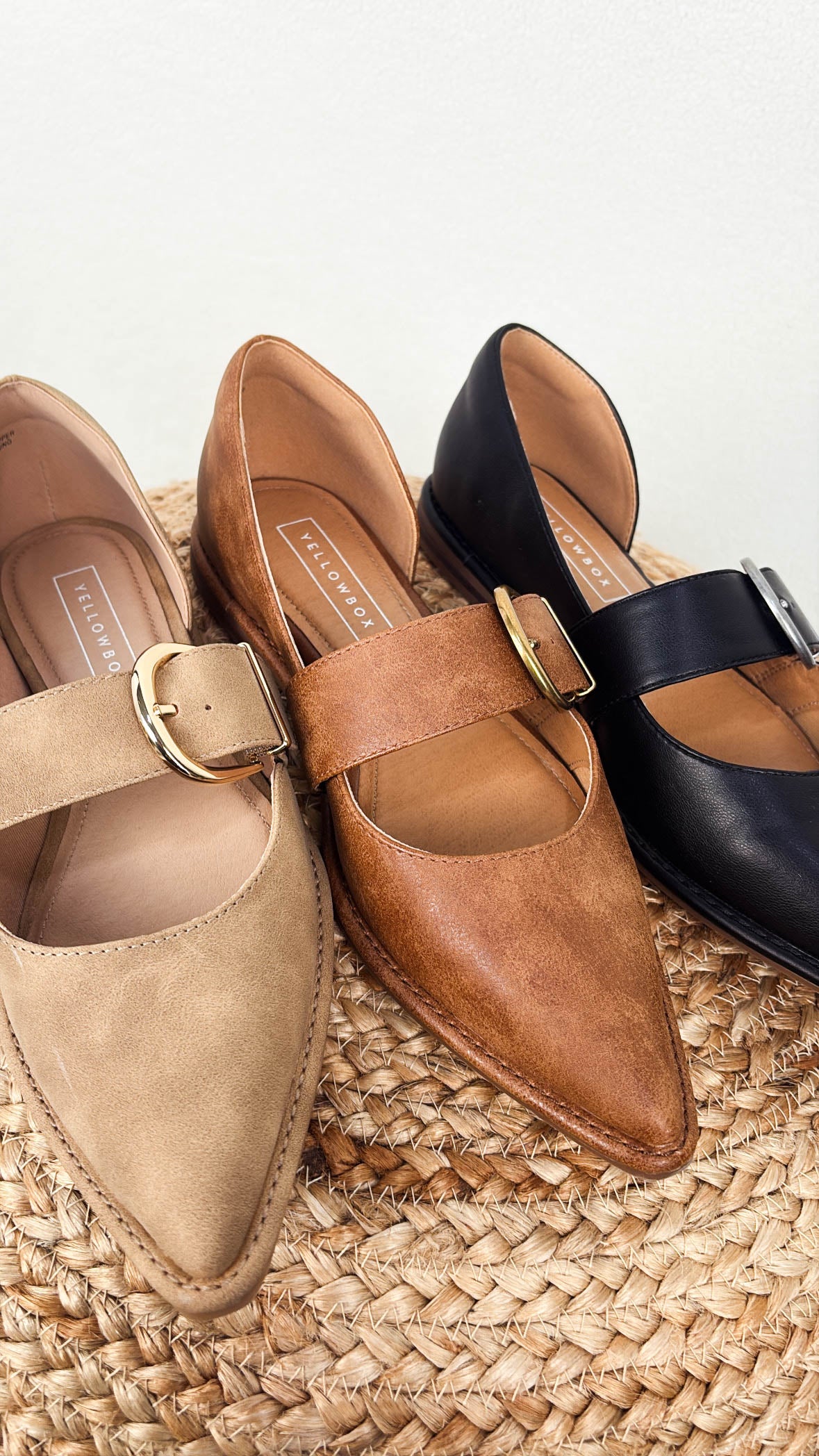 • Style: Pointed toe, D’Orsay cut, buckle strap