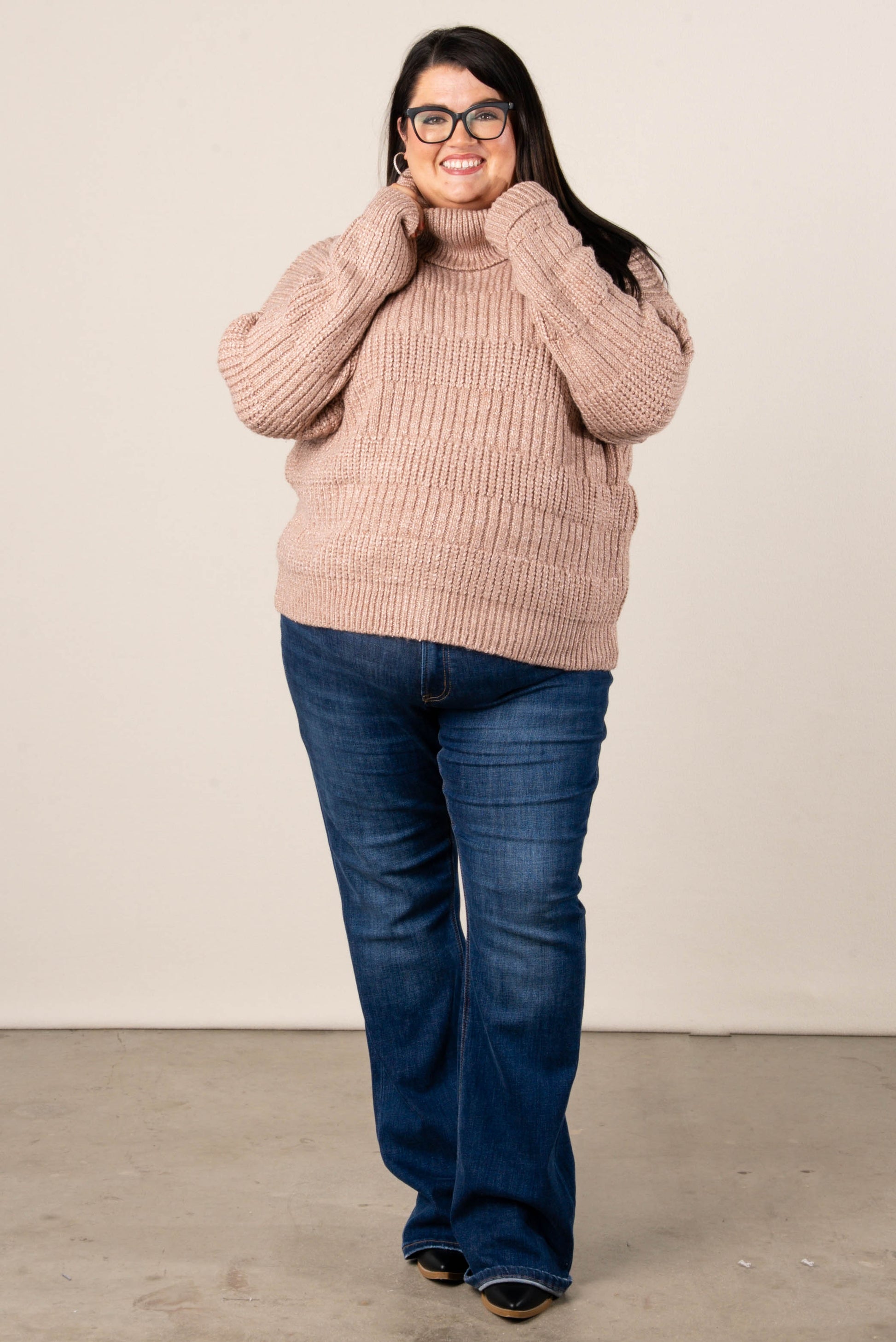 Rosemary Mixed Knit Turtleneck Sweater