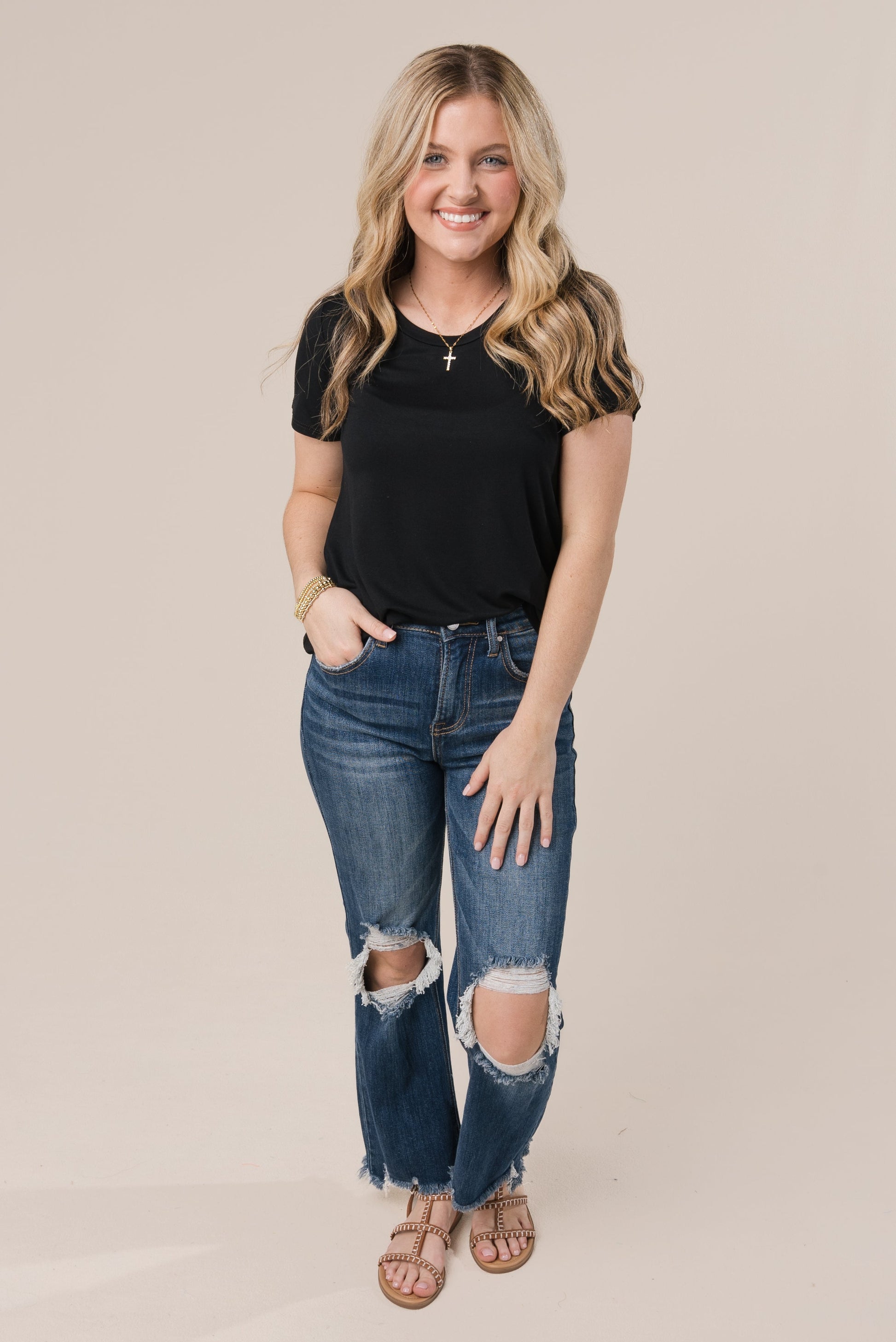 Fabric Content: 95% Rayon, 5% Spandex | Has stretch