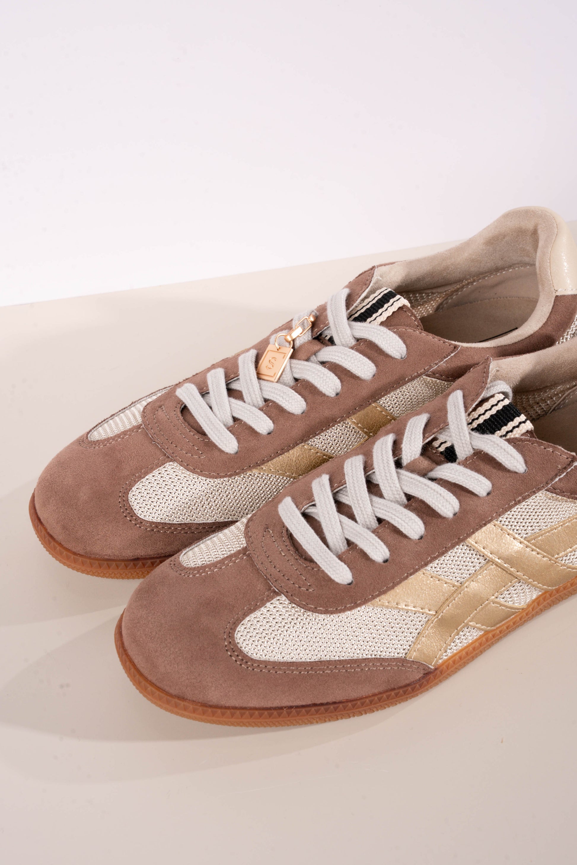 Step up your streetwear game with the Sasha Sneaker by Shu Shop, a chic blend of retro flair and modern comfort. Designed to add a touch of effortless style to your everyday look, these sneakers pair sporty sophistication with standout details. Available in green suede or taupe with metallic gold accents, the Sasha Sneaker is the perfect choice for anyone who loves comfort without compromising on fashion.