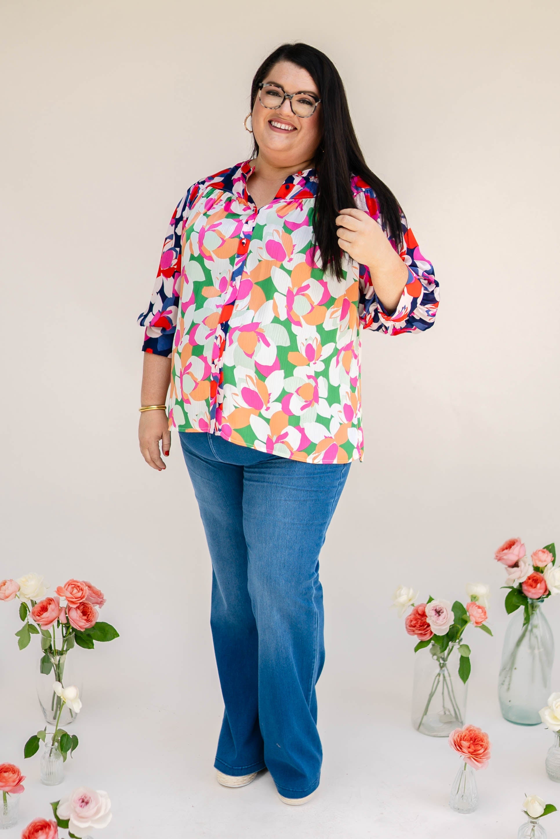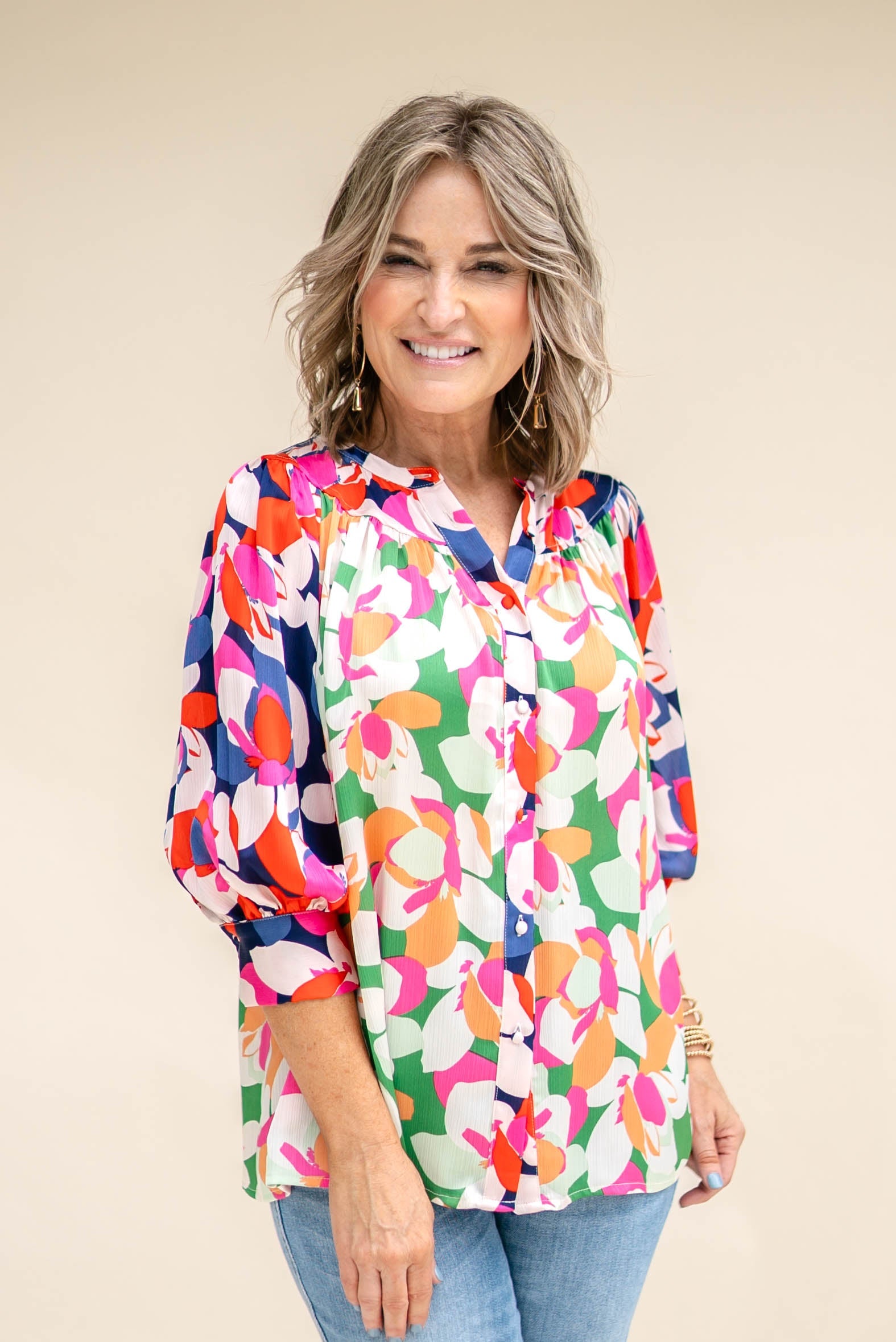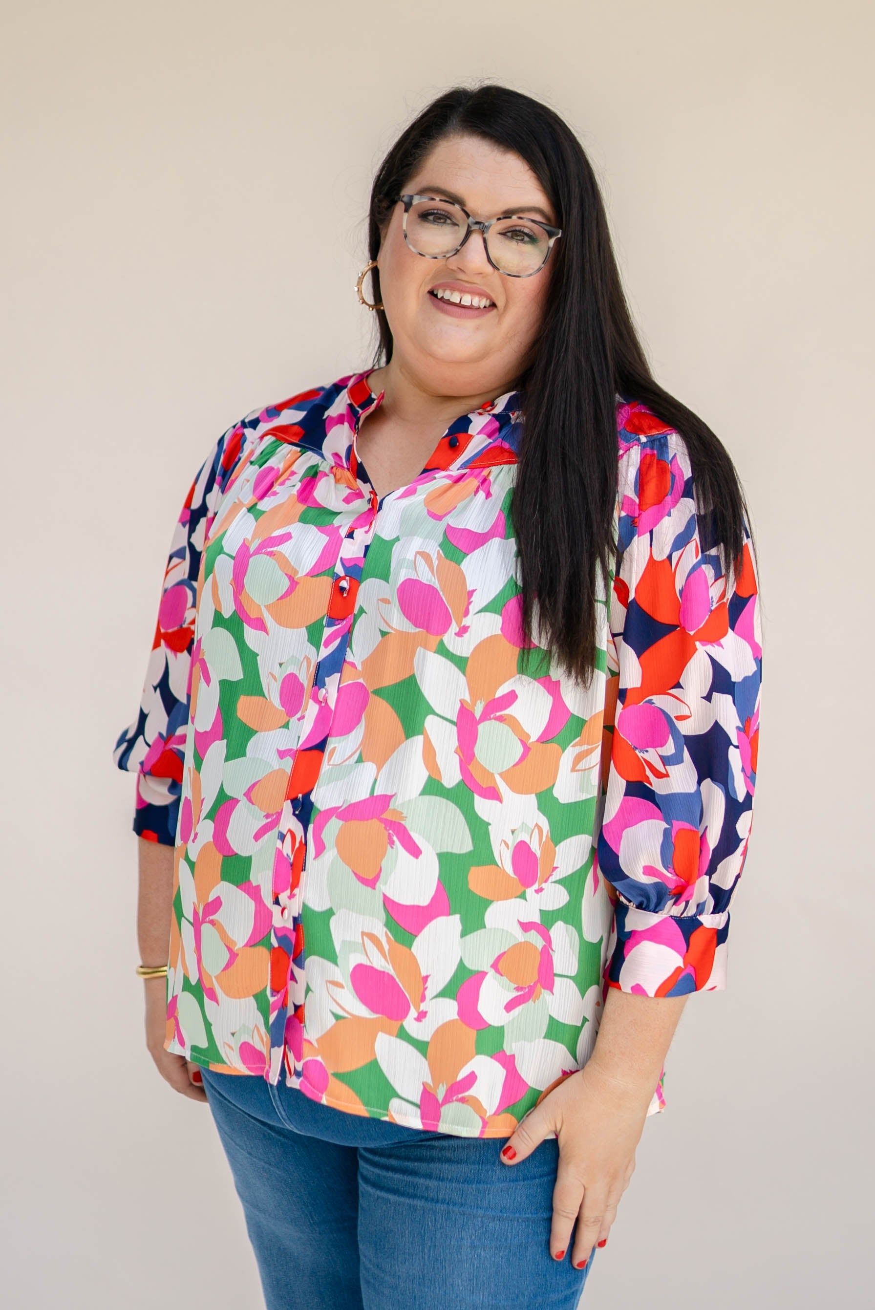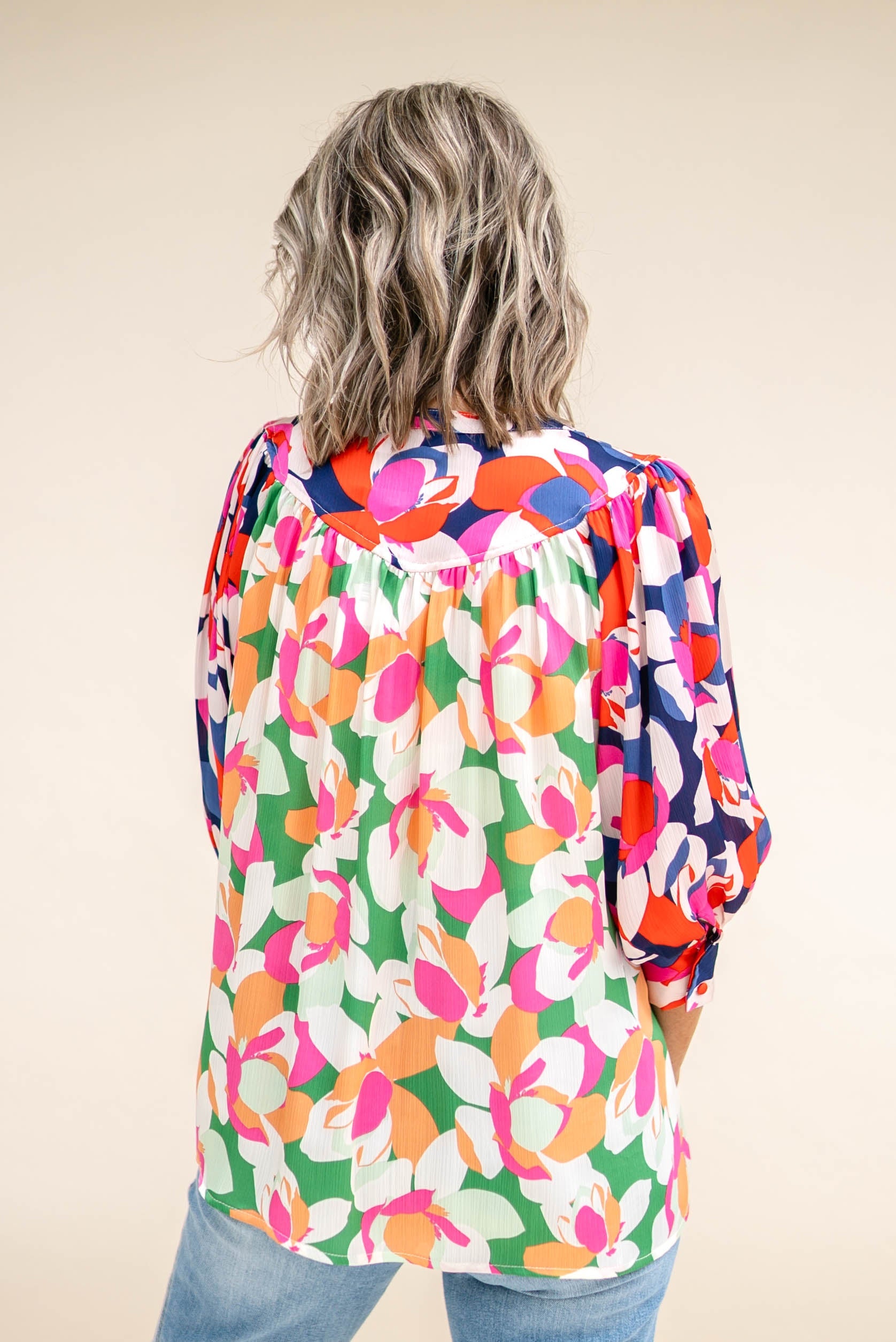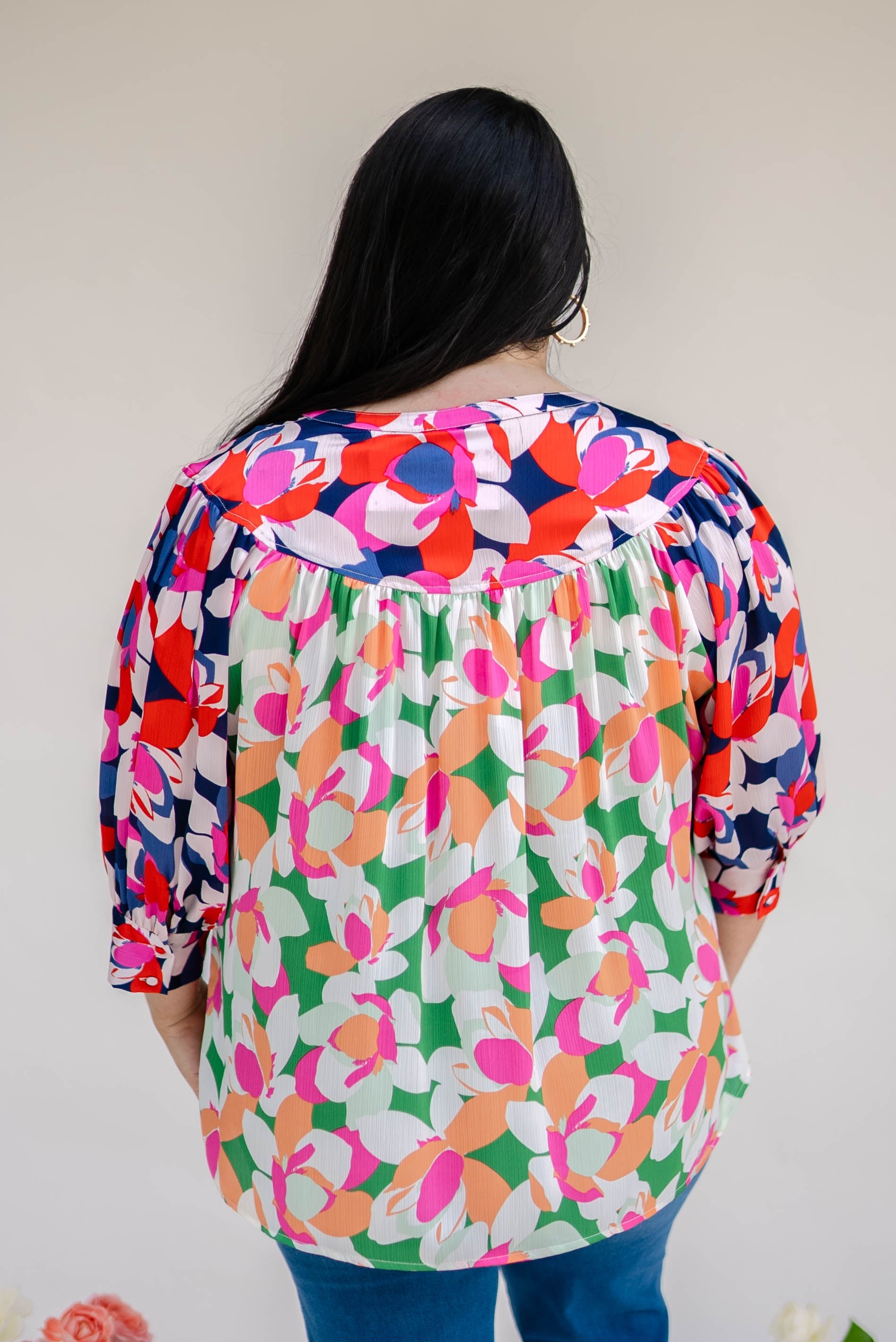 Satin Floral Cuff Sleeve Blouse *Final Sale*