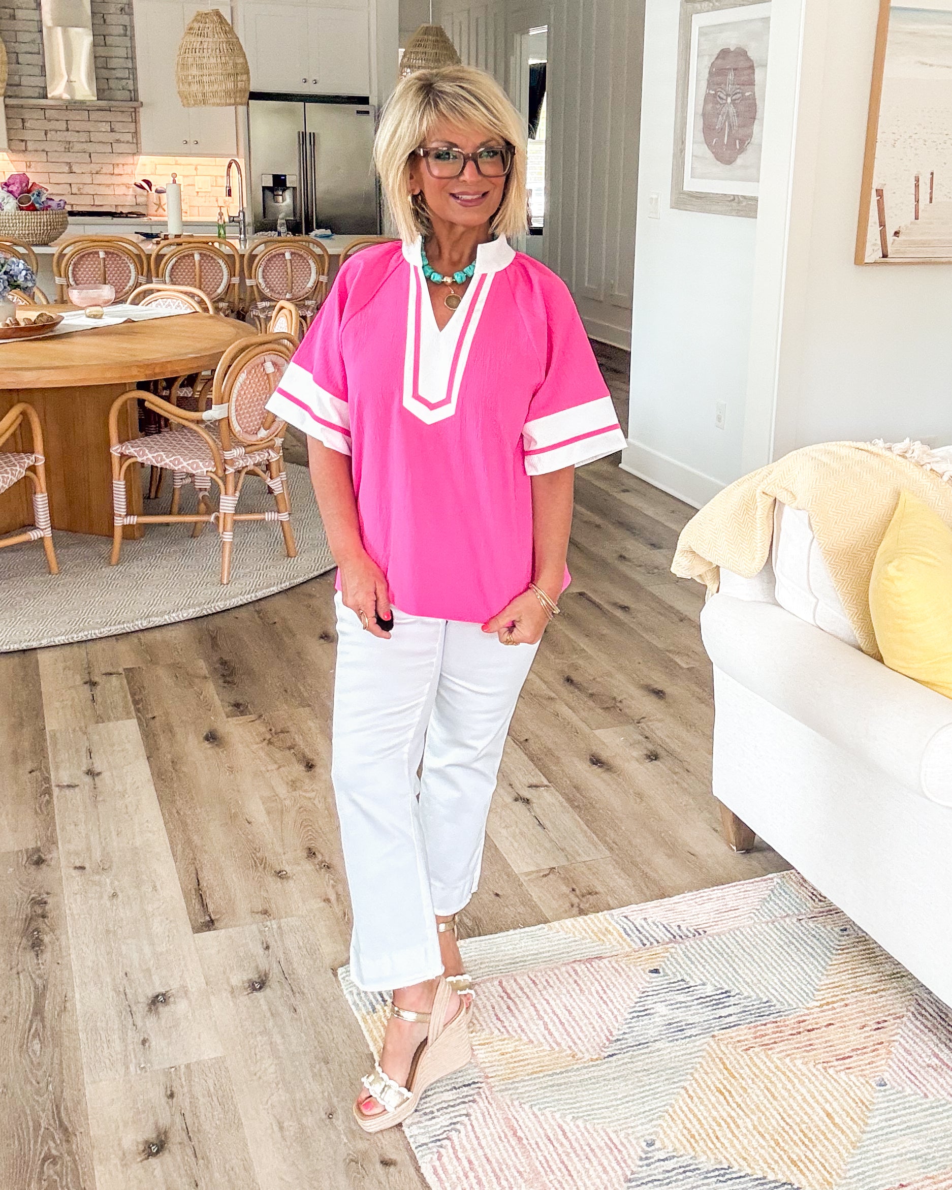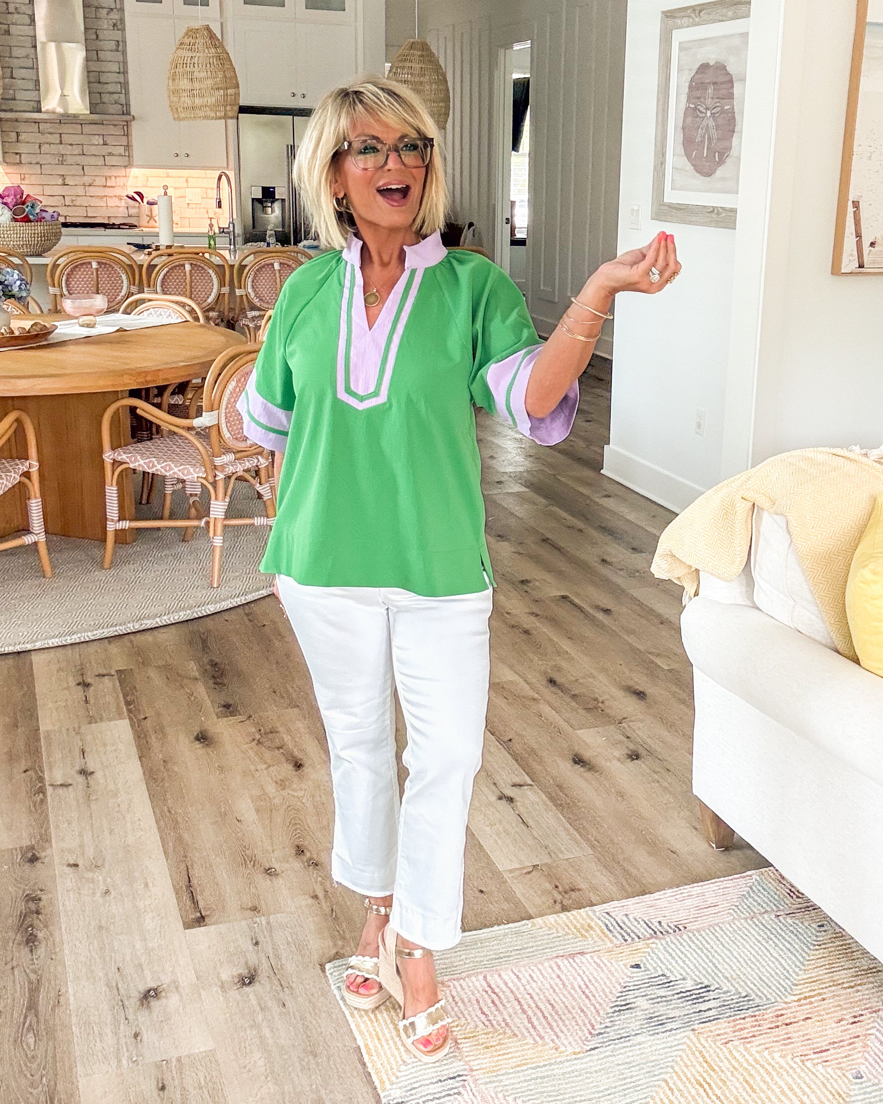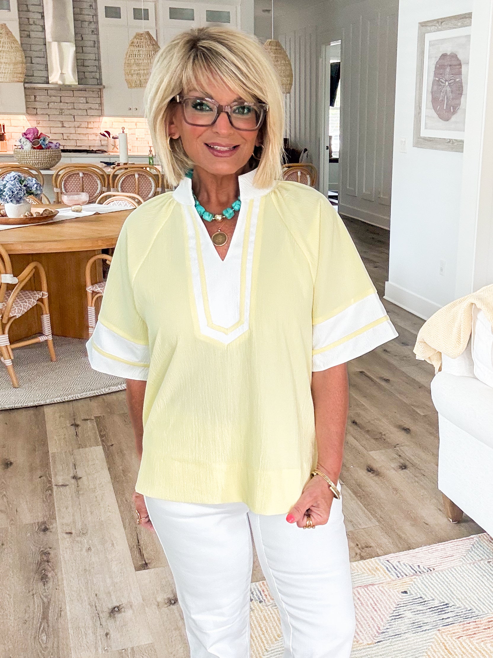 ✨ Second Look Contrast Trim Stand Collar Top