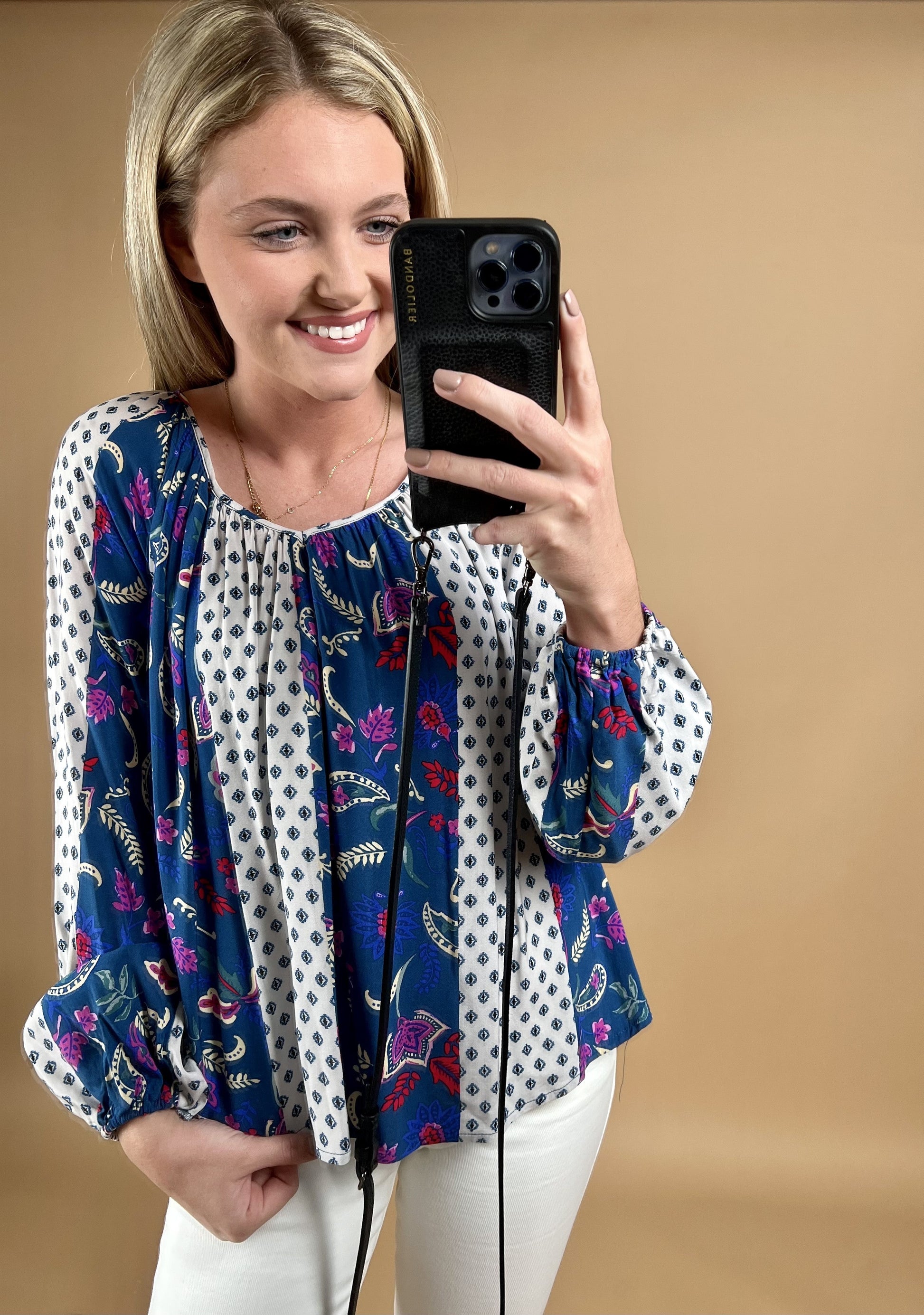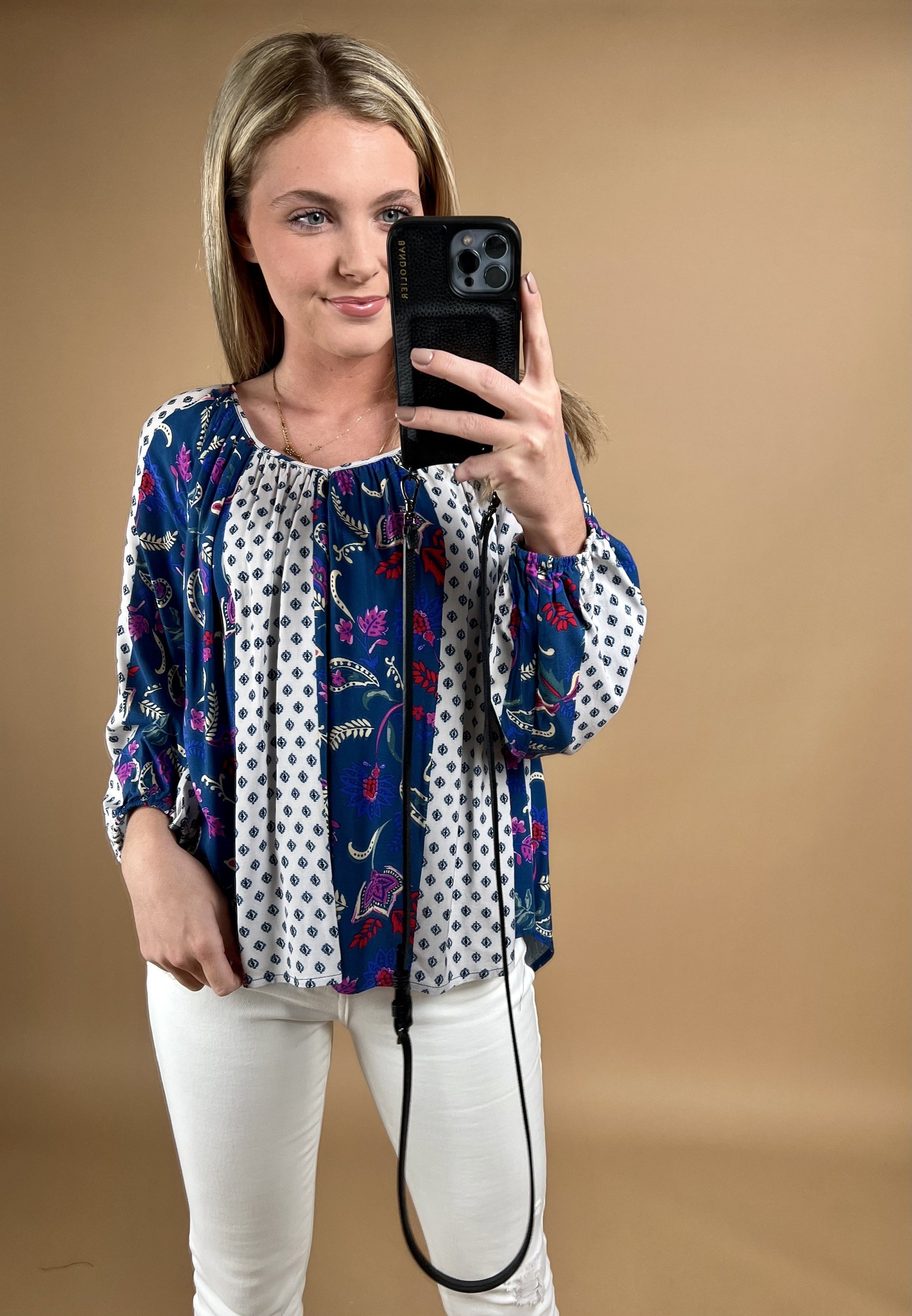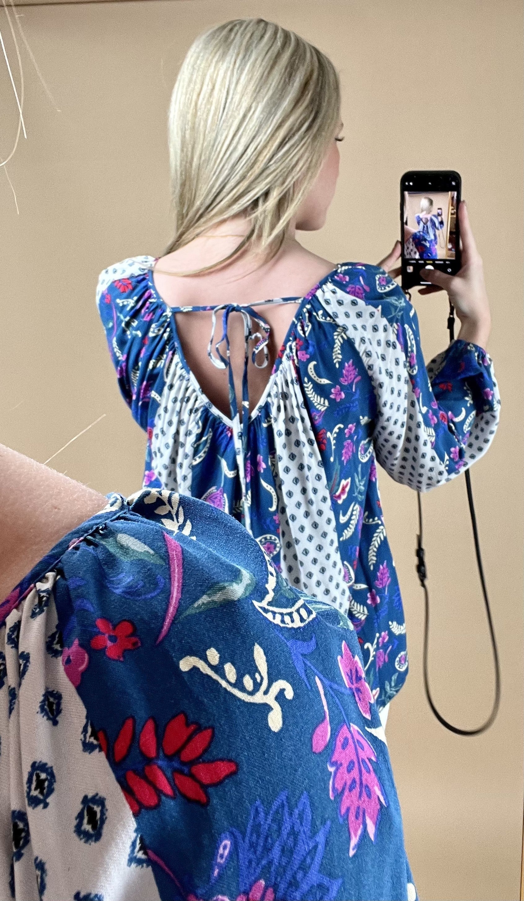 Mixed Border Print Tie Back Blouse *Final Sale*
