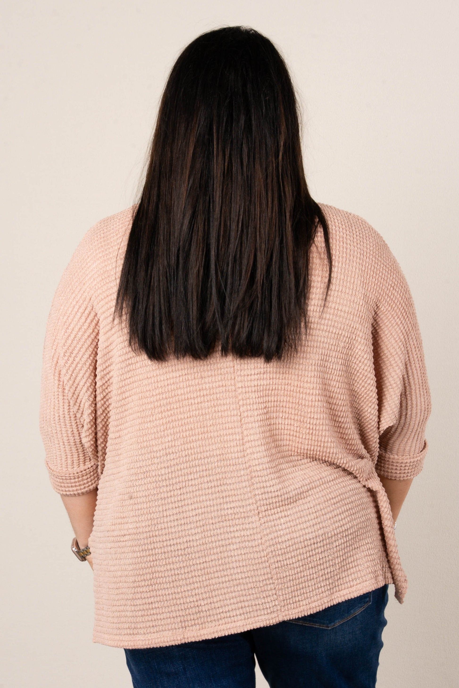 • Fabric Content: 69% Polyester, 29% Rayon, 2% Spandex | Soft waffle knit with stretch