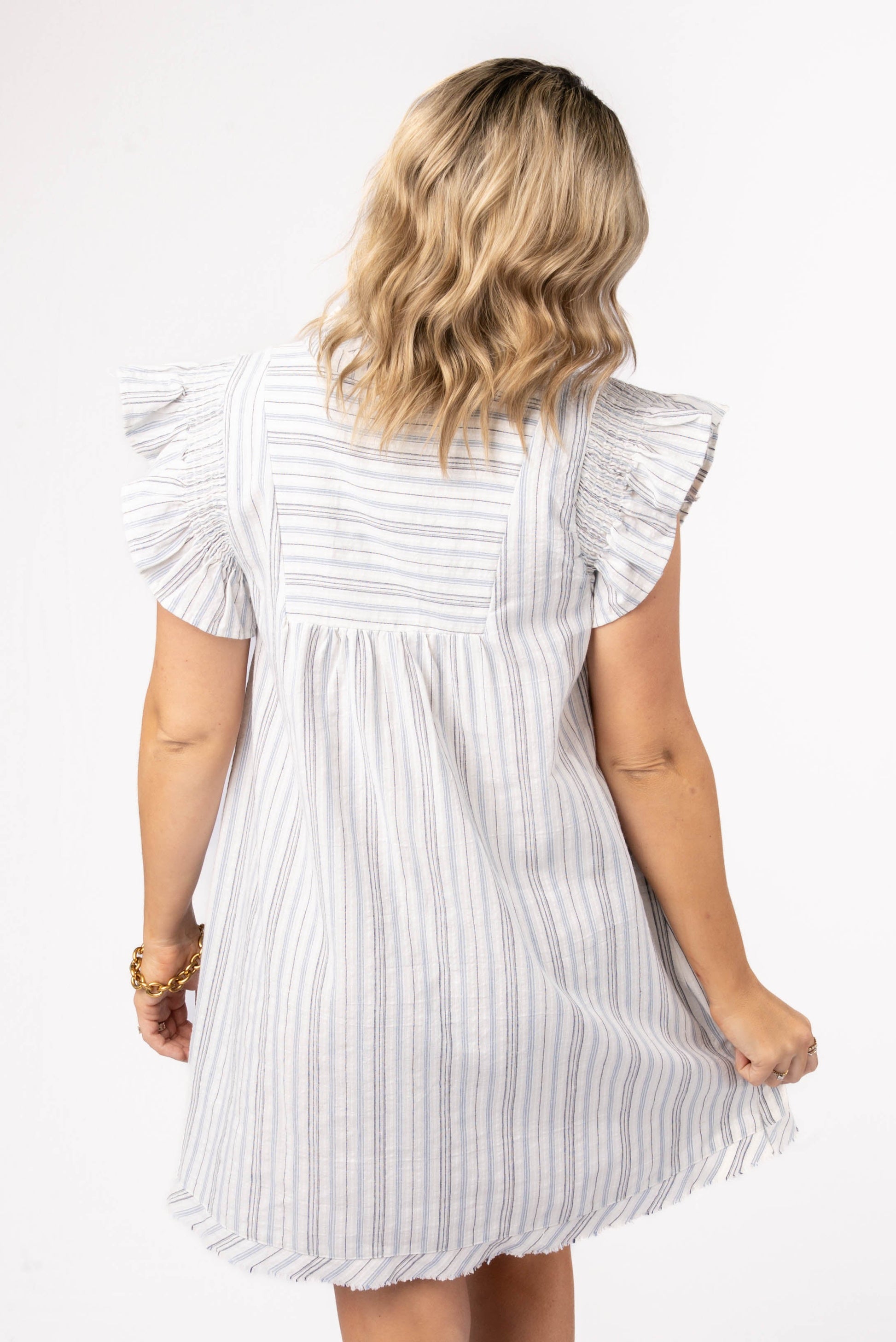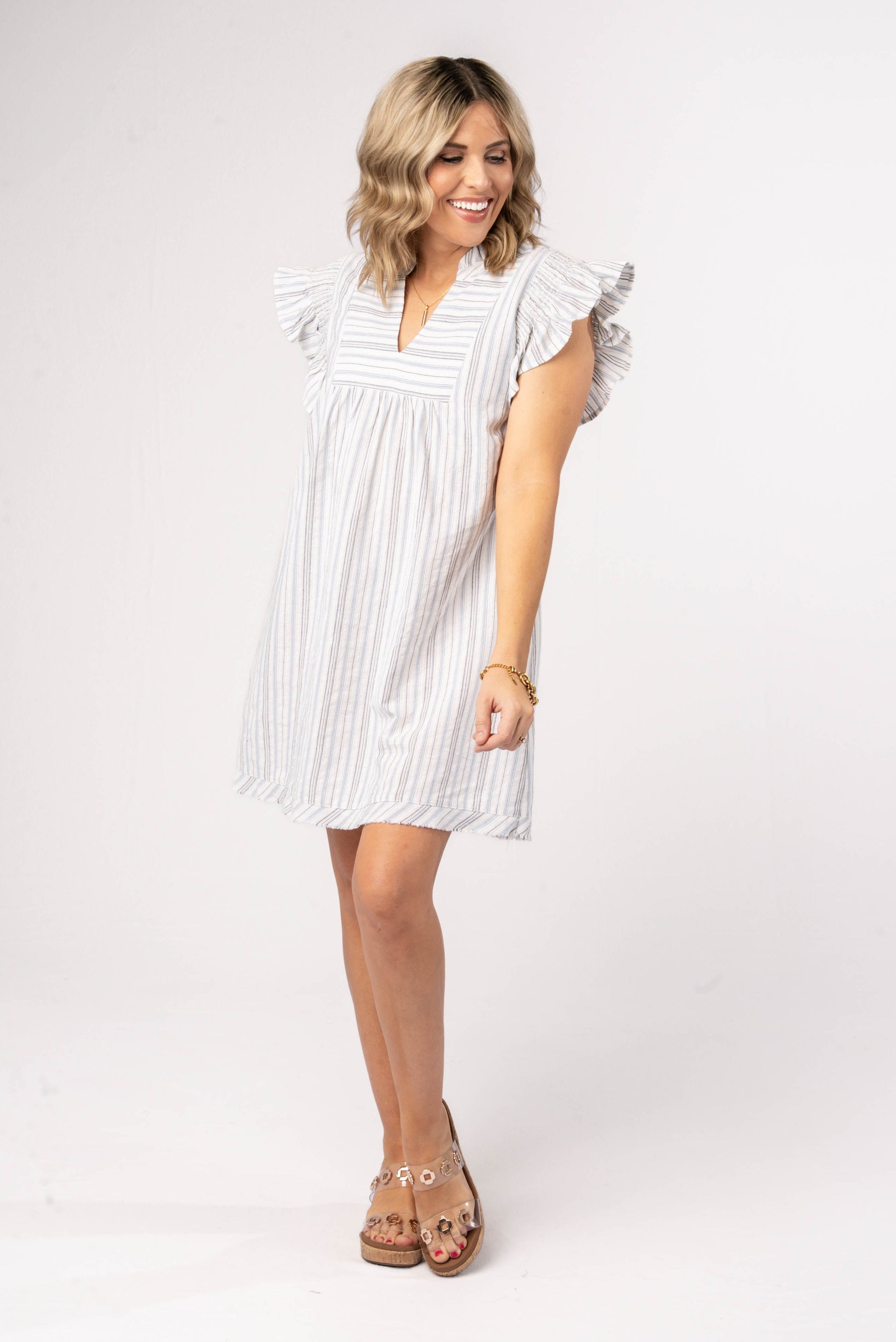 Striped Smocked Ruffle Shoulder Dress *Final Sale*