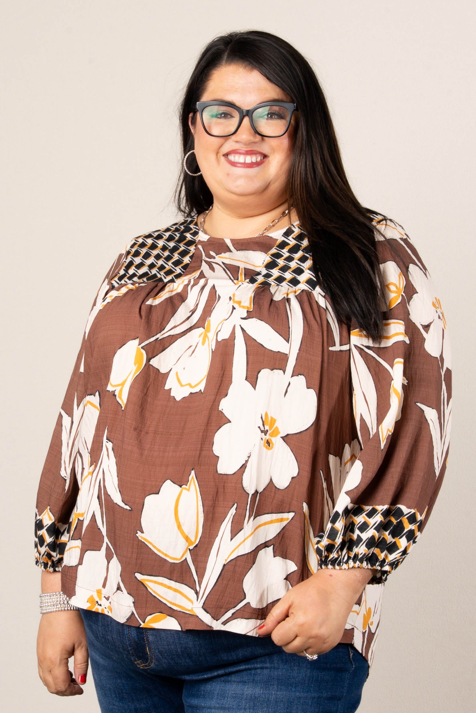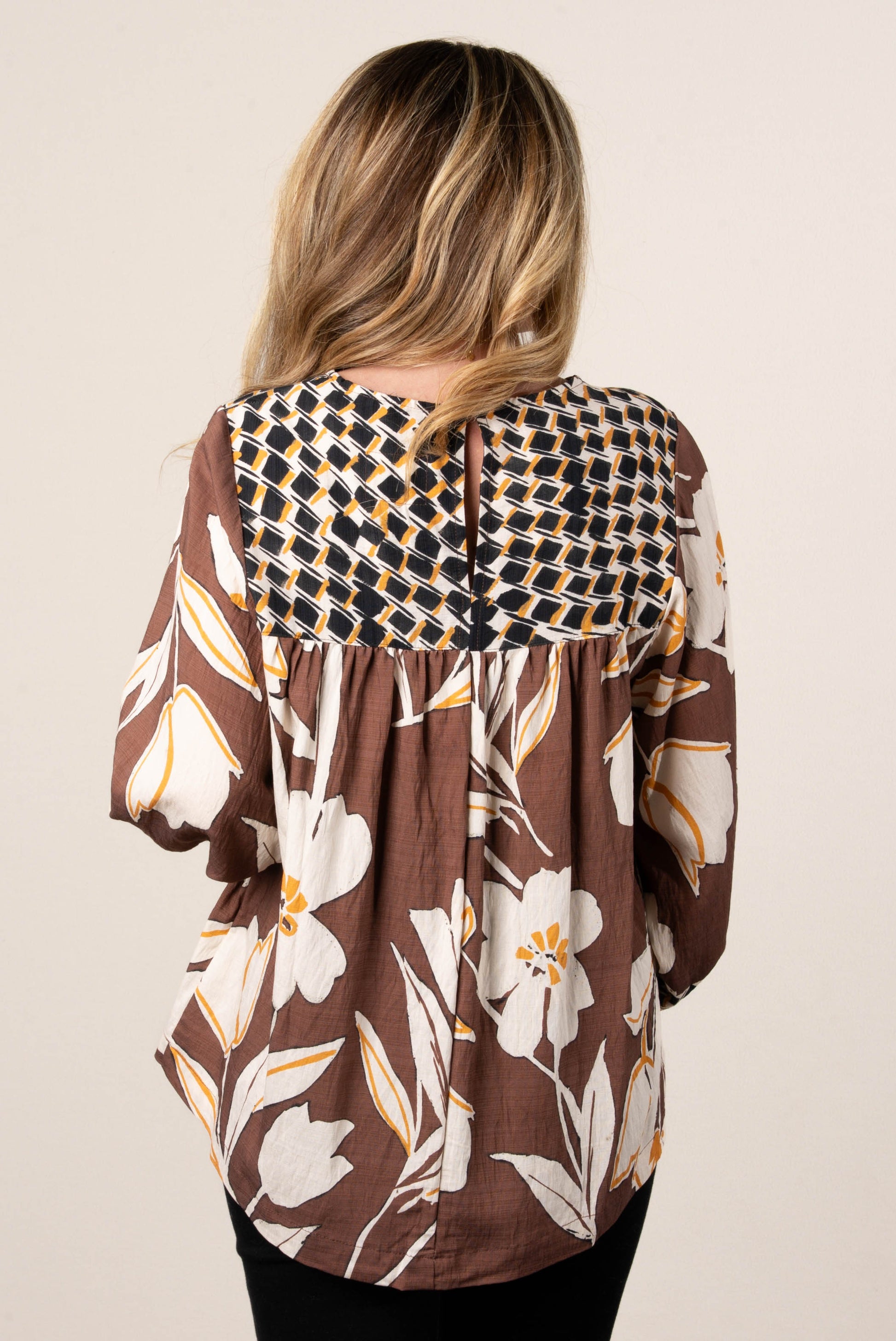 Susanna Mixed Print Babydoll Blouse
