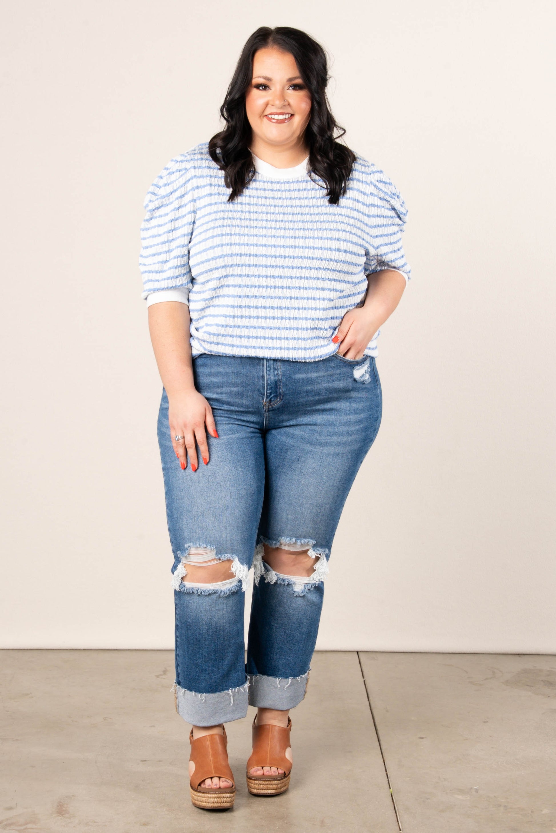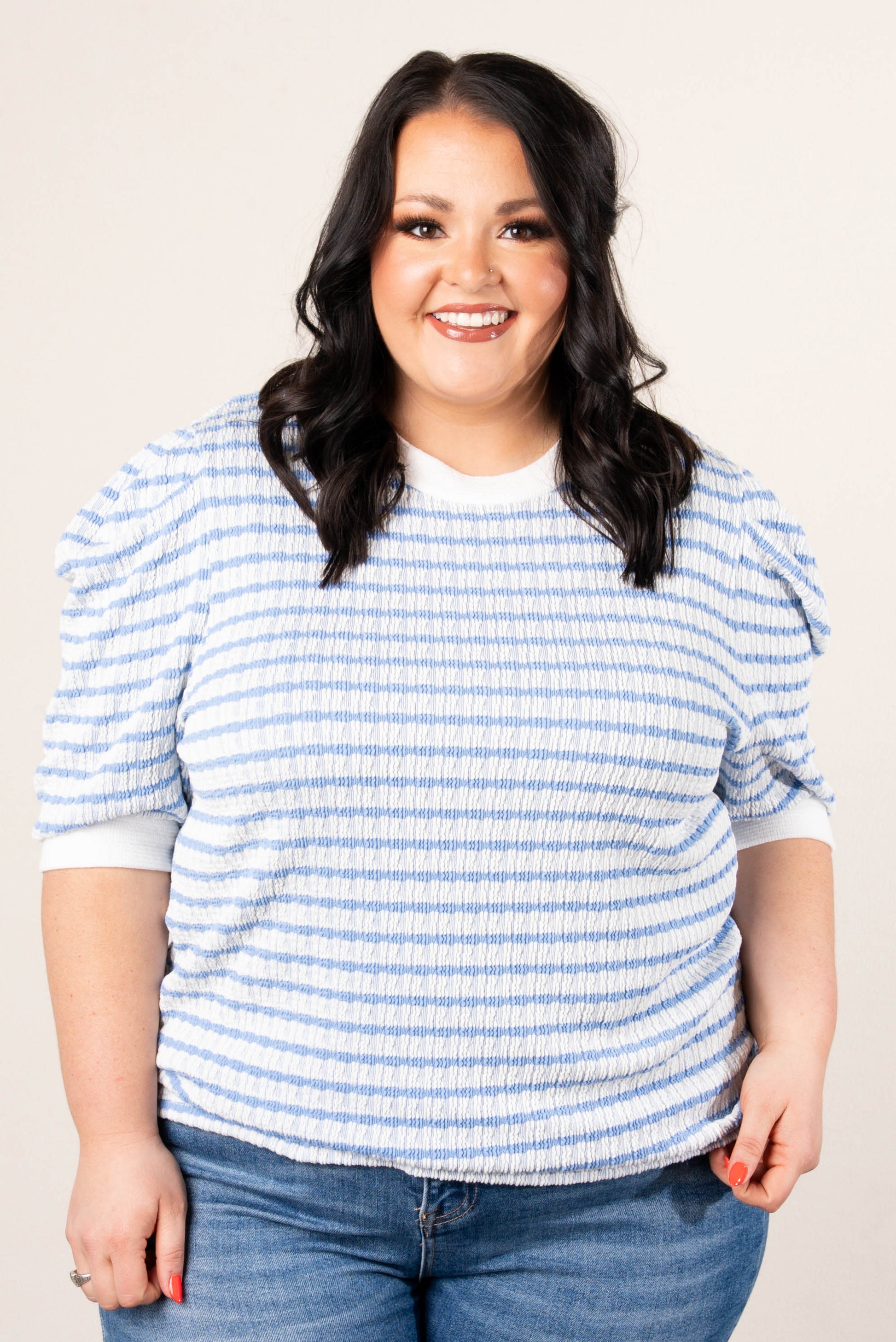 Textured Stripe Puff Sleeve Top *Final Sale*